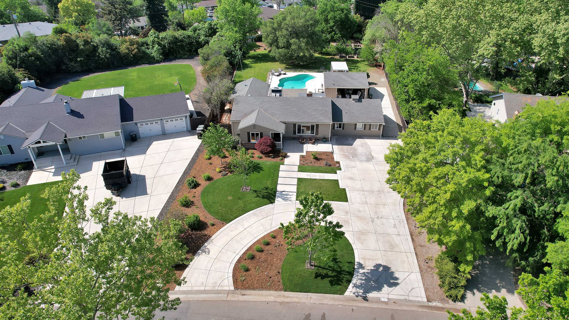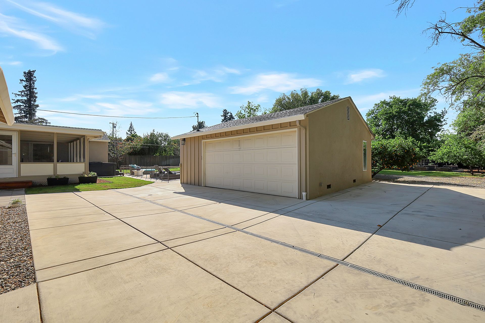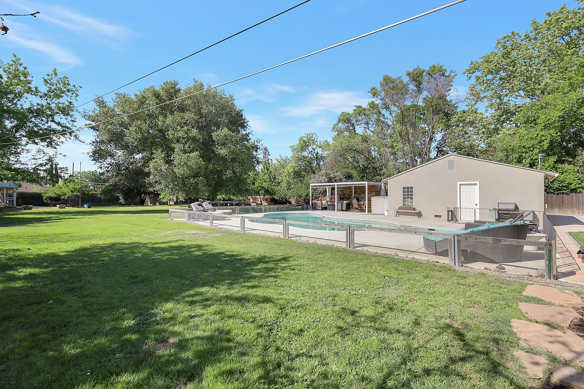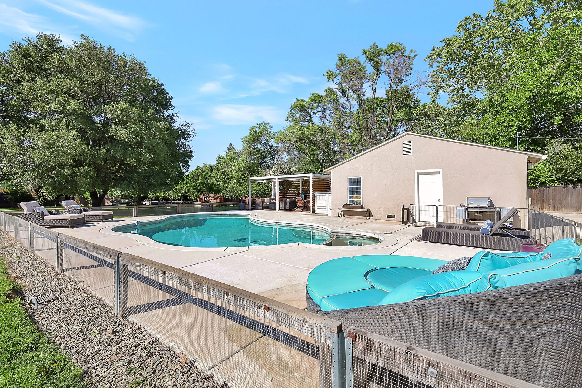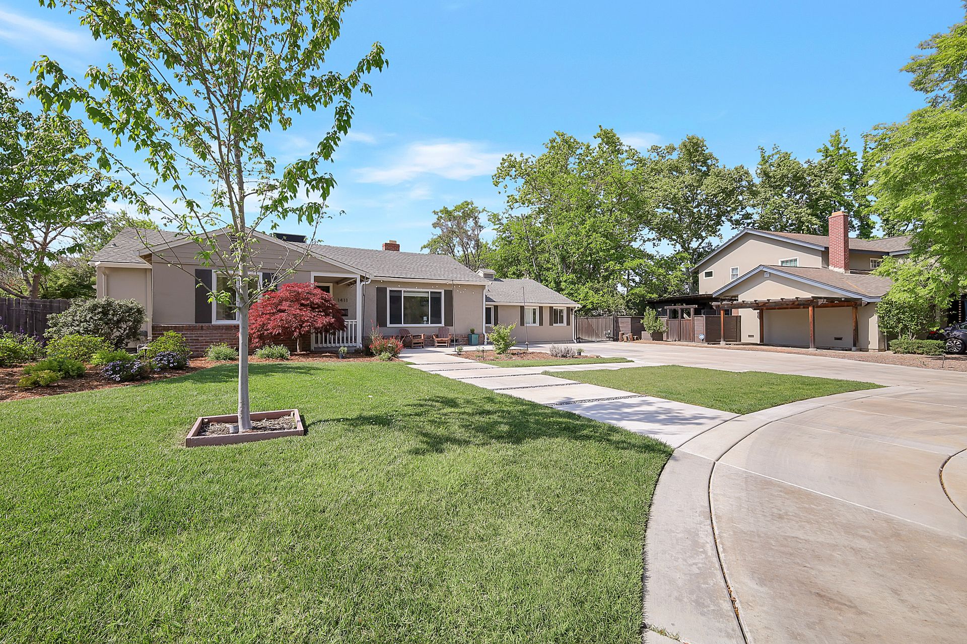 Welcome to urban homesteading in Arden Park on approximately 0.76 acres, one of the larger parcels in the neighborhood, tucked on a peaceful interior street. This property features four bedrooms and three full bathrooms across approximately 2,206 square feet, including a primary suite and a separate junior primary suite with an attached bath, ideal for guests or a secondary livable space. Interior features include white oak hardwood flooring, a classic and charming living room with a wood-burning fireplace and built-in cabinetry, and a kitchen with stainless steel appliances, Corian countertops, and ample workspace. The primary suite is newly remodeled with heated tile floors, a soaking tub, and a separate shower, and all bathrooms have been recently updated. A screened-in porch off the dining area offers additional functional space for living and dining, not included in the square footage, with direct access to the backyard and pool. The grounds offer a park-like setting with a pool and newly installed decking, 14 garden boxes, 21 fruit trees and vines, RV parking, a detached two-car garage, gated rear access, and generous front parking. The lot provides space ideal for additional improvements including an ADU or sport court, subject to buyer verification. Arden Park is known for its strong sense of community, neighborhood parks, recreation programs, and nearby highly rated schools.