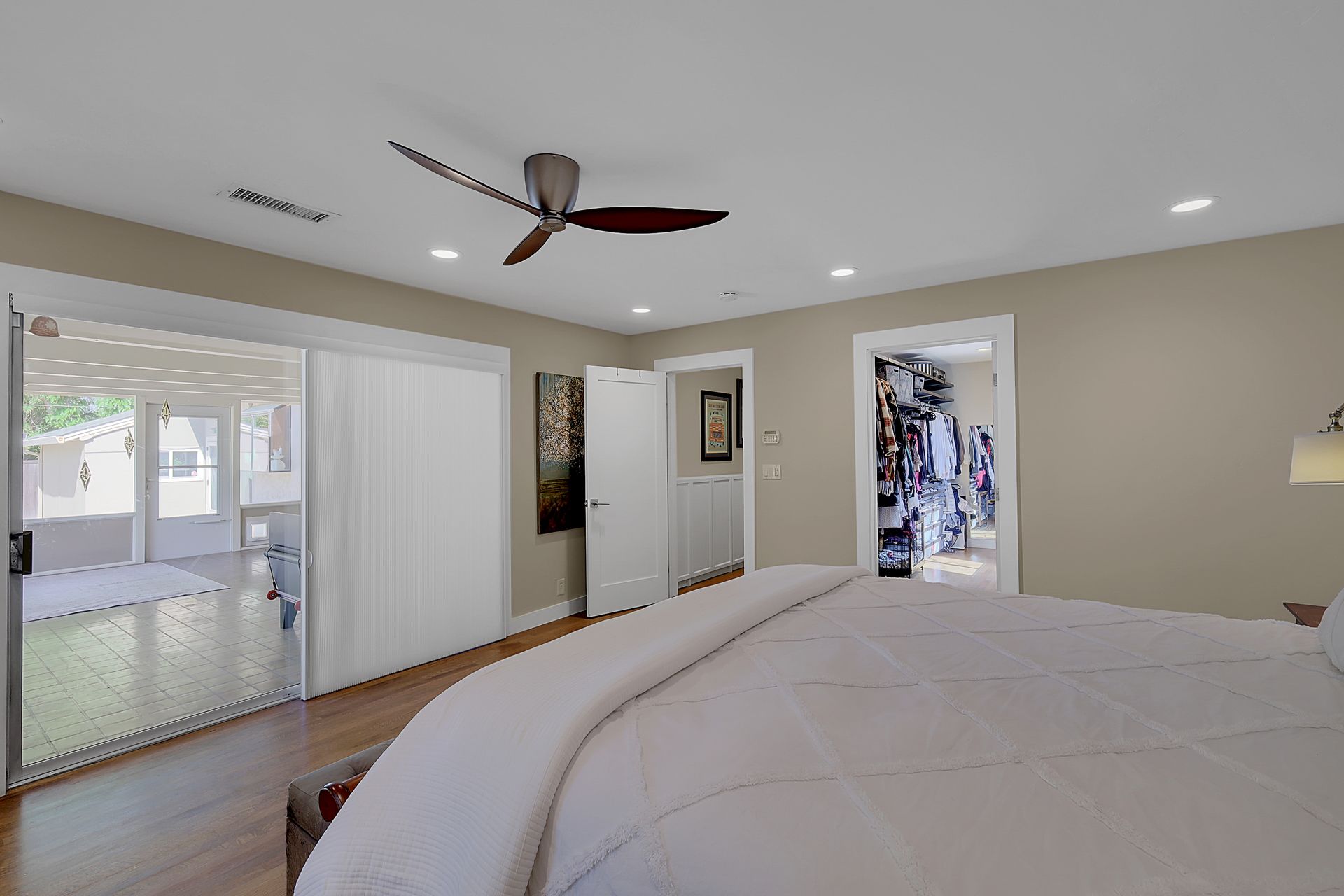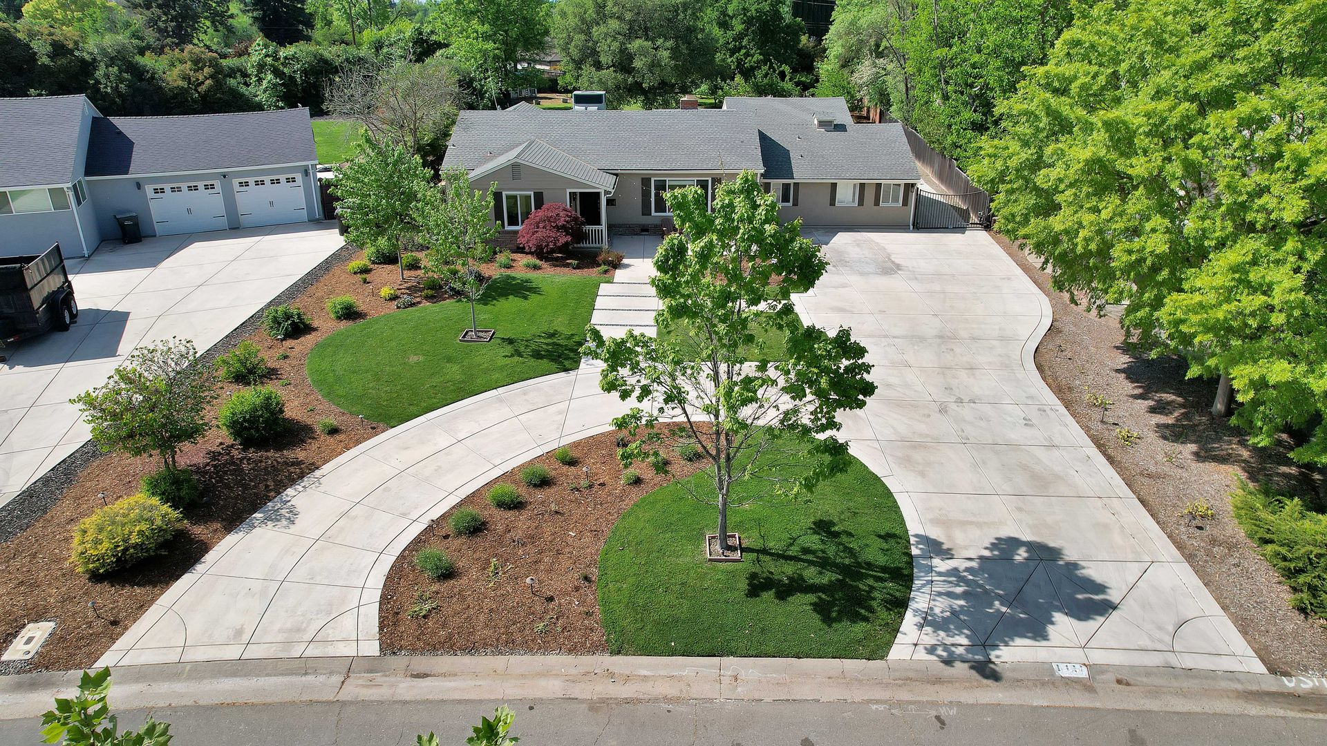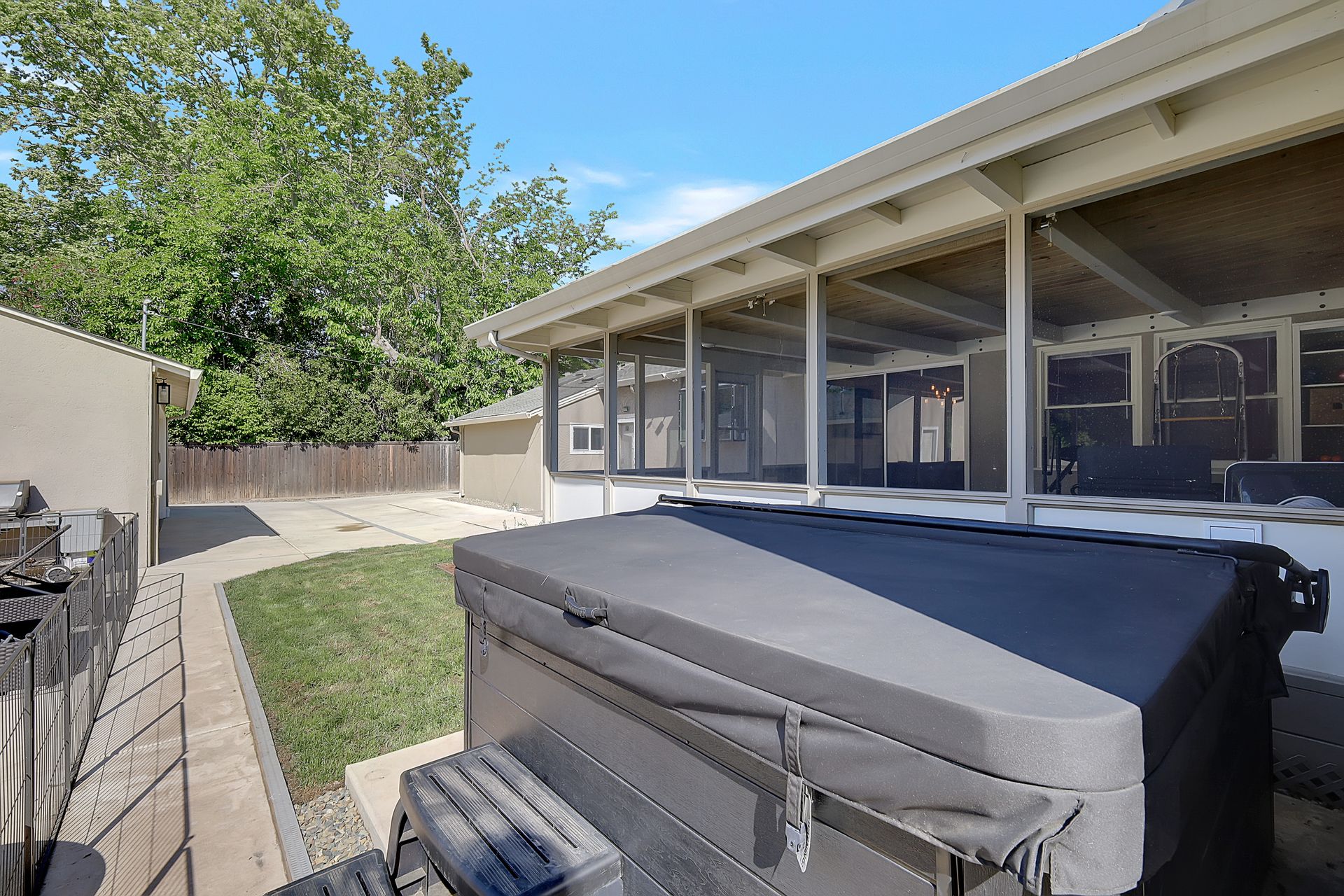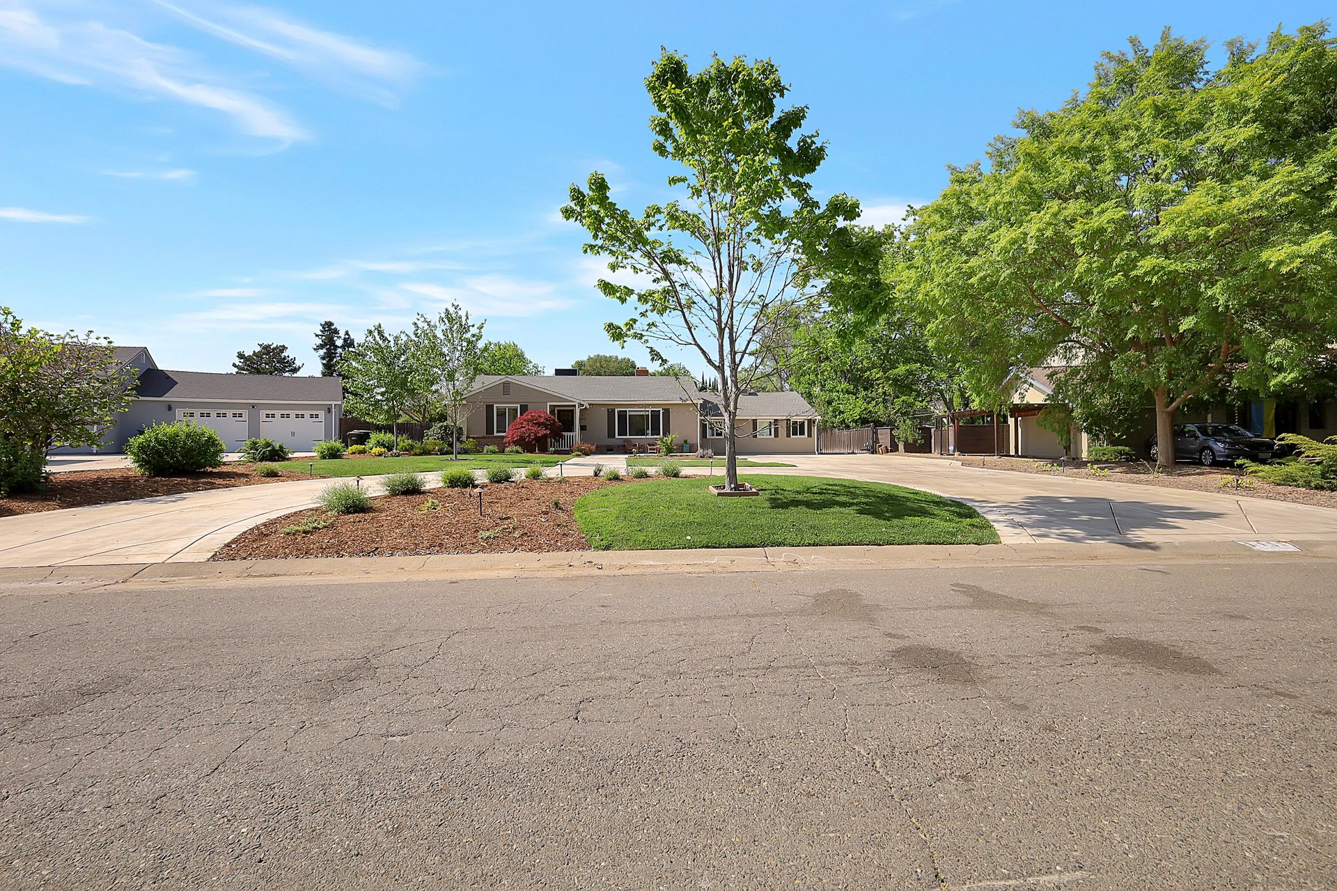 Welcome to urban homesteading in Arden Park on approximately 0.76 acres, one of the larger parcels in the neighborhood, tucked on a peaceful interior street. This property features four bedrooms and three full bathrooms across approximately 2,206 square feet, including a primary suite and a separate junior primary suite with an attached bath, ideal for guests or a secondary livable space. Interior features include white oak hardwood flooring, a classic and charming living room with a wood-burning fireplace and built-in cabinetry, and a kitchen with stainless steel appliances, Corian countertops, and ample workspace. The primary suite is newly remodeled with heated tile floors, a soaking tub, and a separate shower, and all bathrooms have been recently updated. A screened-in porch off the dining area offers additional functional space for living and dining, not included in the square footage, with direct access to the backyard and pool. The grounds offer a park-like setting with a pool and newly installed decking, 14 garden boxes, 21 fruit trees and vines, RV parking, a detached two-car garage, gated rear access, and generous front parking. The lot provides space ideal for additional improvements including an ADU or sport court, subject to buyer verification. Arden Park is known for its strong sense of community, neighborhood parks, recreation programs, and nearby highly rated schools.
