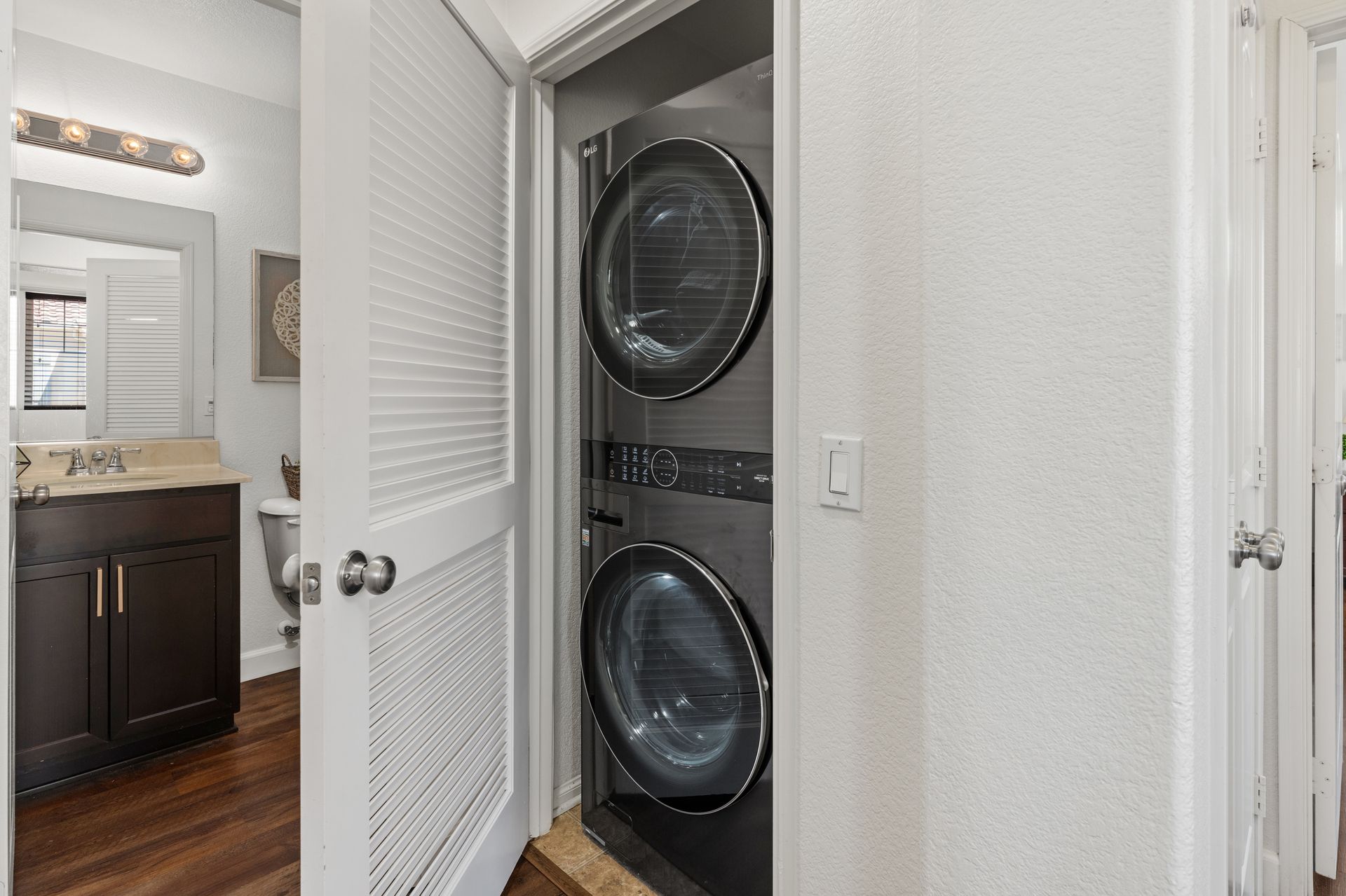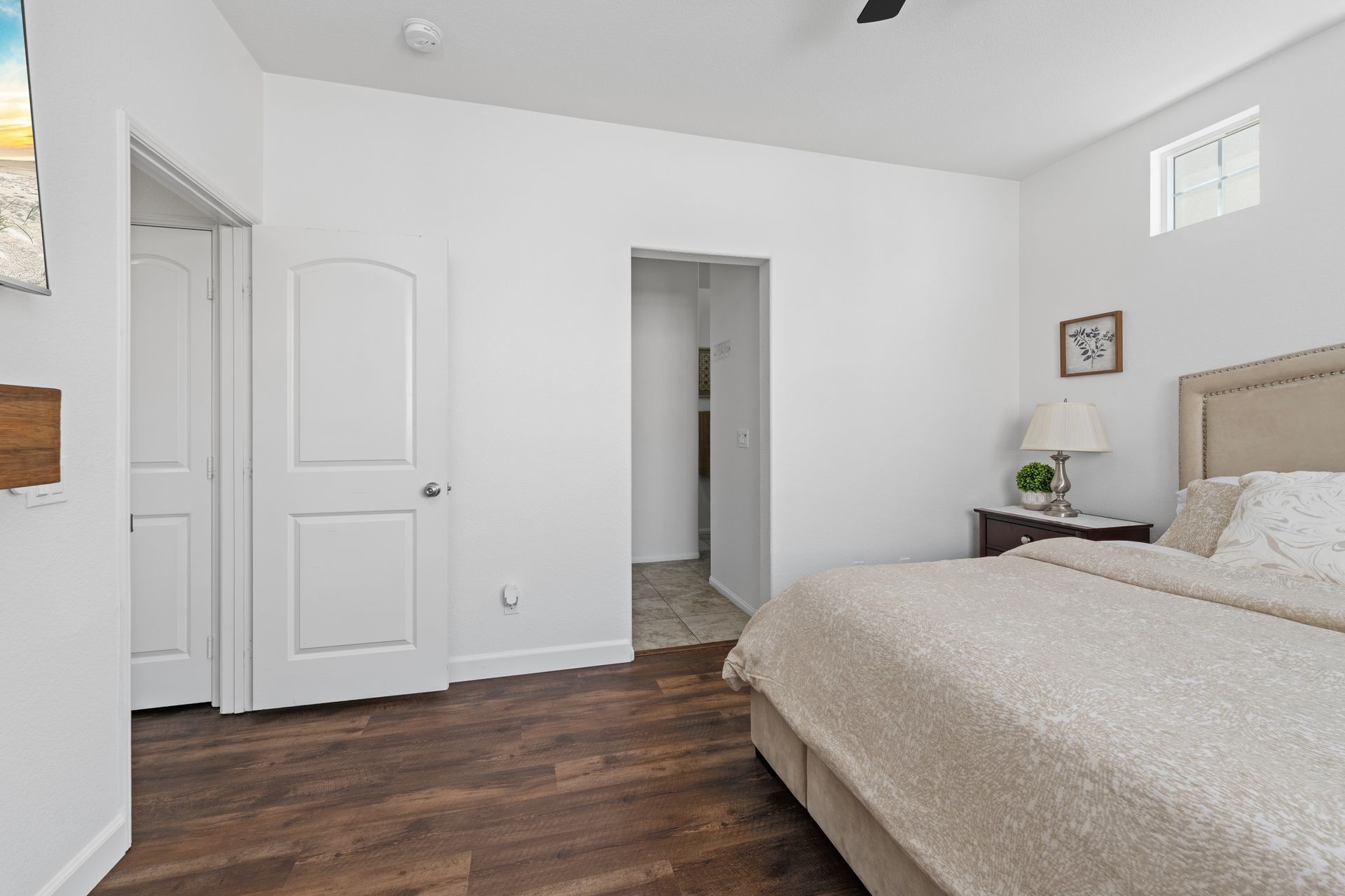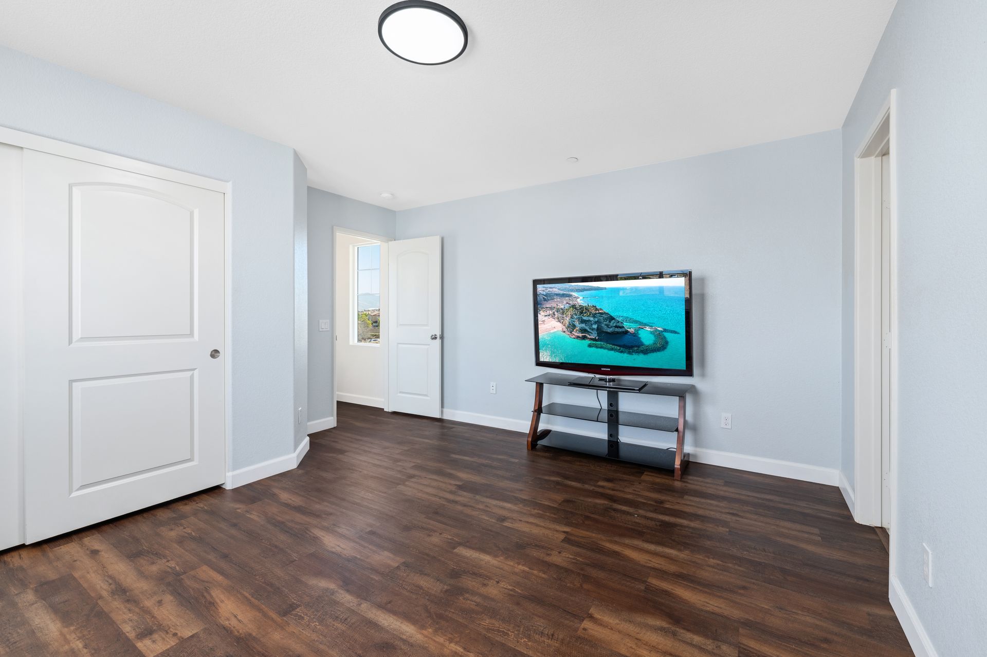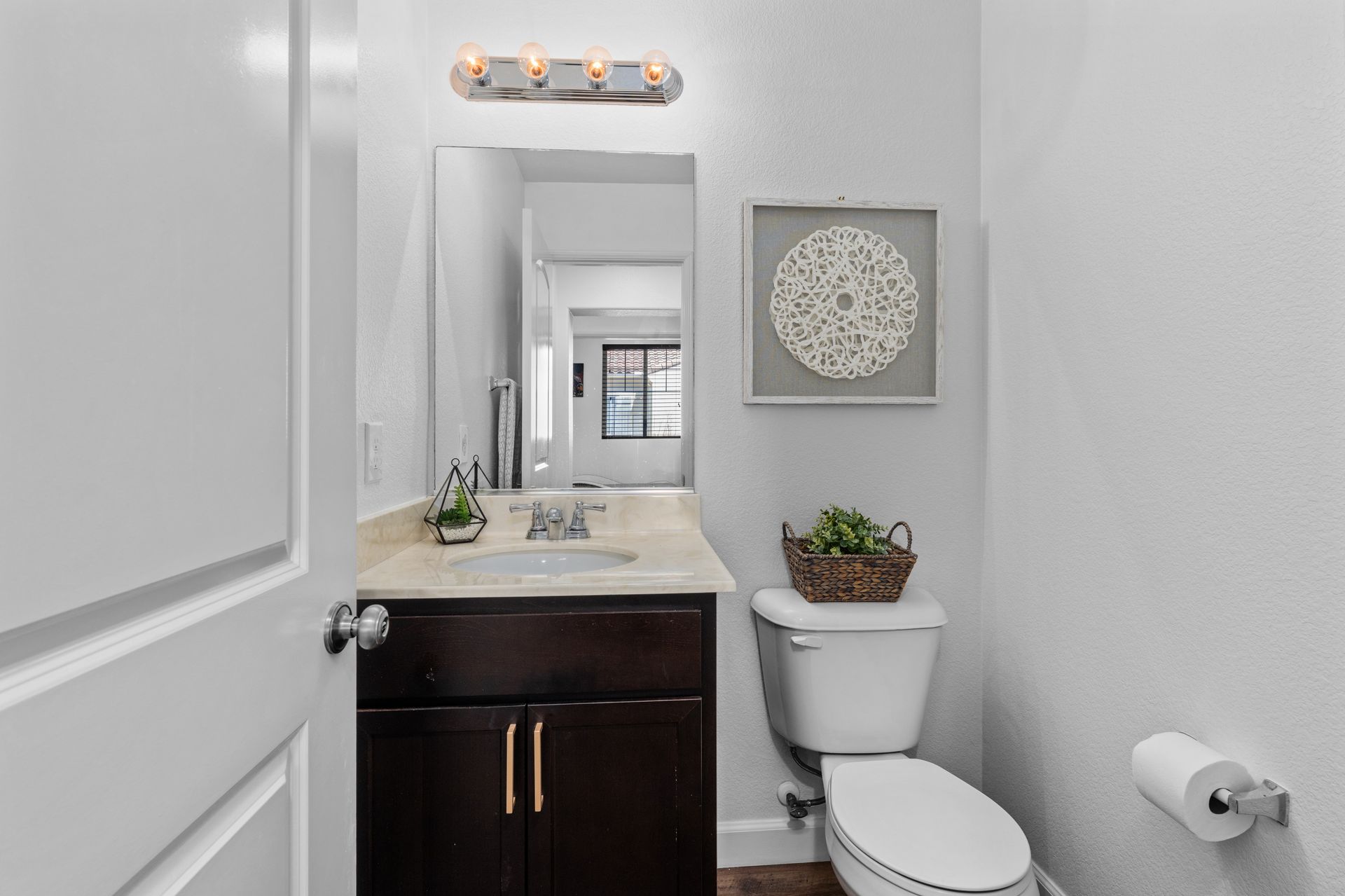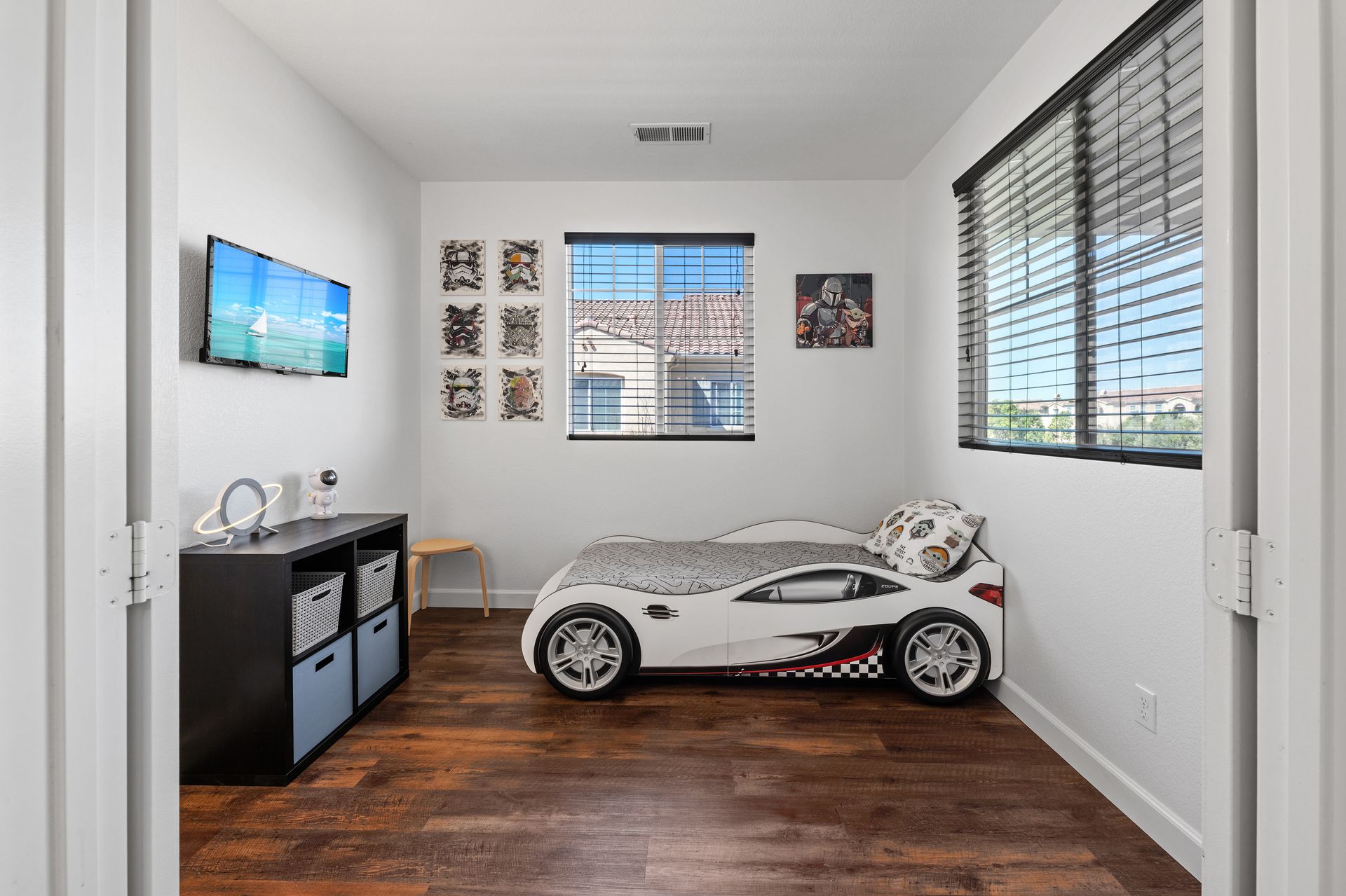 Step into a home that feels elevated, intentional, and truly move-in ready—enhanced by the convenience of an attached garage. This beautifully upgraded Aviare condo in the sought-after Village of Montecito community stands out with a cohesive, designer-inspired aesthetic and luxury vinyl plank flooring throughout every level—including the stairs—creating a clean, carpet-free living experience buyers love. The kitchen is the showpiece, featuring quartz countertops, a white single-basin sink, dark cabinetry, and elegant gold hardware for a custom, high-end look rarely found in this floor plan. Natural light fills the open-concept living space through large picture windows and sliding glass doors, creating a bright and inviting atmosphere ideal for both everyday living and entertaining. Recessed lighting, ceiling fans, and designer window treatments add comfort and style throughout. The flexible layout offers dual primary suites, each with its own private bath, plus an additional space perfect for a home office, guest room, or flex use. Enjoy indoor-outdoor living with a private balcony off the main living area, perfect for morning coffee or evening wind-downs. Located in the vibrant Montecito community, residents enjoy resort-style amenities including a pool and spa with dedicated lap lanes, expansive sun deck, multiple BBQ areas, and inviting spaces to relax or entertain. The community also offers a clubhouse with fitness center, along with basketball, tennis, and bocce ball courts—creating a lifestyle that feels both active and resort-inspired, all just minutes from top-rated schools, shopping, dining, and major commuter routes. Modern upgrades. Prime location. Turnkey living. This is the one buyers have been waiting for.