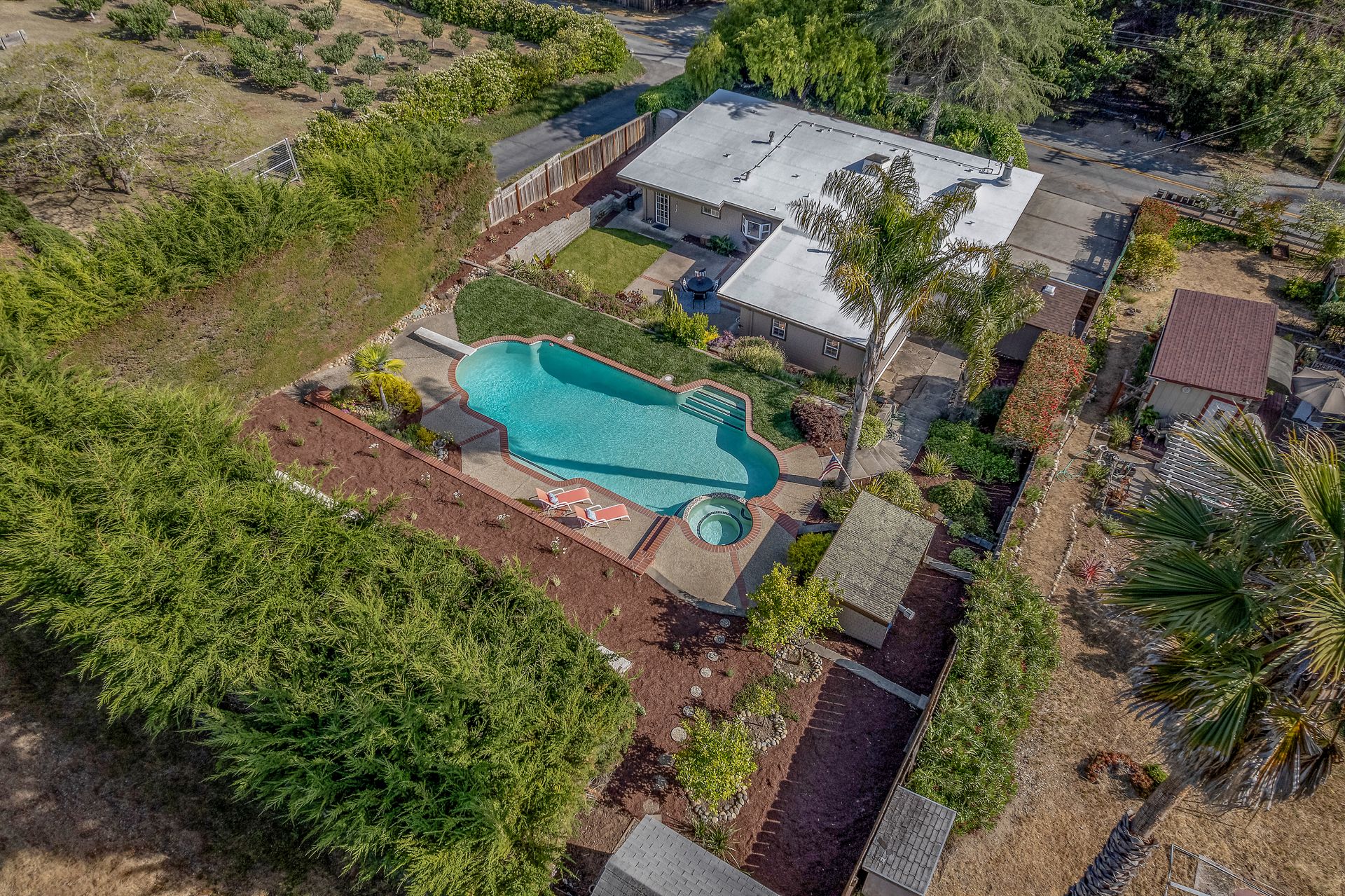 Welcome to your place in the sun! Located in the highly sought after Day Valley community of Aptos. Set on approximately 0.27 acres, this property lives like a resort. This well kept single-level home offers an open floor plan with an abundance of light and space to entertain. Enjoy open beam ceilings, skylights, a kitchen with a breakfast bar, and a large dining room that opens to an expansive living room with a fireplace. The spacious primary suite features tile floors, a gas fireplace stove, and a sitting area. The primary bath has double sinks, a hydro soaking tub and a double shower. Don't miss the large indoor utility room with a sink, pantry and an abundance of storage. All bedrooms enjoy glass doors leading to the patios. A magical, private retreat awaits you with a large backyard and expansive patio surrounded by lush landscaping and mature trees. Terracing takes you to the upper yard where the centerpiece is an inground sparkling pool and hot tub. This almost 12,000 square foot parcel includes a lush sod lawn, horseshoe pit and a custom-built yoga studio. Enjoy ample space to host parties or just soak up the sun in your private, poolside paradise. More than just a home, it's your own personal sanctuary. The peaceful lifestyle you've been dreaming of becomes your new reality! The home is just minutes from Highway 1, Aptos Village and the beach. You'll love this property.