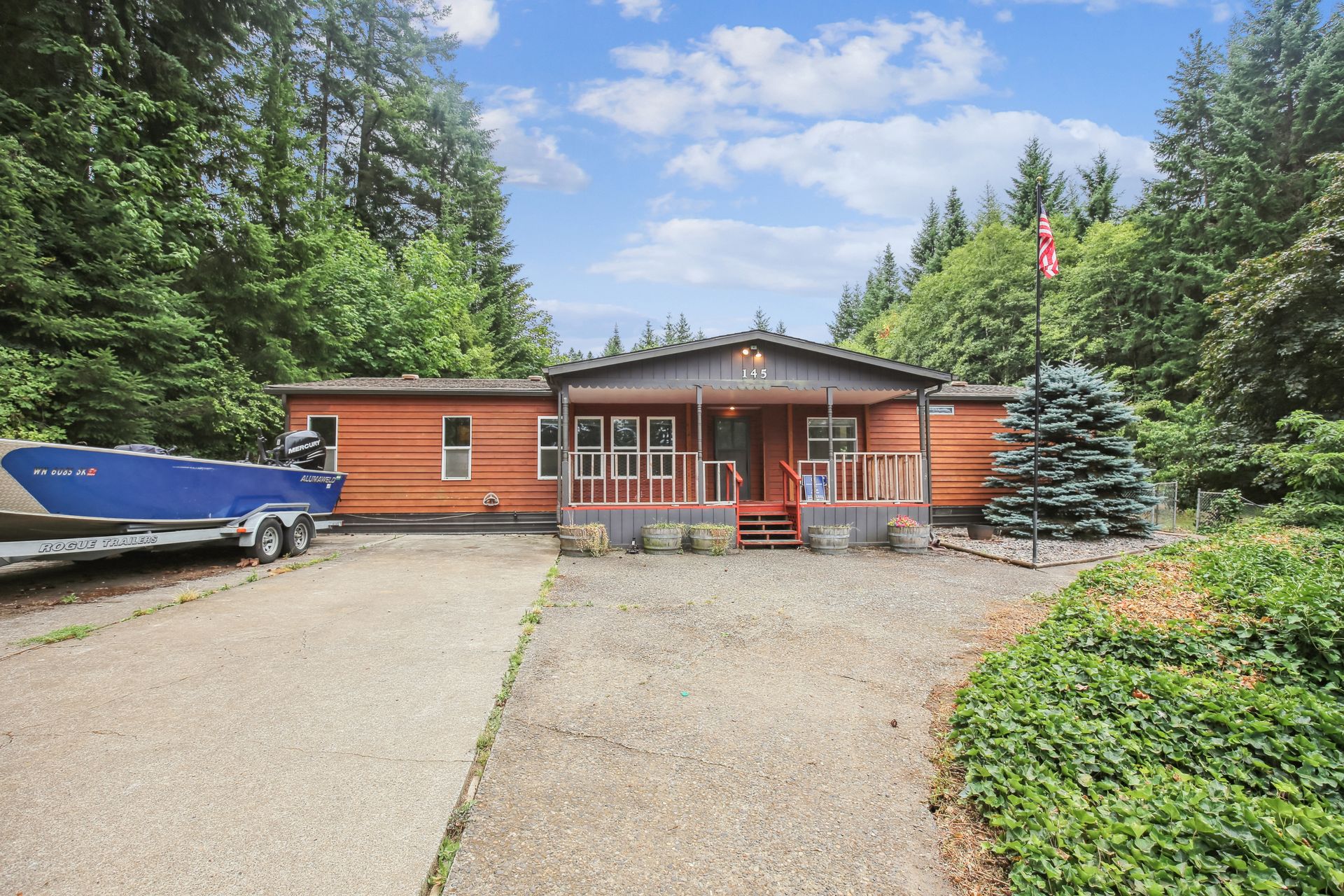 Tucked away on approximately 2.84 acres, this home offers three bedrooms and two bathrooms, spanning approximately 1,620 square feet of living space. The property features a large shop on a separate tax lot, RV parking, and is situated at the end of a private road, providing a tranquil and secluded setting.