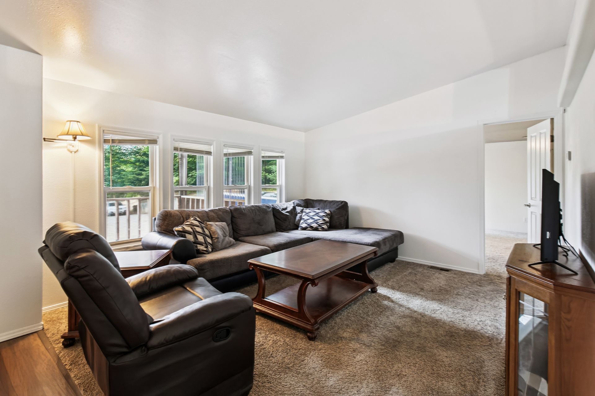 The large shop on the premises offers versatile storage and workspace, catering to a variety of needs, from vehicle maintenance to hobby projects. The RV parking provides convenient access for those with recreational vehicles, making this property an appealing option for those with active lifestyles.