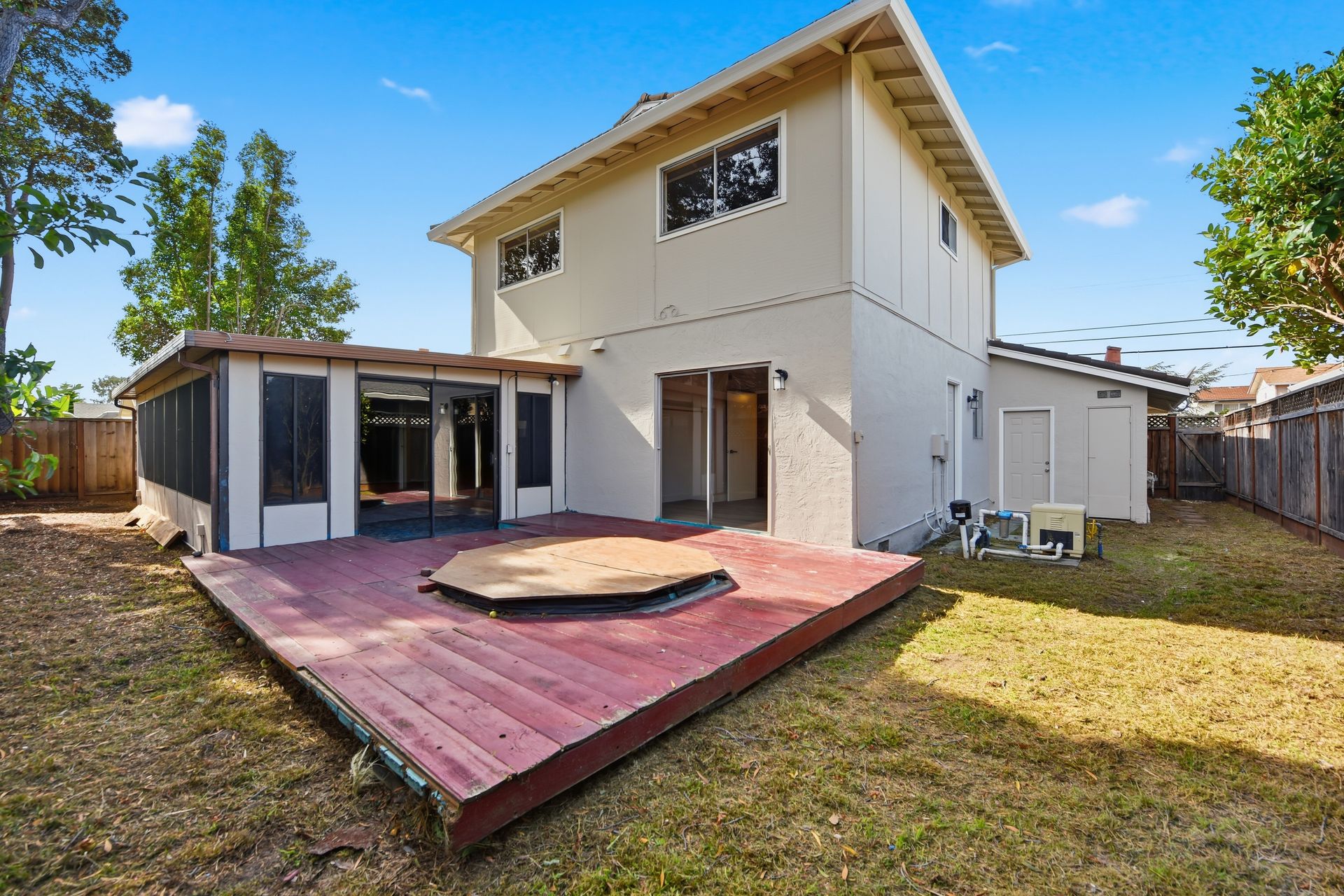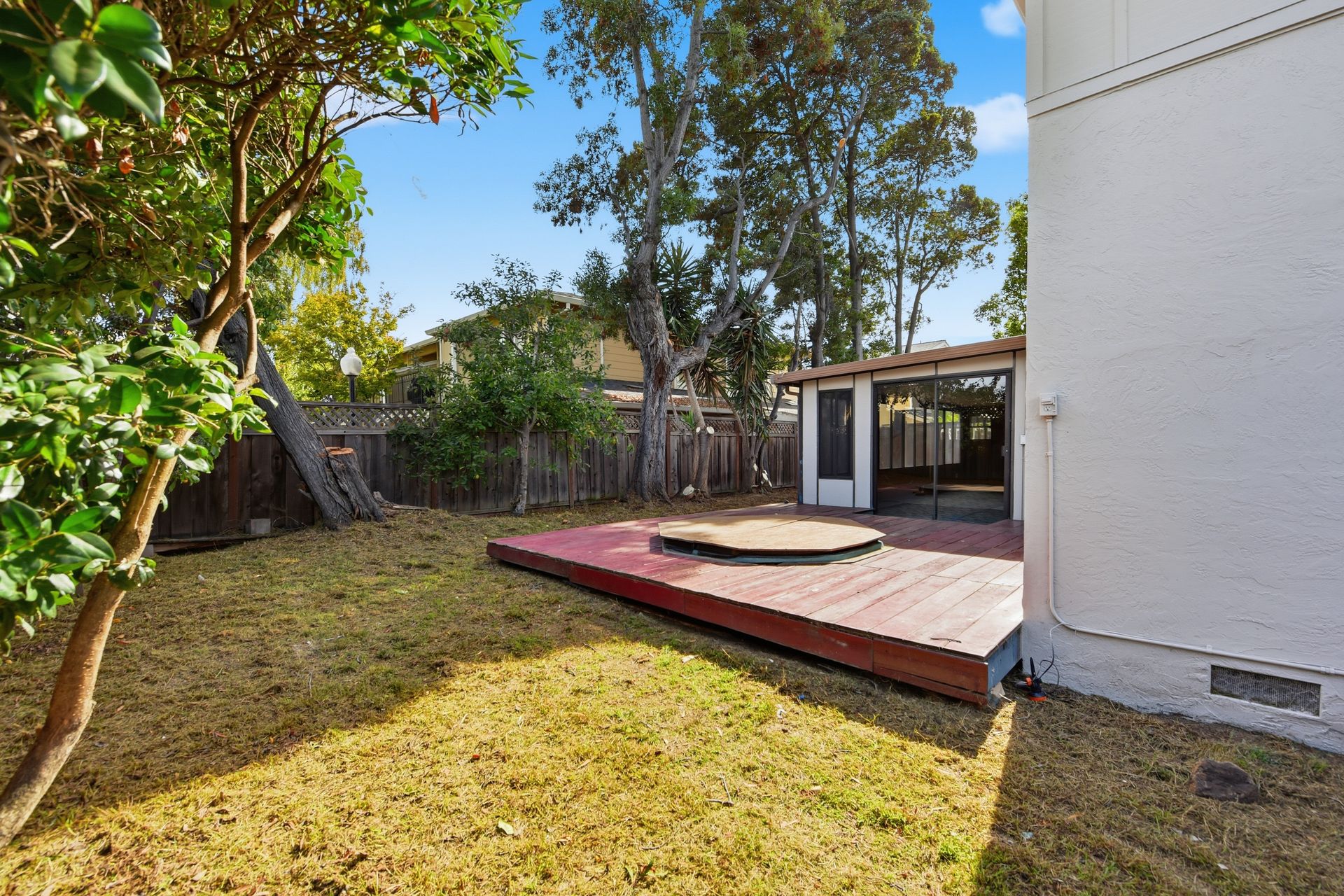 An enclosed family room just off the kitchen provides additional space for relaxation or entertaining. Both bathrooms have been tastefully remodeled, and recessed lighting enhances the home’s warm, modern ambiance. Enjoy the backyard with mature fruit trees and a private spa—ideal for unwinding after a long day.