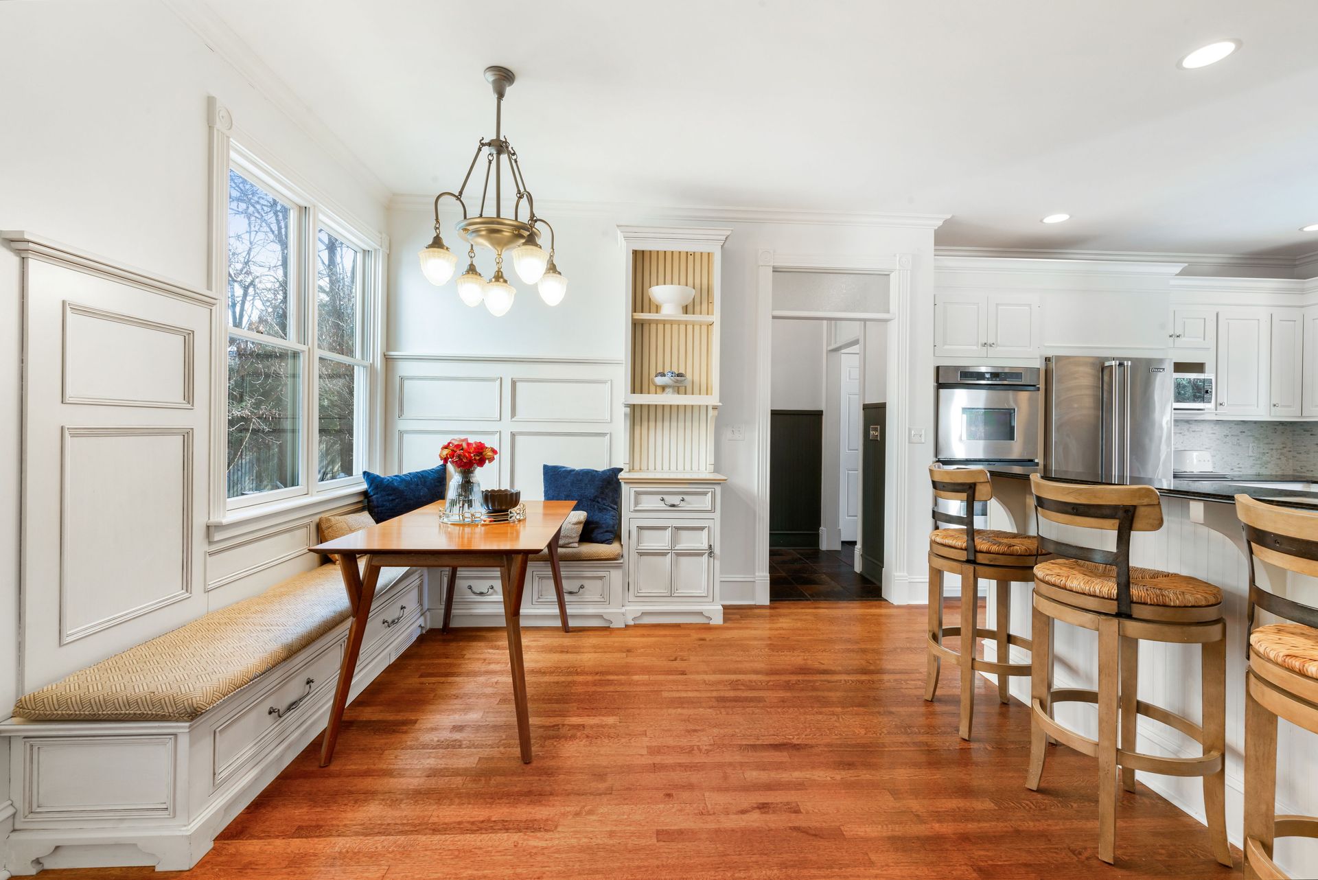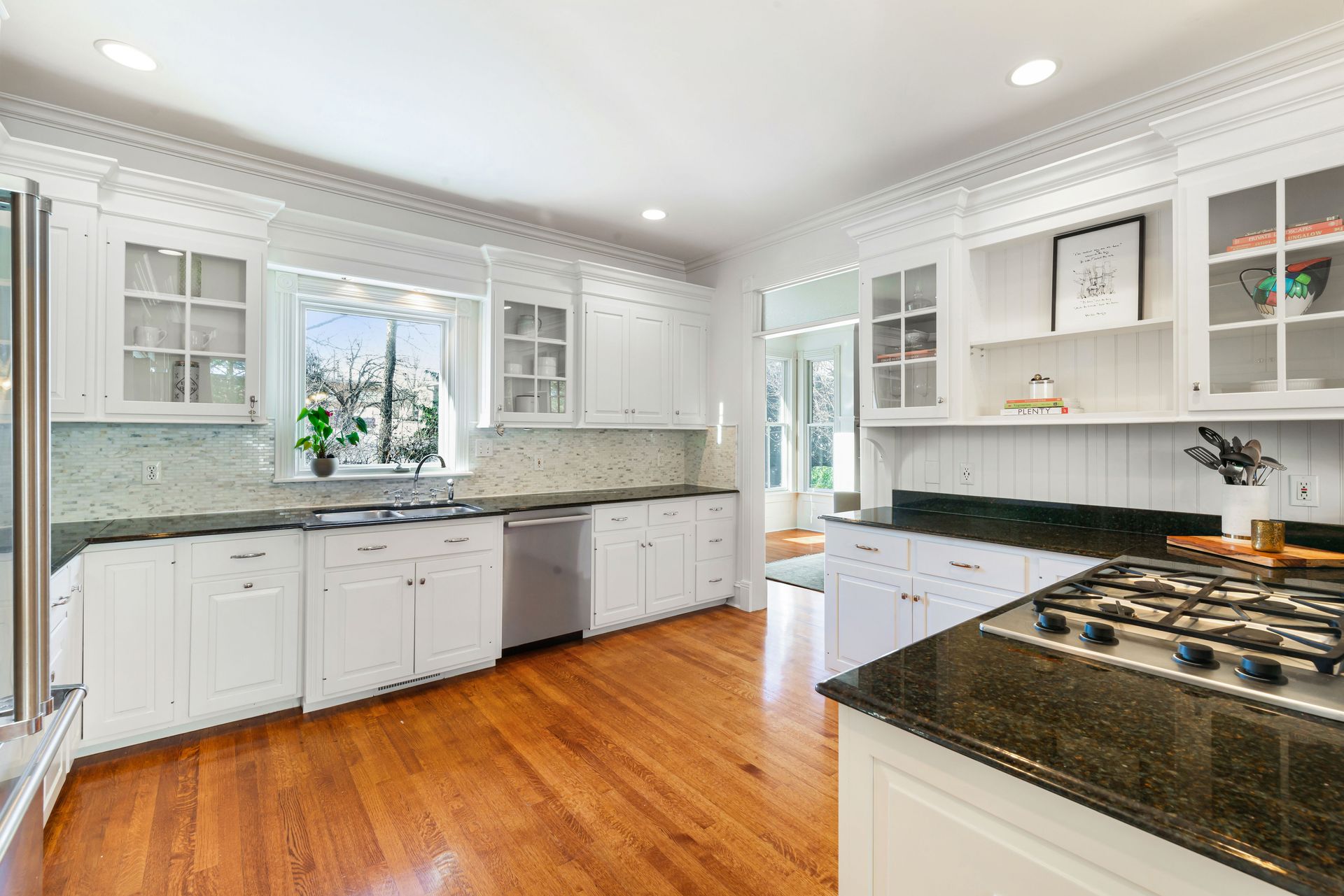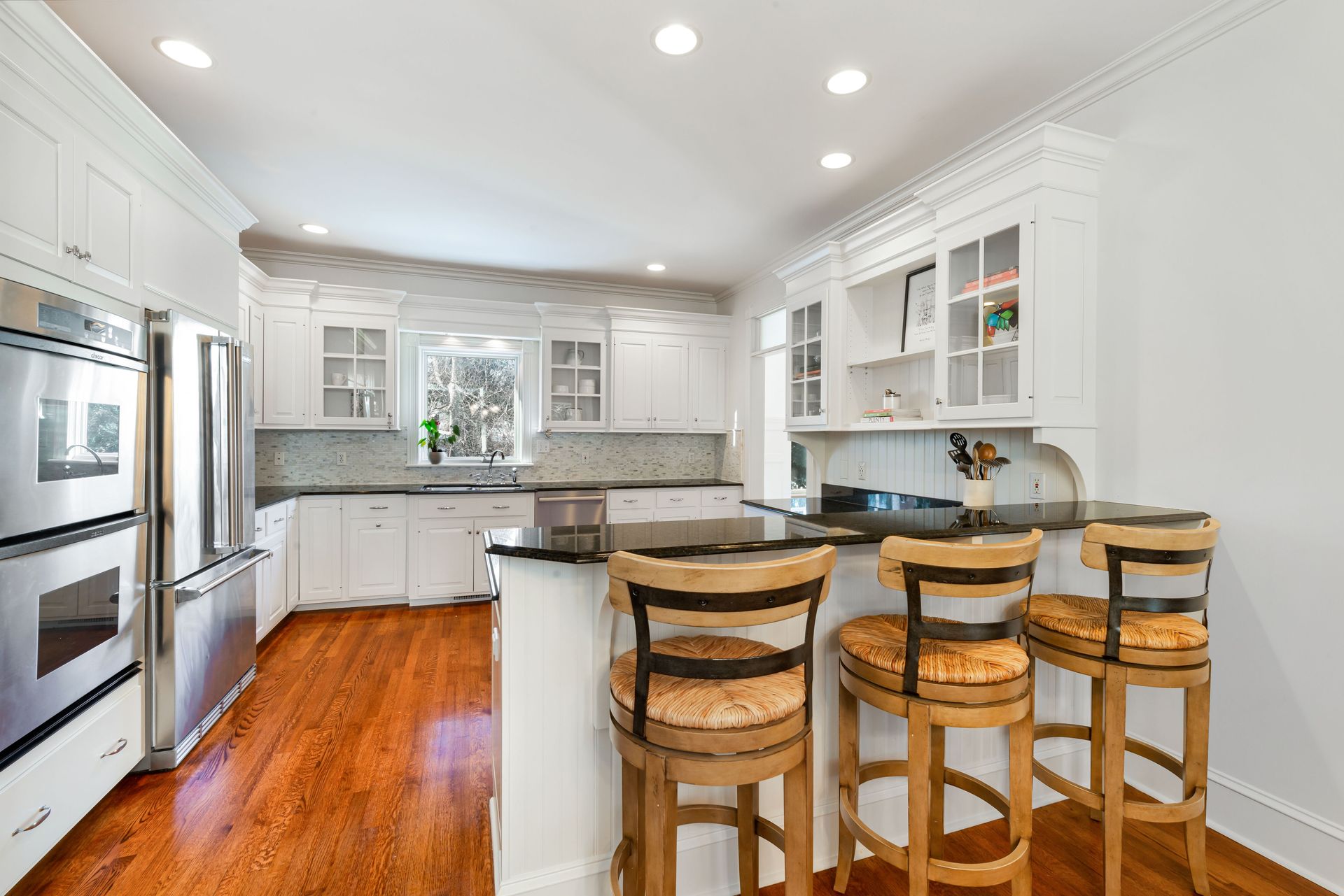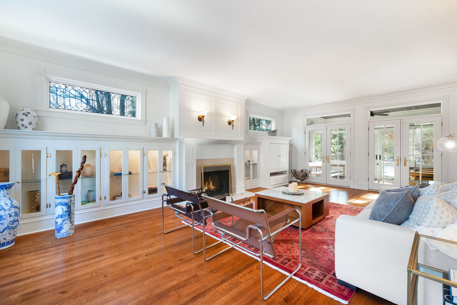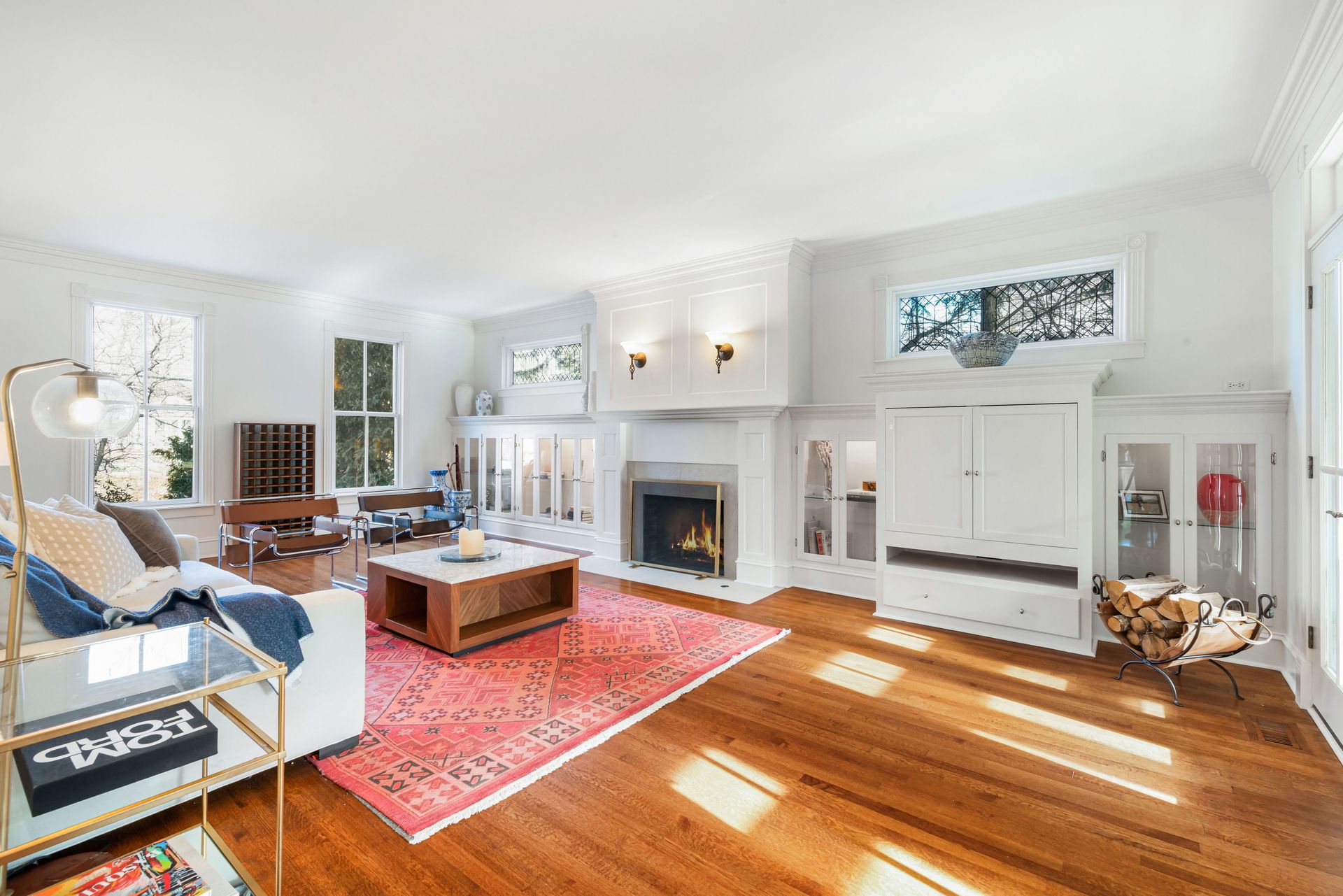 Exceptional three-story residence in the heart of Geneva’s coveted Historic District, just two blocks from 3rd Street shopping, dining and entertainment, and one block from the Fox River and scenic Fox River Trail. This premier location offers effortless walkability and access to top rated Geneva School District 304. The impressive entry welcomes you into beautifully appointed interiors featuring custom millwork, transom windows, hardwood floors, thick crown and base moldings, and elegant wainscoting throughout. Oversized living room showcases a wood-burning fireplace and glass-front built-in cabinetry, with ample natural light pouring in through French doors that open to a stunning screened-in patio for seamless indoor-outdoor living. The chef’s kitchen is timeless and inviting, offering high-end stainless steel appliances, white cabinetry, granite countertops, a new backsplash, and eat-in nook with built-in bench seating. A stunning formal dining room with wainscoting and built-in hutch, a stately office with elegant millwork, built-ins, and fireplace, along with a mudroom and full bath, complete the main level. Second floor features a luxurious primary suite with a completely remodeled en-suite bath (2025 by Hogan), featuring dual quartz vanities, large glass shower, walk-in closet, and private access to an enclosed balcony overlooking the beautiful backyard. Two additional bedrooms share a Jack-and-Jill bath, and a laundry room completes the level. Third floor offers a loft, recreation room, and fourth bedroom with en-suite bath, all with cathedral ceilings and custom built-ins. Finished lower level offers a family room with stone fireplace, wet bar, home gym (2025), bonus room, half bath, and storage. Outdoor living shines in the private, professionally landscaped backyard with a multi-level brick paver patio, mature trees, and ample open green space. Heated attached three-car garage with golf simulator. A rare opportunity to enjoy historic character, timeless luxury, and an unbeatable downtown Geneva lifestyle.
