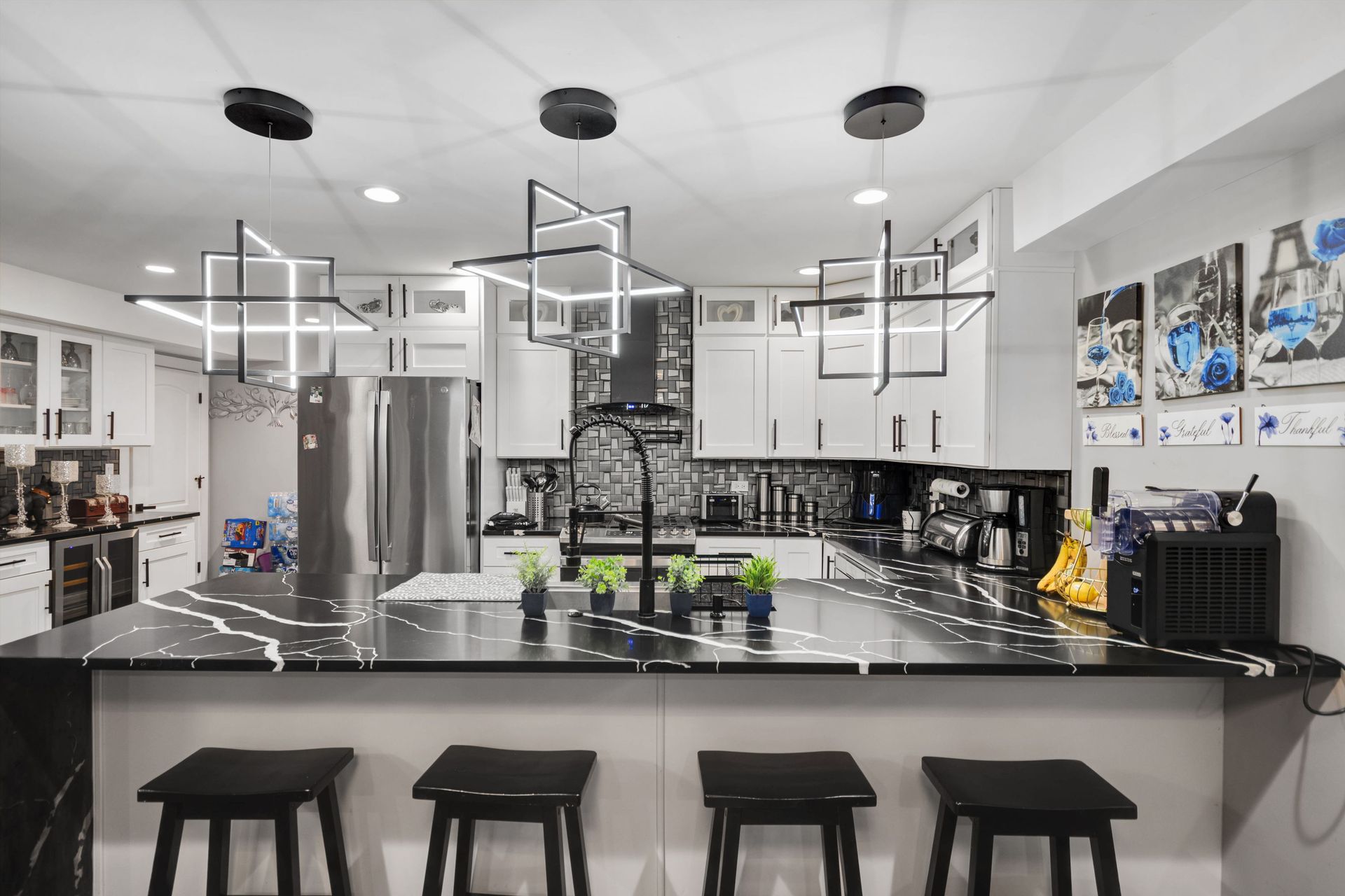 Stunning 5BR/4BA home with 2nd-floor addition and full finished basement. Features include quartz countertops, soft-close cabinets, stainless steel appliances, pot-filler, wine cooler, electric fireplace, tray ceilings, and walk-in closet. Enjoy a privacy-fenced yard and 2-car garage. A must-see!