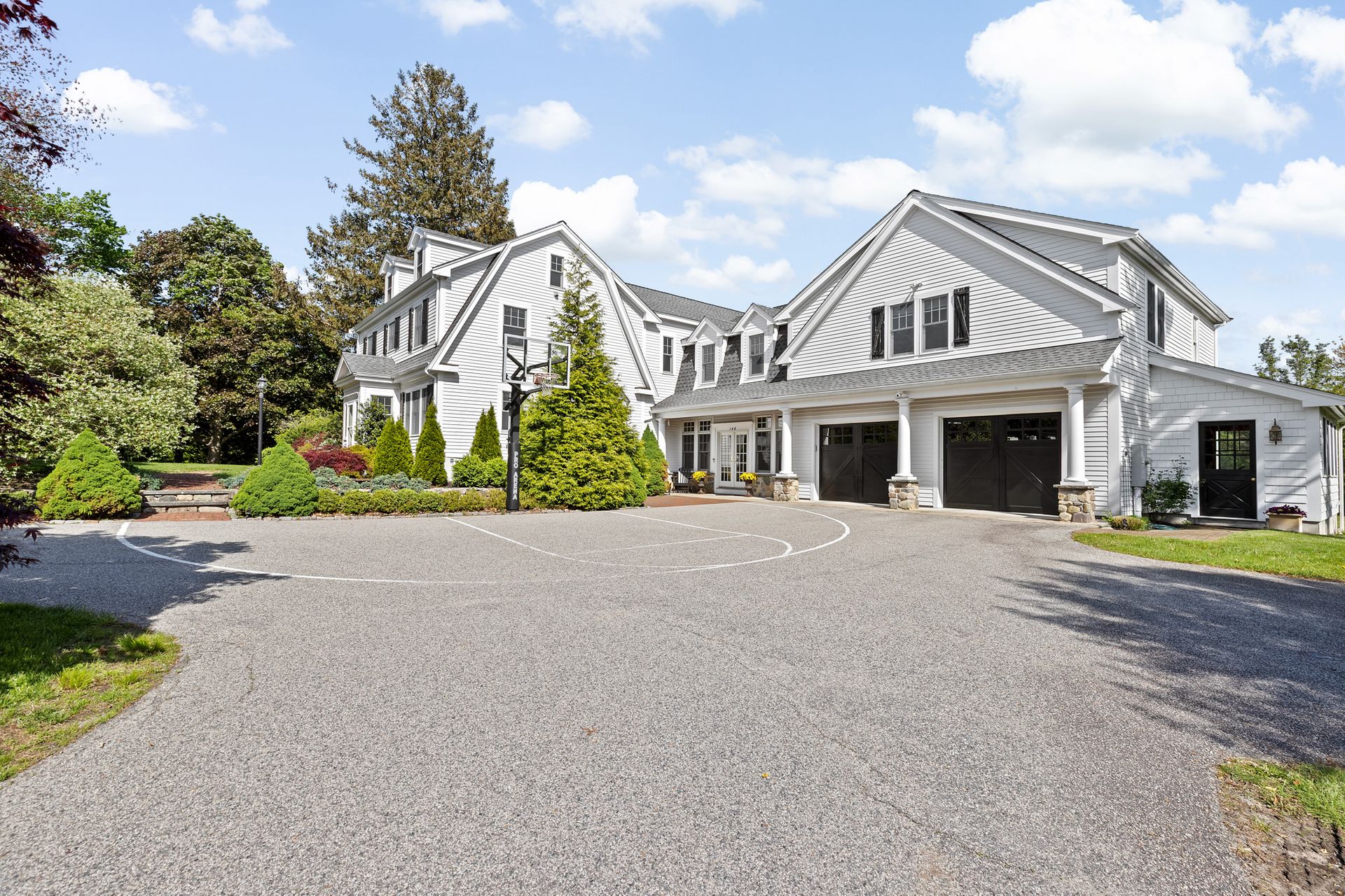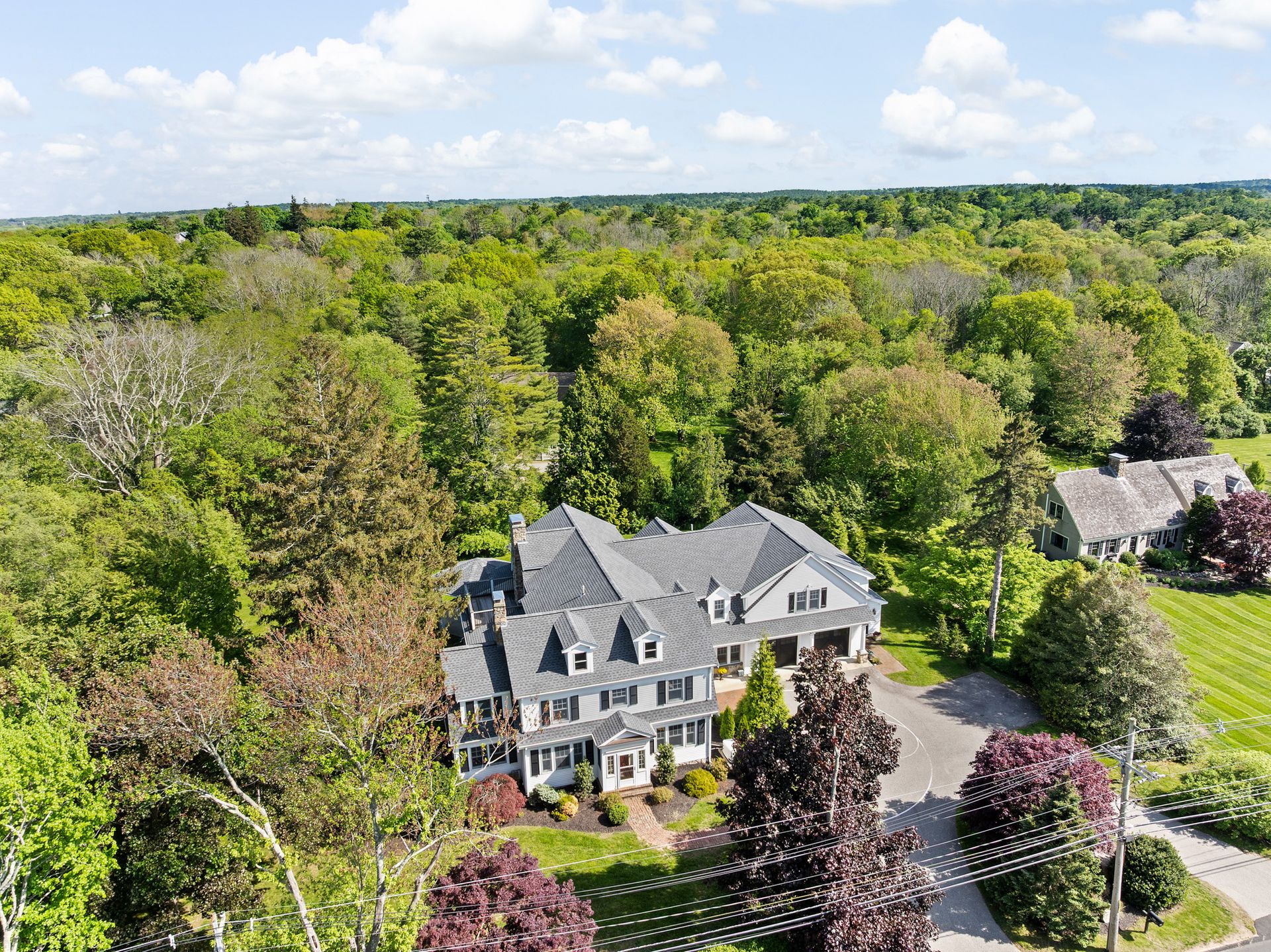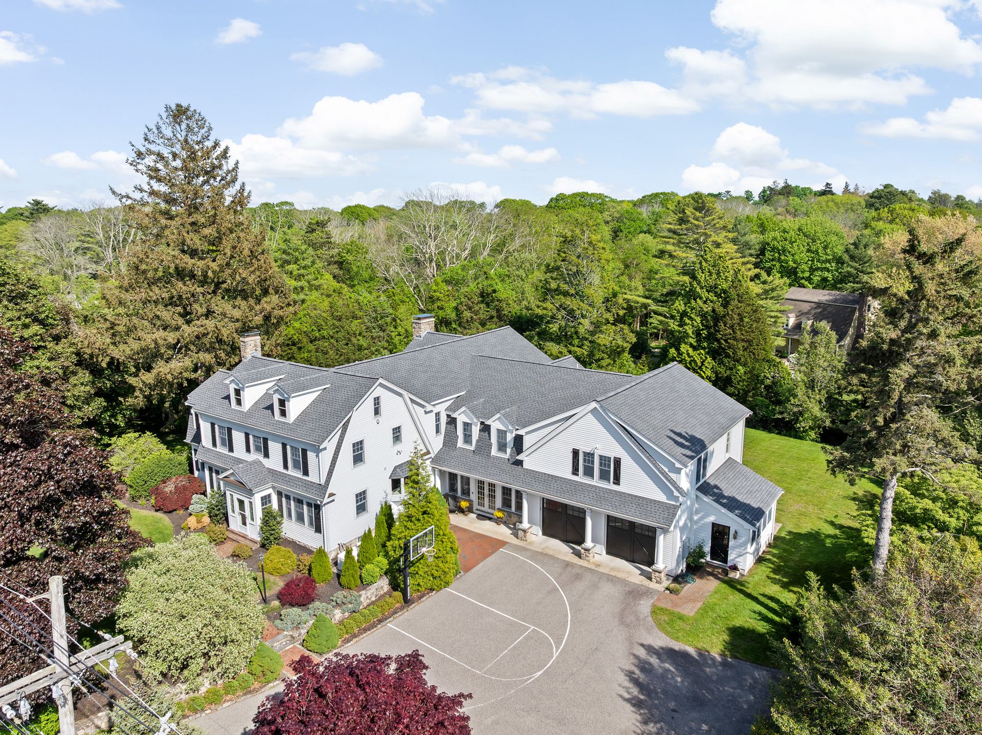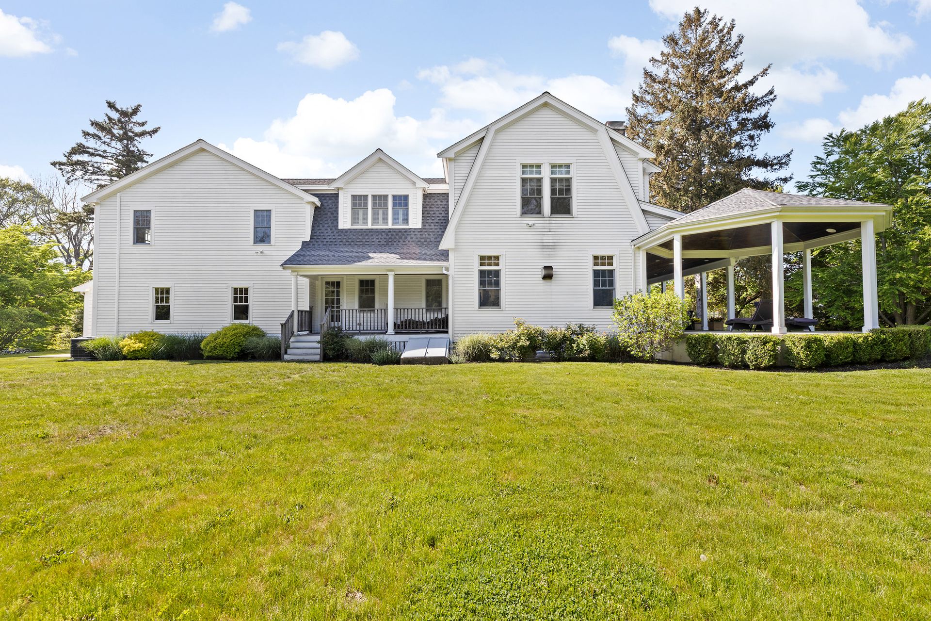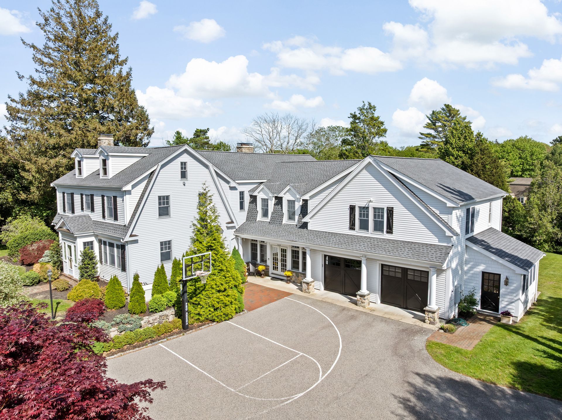 Exquisitely rebuilt & expanded 5,500 square feet, Gambrel is positioned across from Cohasset's top-rated middle/high schools. This refined residence offers the perfect blend of comfort & sophistication for a growing family that loves to entertain in style. A sun-filled gourmet kitchen with dual islands, high-end appliances, a walk-in pantry & adjacent dining area flows into the living room with fireplace & French doors to a covered porch & gazebo with an outdoor fireplace & hot tub—elegant dining room with fireplace & built-ins, sunroom & first-floor office. Upstairs, the spacious primary suite includes a private deck, fireplace & marble bath with spa-like amenities. Three additional bedrooms, two share a private den/playroom. The stunning vaulted-ceiling library is the perfect reading nook. A separate fifth bedroom suite with a full bath & large game room is ideal for in-laws or au pair. Large, level backyard, oversized two-car garage with attached garden shed & lower level home gym complete this home.