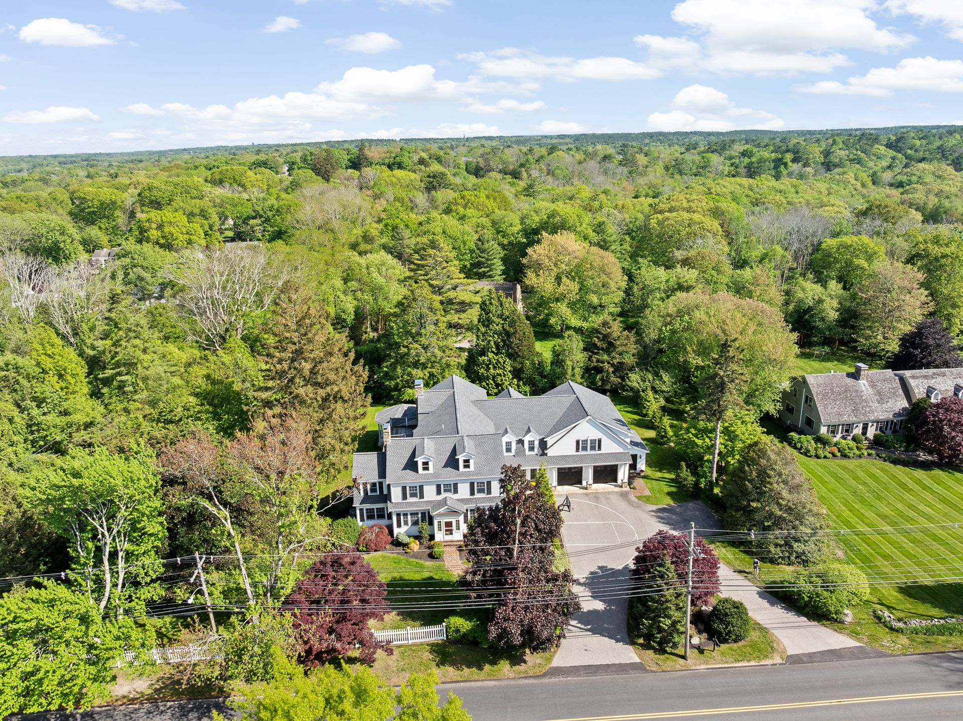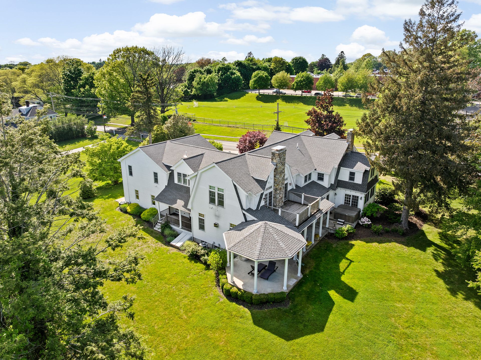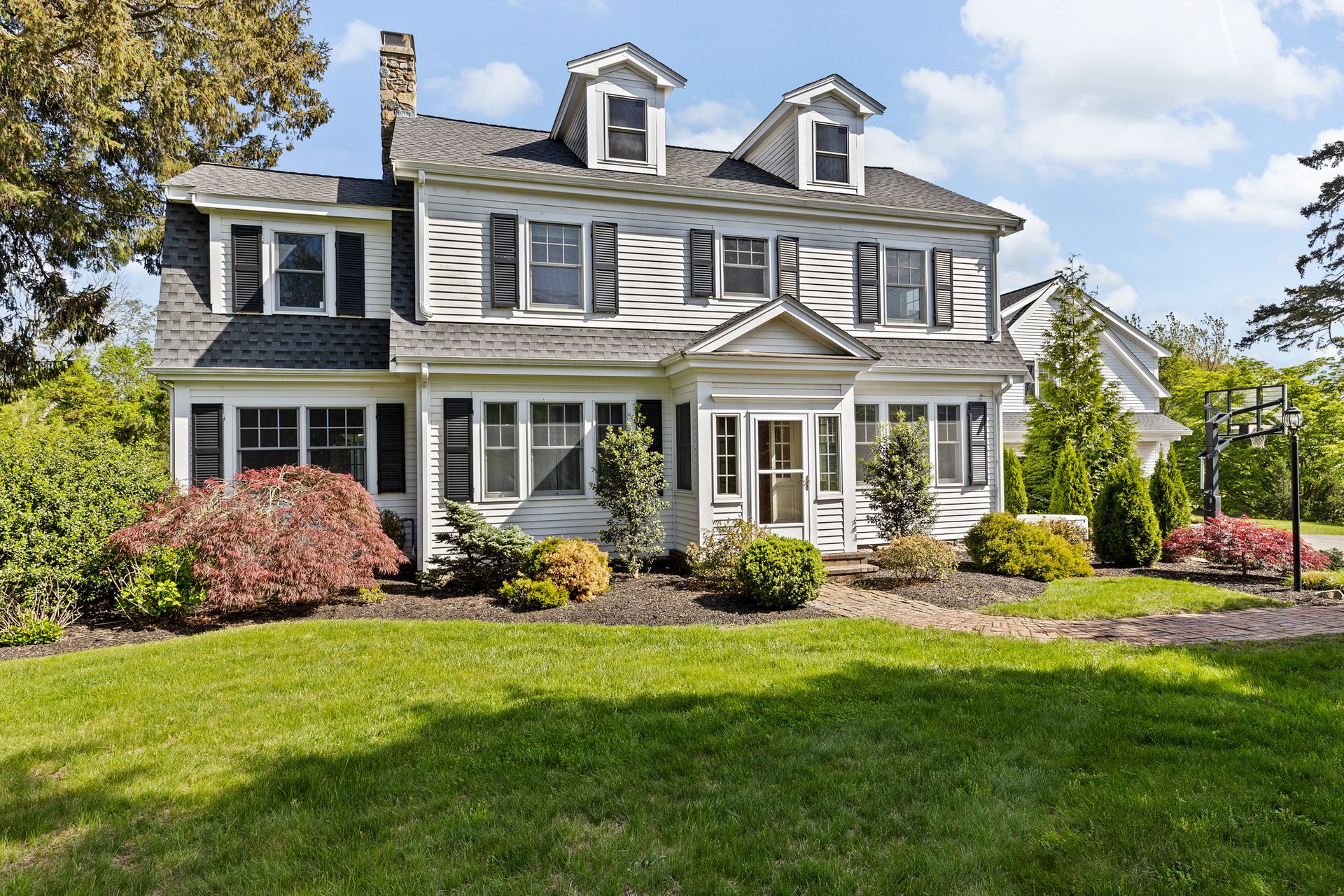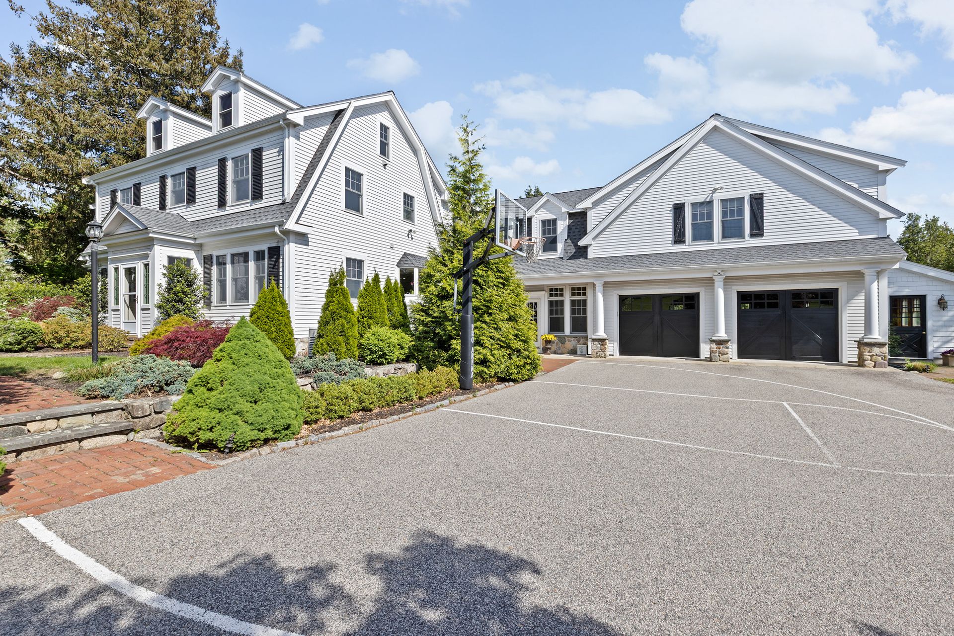 Exquisitely rebuilt & expanded 5,500 square feet, Gambrel is positioned across from Cohasset's top-rated middle/high schools. This refined residence offers the perfect blend of comfort & sophistication for a growing family that loves to entertain in style. A sun-filled gourmet kitchen with dual islands, high-end appliances, a walk-in pantry & adjacent dining area flows into the living room with fireplace & French doors to a covered porch & gazebo with an outdoor fireplace & hot tub—elegant dining room with fireplace & built-ins, sunroom & first-floor office. Upstairs, the spacious primary suite includes a private deck, fireplace & marble bath with spa-like amenities. Three additional bedrooms, two share a private den/playroom. The stunning vaulted-ceiling library is the perfect reading nook. A separate fifth bedroom suite with a full bath & large game room is ideal for in-laws or au pair. Large, level backyard, oversized two-car garage with attached garden shed & lower level home gym complete this home.