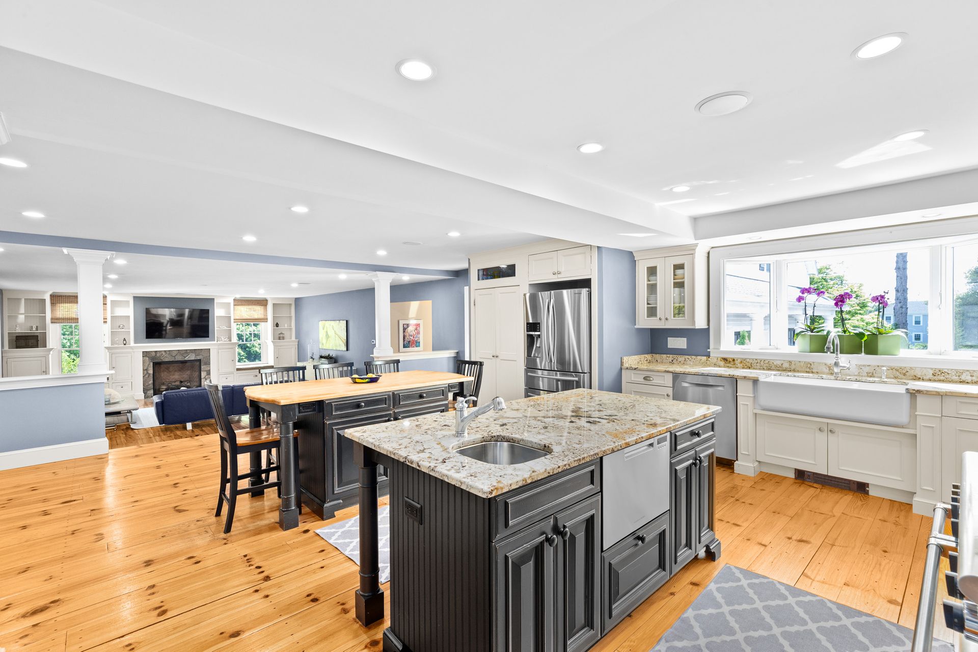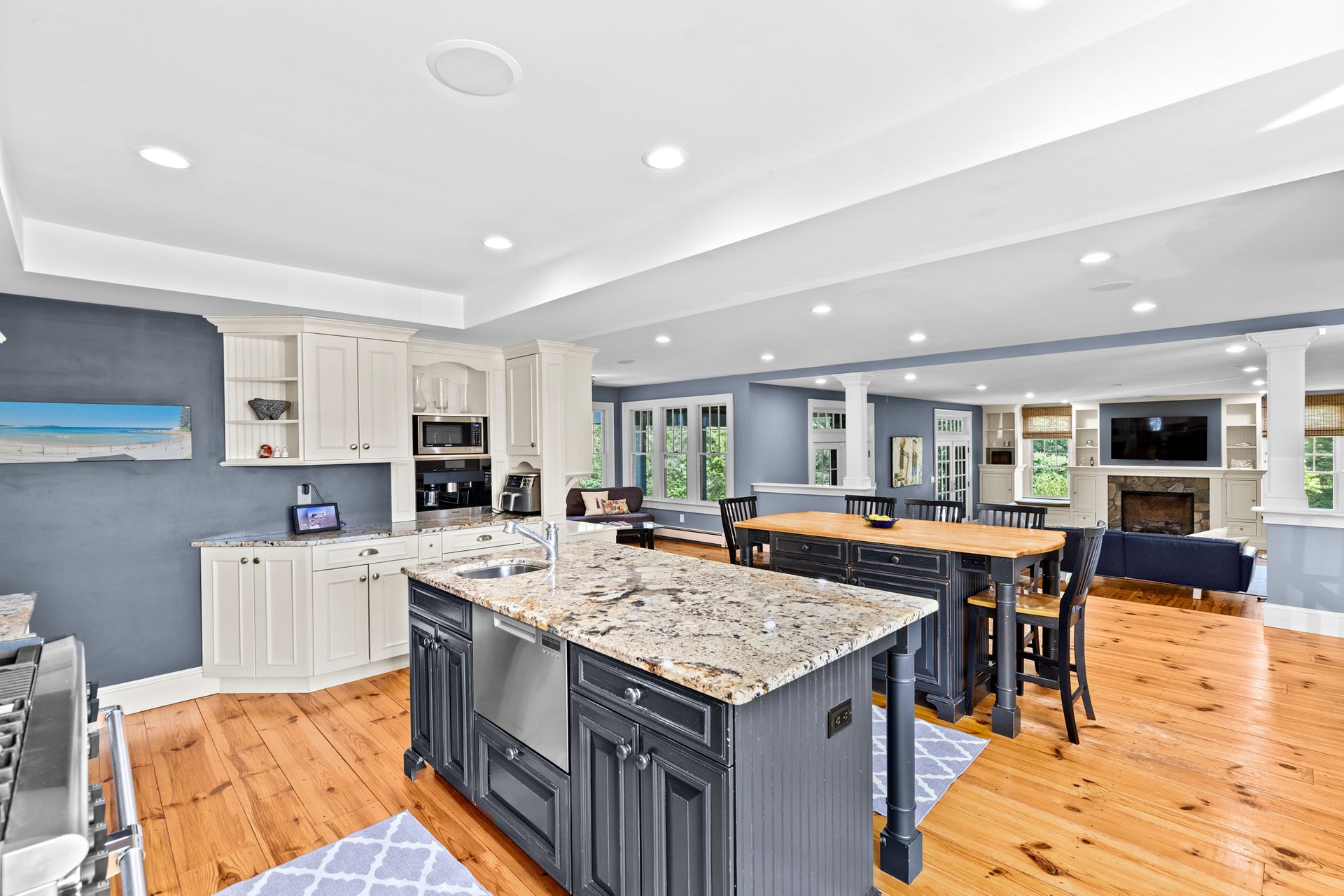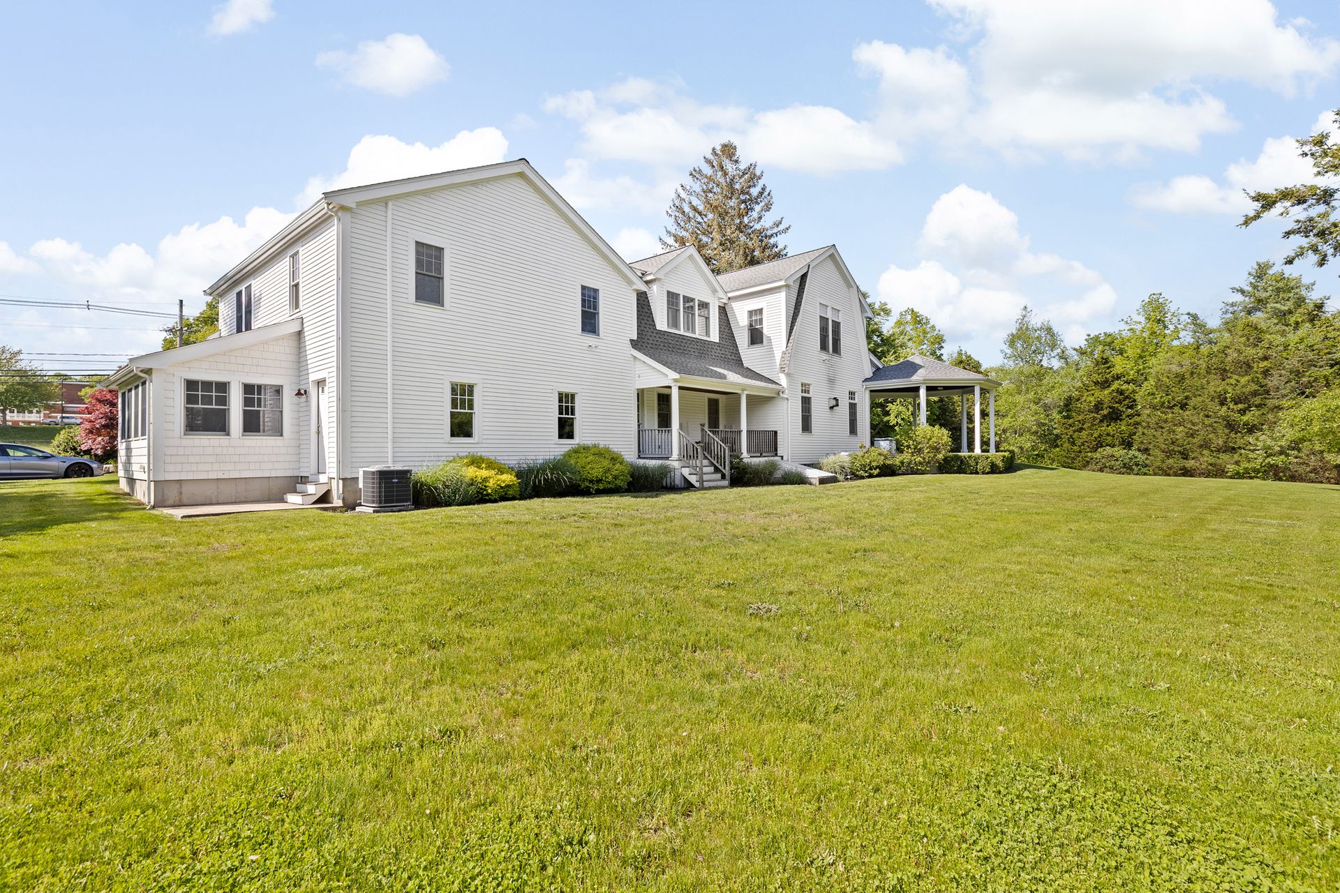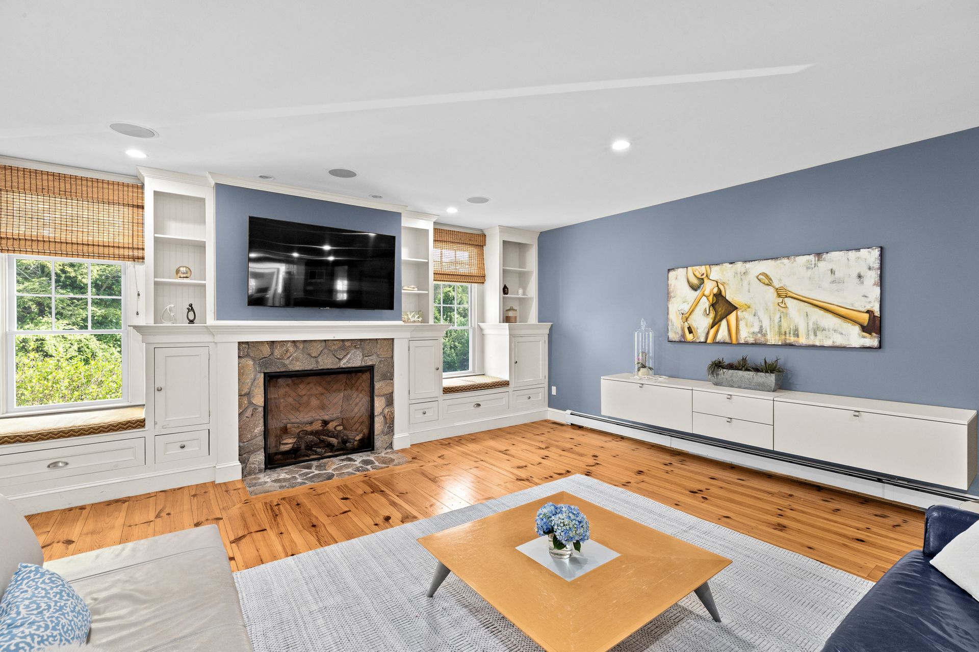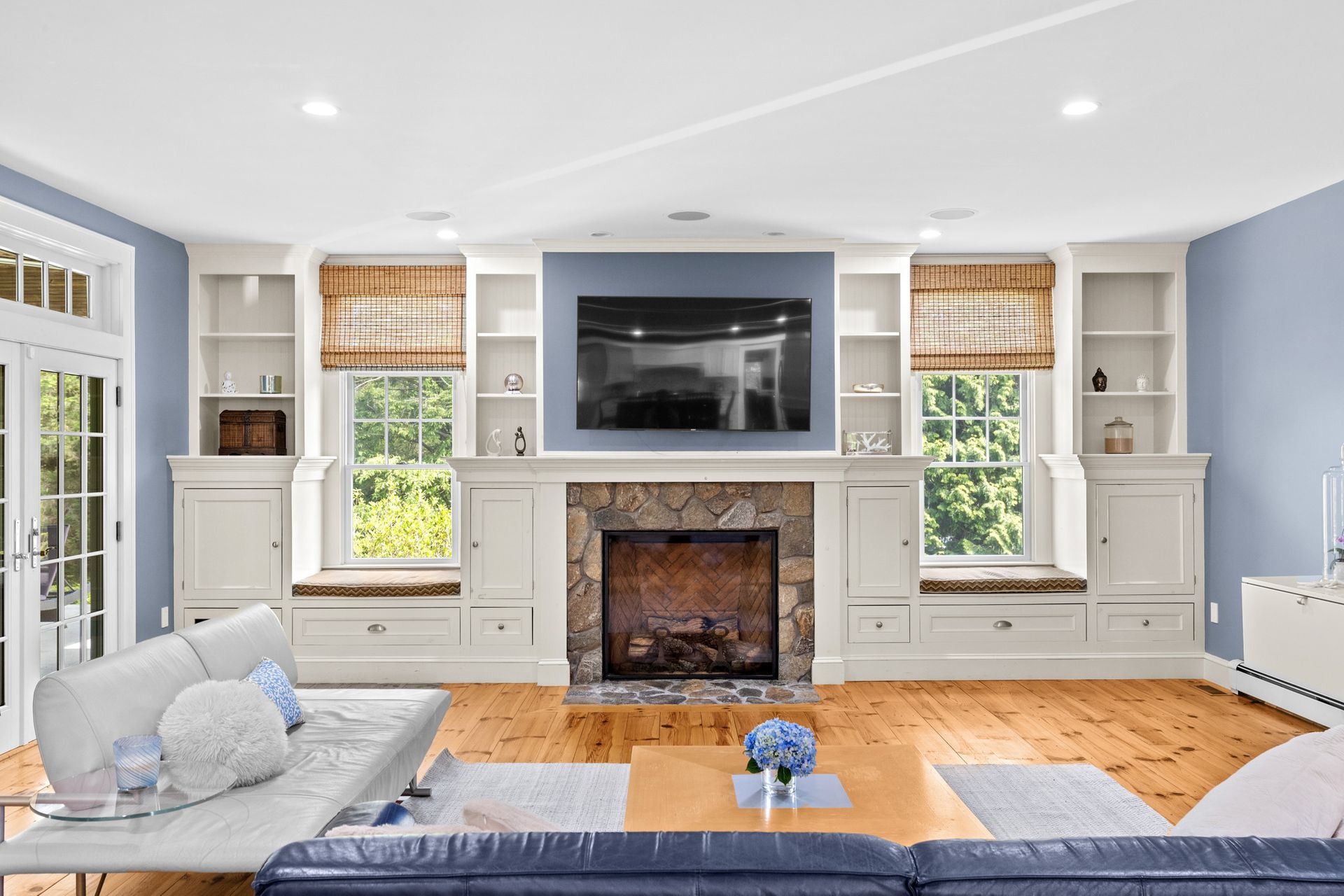 Exquisitely rebuilt & expanded 5,500 square feet, Gambrel is positioned across from Cohasset's top-rated middle/high schools. This refined residence offers the perfect blend of comfort & sophistication for a growing family that loves to entertain in style. A sun-filled gourmet kitchen with dual islands, high-end appliances, a walk-in pantry & adjacent dining area flows into the living room with fireplace & French doors to a covered porch & gazebo with an outdoor fireplace & hot tub—elegant dining room with fireplace & built-ins, sunroom & first-floor office. Upstairs, the spacious primary suite includes a private deck, fireplace & marble bath with spa-like amenities. Three additional bedrooms, two share a private den/playroom. The stunning vaulted-ceiling library is the perfect reading nook. A separate fifth bedroom suite with a full bath & large game room is ideal for in-laws or au pair. Large, level backyard, oversized two-car garage with attached garden shed & lower level home gym complete this home.