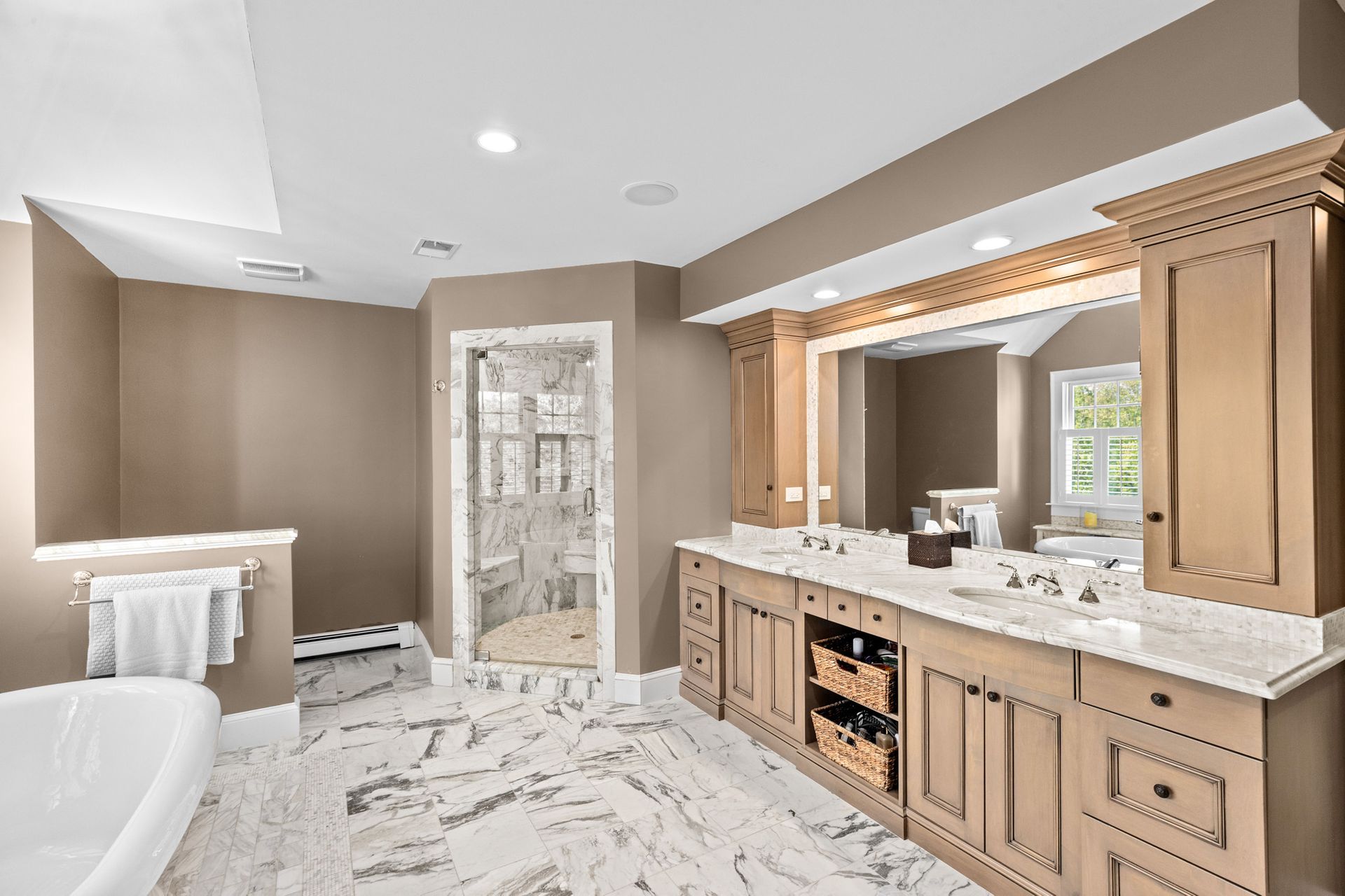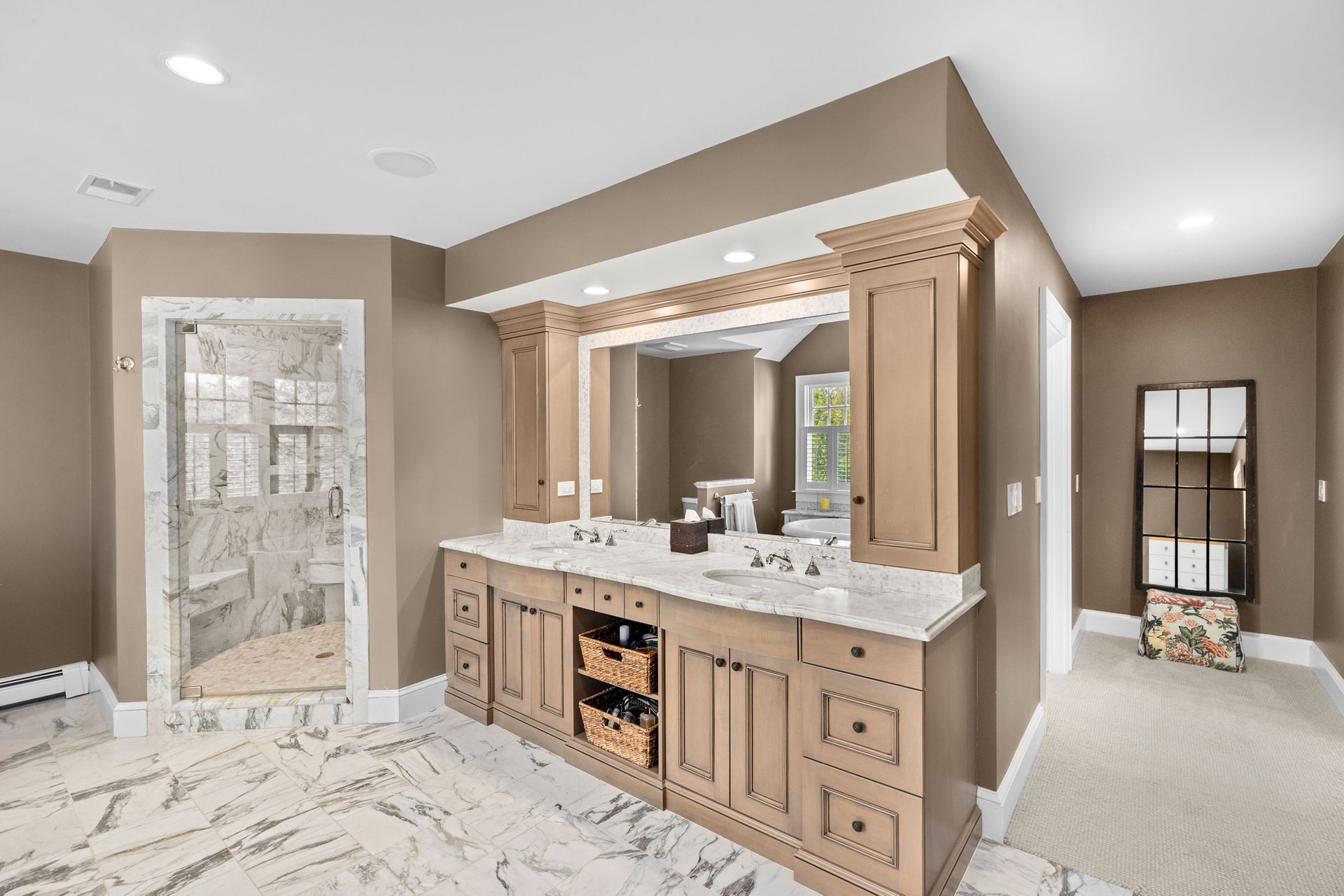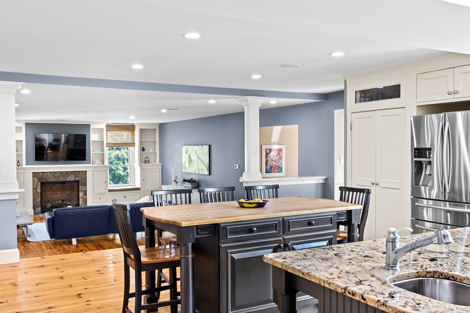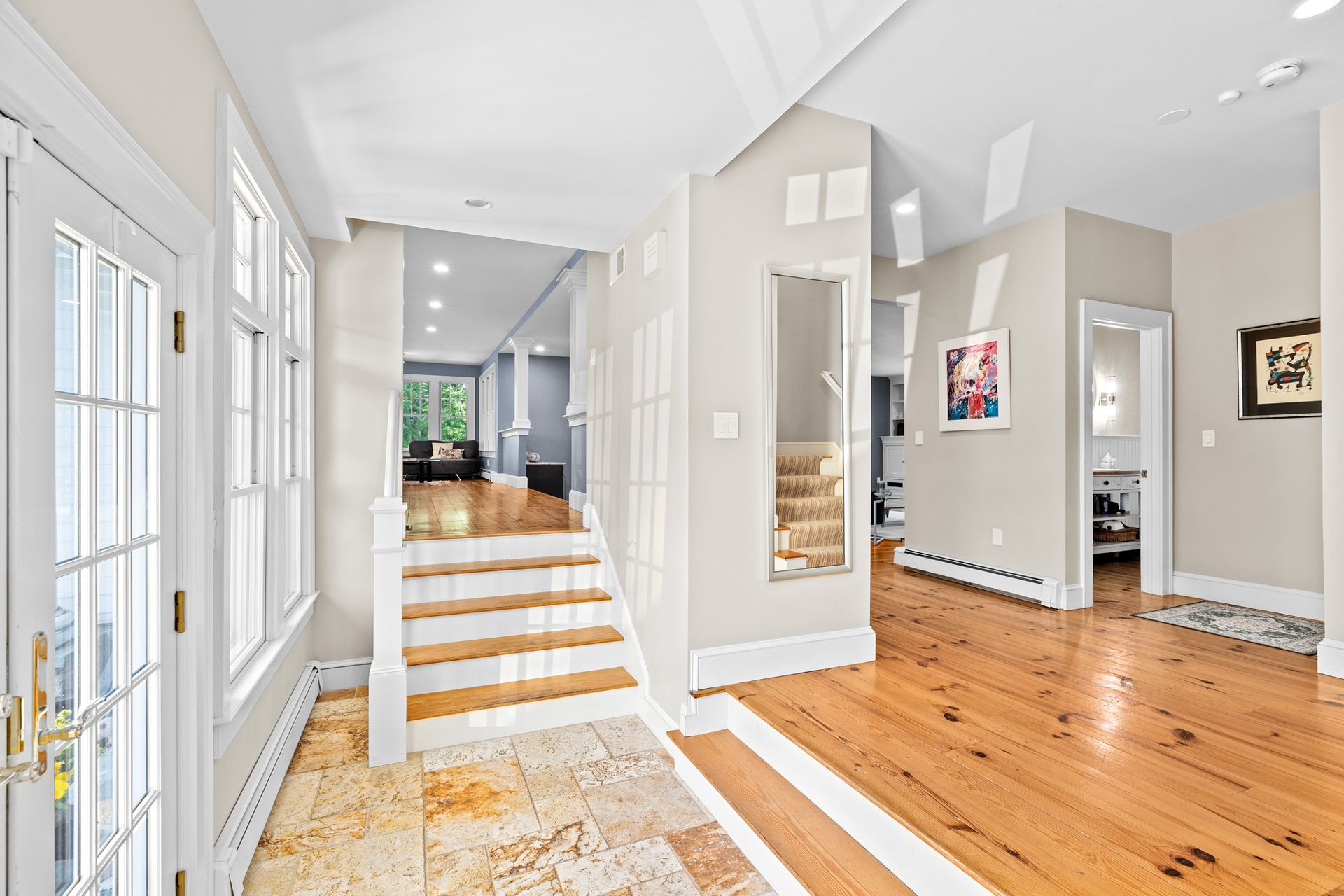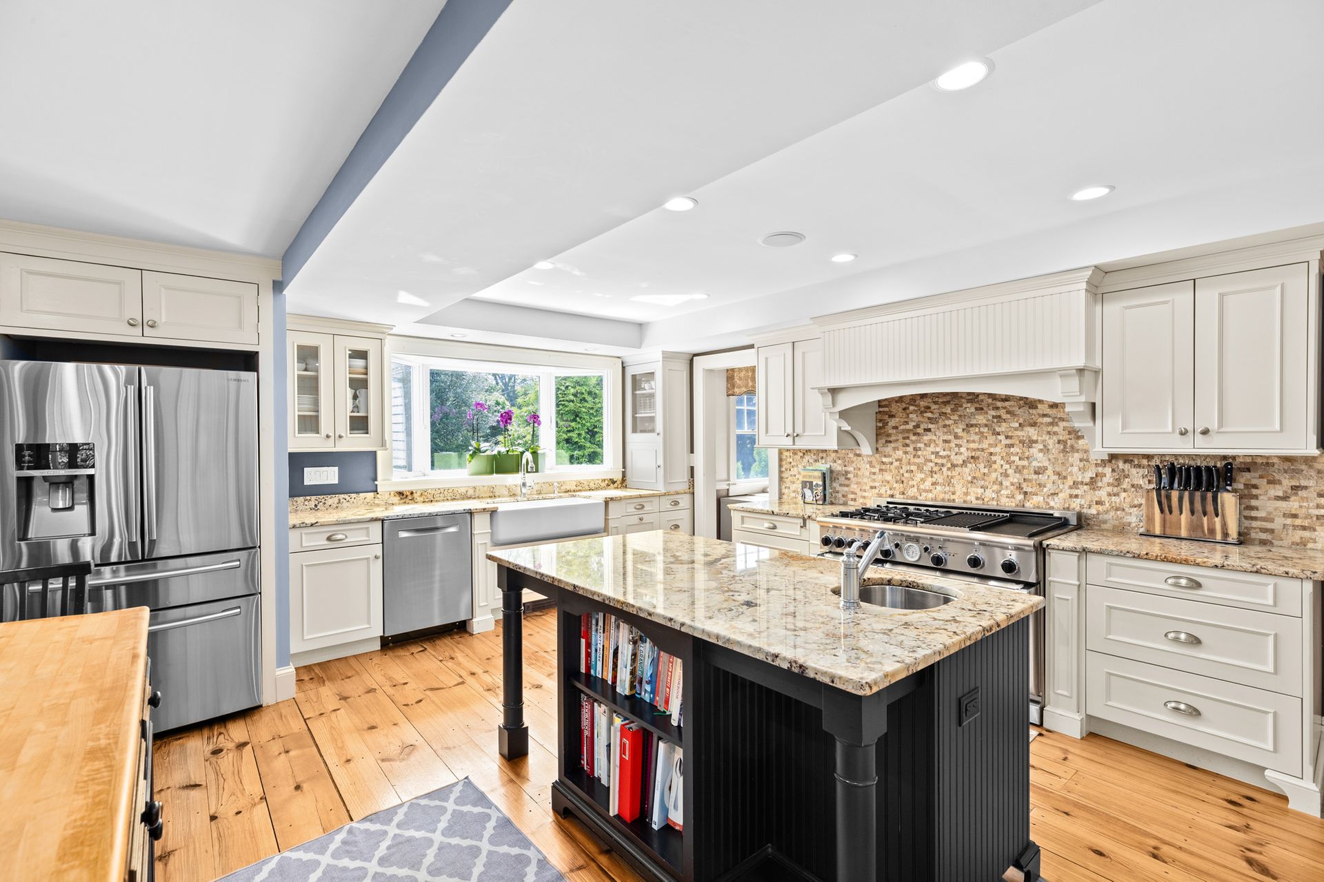 Exquisitely rebuilt & expanded 5,500 square feet, Gambrel is positioned across from Cohasset's top-rated middle/high schools. This refined residence offers the perfect blend of comfort & sophistication for a growing family that loves to entertain in style. A sun-filled gourmet kitchen with dual islands, high-end appliances, a walk-in pantry & adjacent dining area flows into the living room with fireplace & French doors to a covered porch & gazebo with an outdoor fireplace & hot tub—elegant dining room with fireplace & built-ins, sunroom & first-floor office. Upstairs, the spacious primary suite includes a private deck, fireplace & marble bath with spa-like amenities. Three additional bedrooms, two share a private den/playroom. The stunning vaulted-ceiling library is the perfect reading nook. A separate fifth bedroom suite with a full bath & large game room is ideal for in-laws or au pair. Large, level backyard, oversized two-car garage with attached garden shed & lower level home gym complete this home.