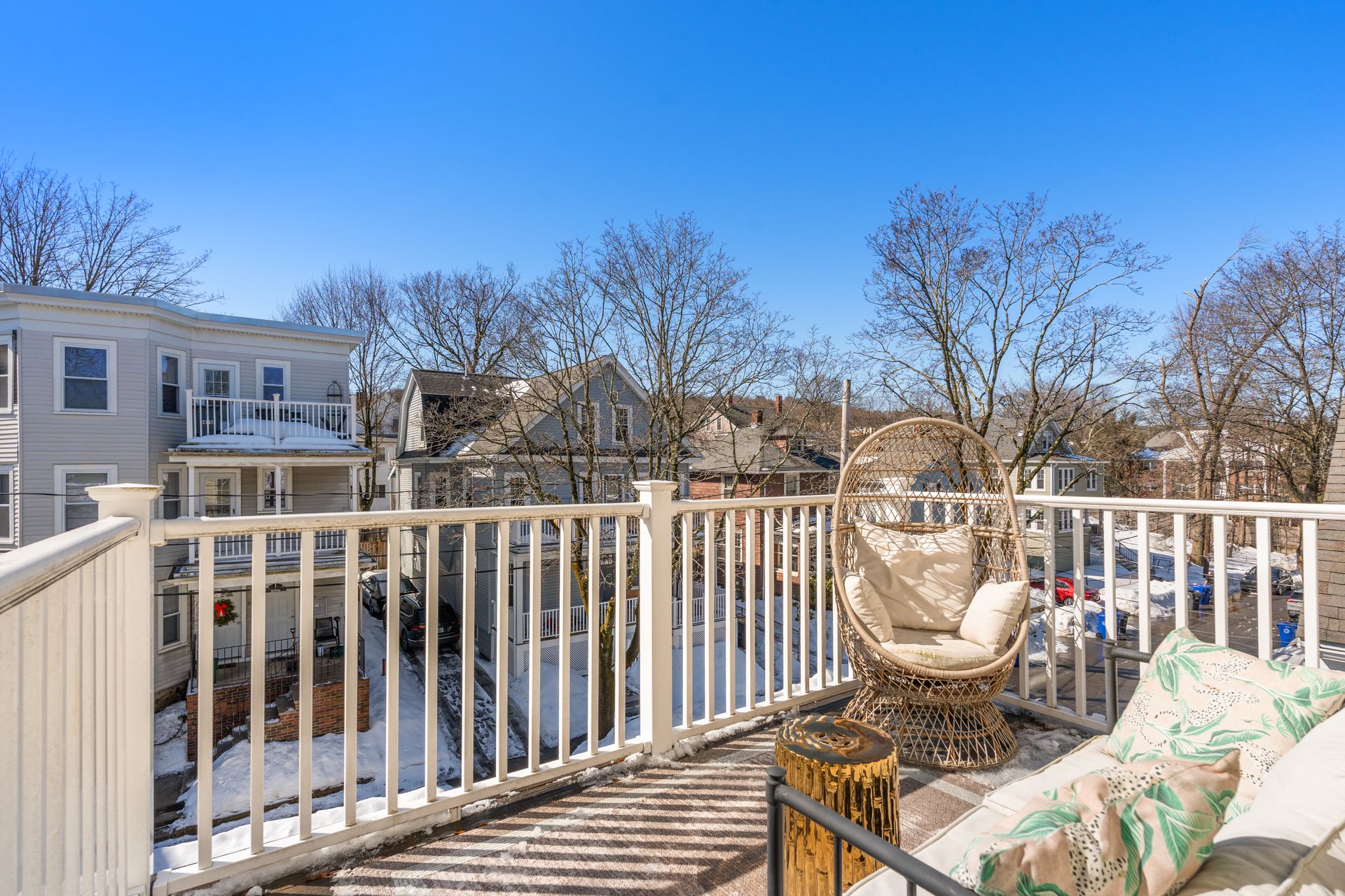 This fully renovated penthouse-level condo in owner-occupied building has it all. Located on a quiet dead-end street off Brattle Street and steps to Mass Ave, this sun-splashed interior with hardwood floors and open floor plan offers a great layout and an open airy feel. Includes living room w/ bay windows, dining area, large renovated kitchen with stainless appliances and sparkling quartz counters, primary bedroom w/ attached bath, second bedroom and 1/2 bath. This unit boasts central ac, in-unit laundry, two private outdoor spaces including a front uncovered porch and rear covered porch, common yard space with patio for dining and grilling, and a fenced-in grassy area. Deeded parking and deeded air-conditioned large storage room. Top location on the Minuteman Bike Trail and in between Arlington Center and Arlington Heights with easy walking to both. Enjoy parks, restaurants, theatre and history. Steps to the bus to Cambridge & Boston and commuter access via Rt 2,128/95, 93 and 3