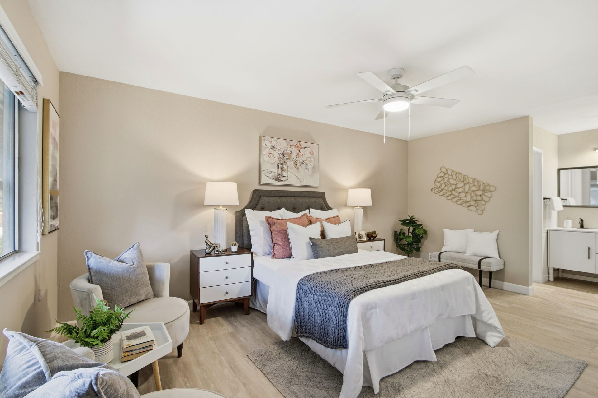 The Vista Del Lago community provides a tranquil sanctuary from the hustle and bustle of Silicon Valley, surrounded by picturesque ponds, mature trees, and well-manicured grounds. Community amenities include two swimming pools, a spa, sauna, weight room, clubhouse, and a guest suite for visitors. The property is centrally located near major tech companies, Valley Fair shopping center, Santana Row, and offers easy access to Highway 880, 280, San Tomas Expressway.