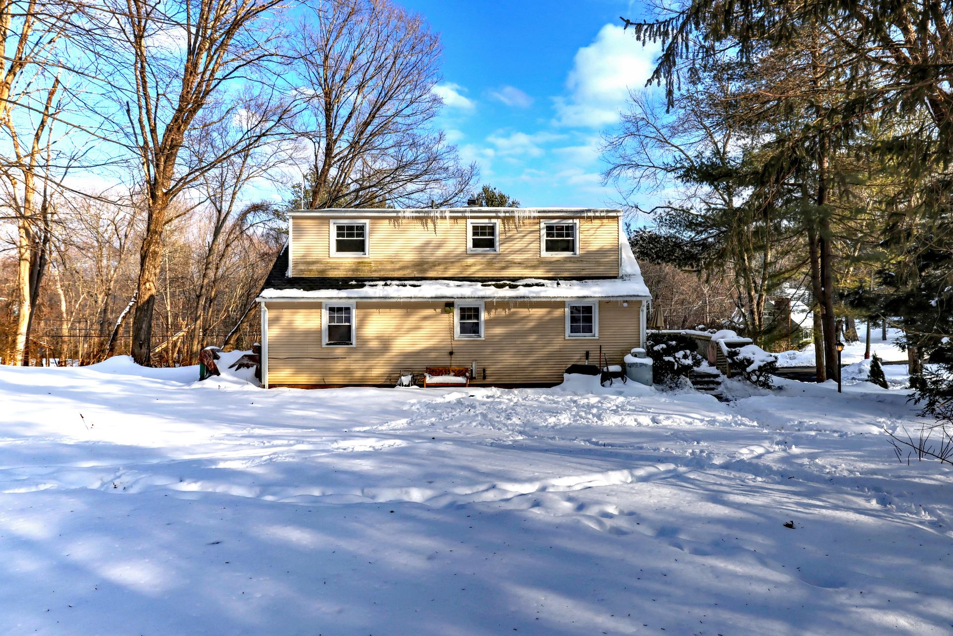 Mechanically updated Cape Cod home in the desirable Scoville Hill section of Harwinton, CT, set on a private approximately 0.86-acre, lightly wooded lot. This three-bedroom, one and a half-bath Cape offers approximately 1,382 square feet of above-grade living space with a flexible layout. The main level has an open kitchen flowing into the dining room and a fireplaced living room with hardwood flooring and a bow window. A first-floor primary bedroom and full bath provide convenient one-level living options. Upstairs, two spacious bedrooms with hardwood floors share a half bath. Major mechanical updates include: Boiler, oil tank, and well equipment in 2023, roof in 2020, and septic in 2018. The home also includes a basement, an under-house garage, and a paved driveway. Exterior features include a deck, stone wall accents, and a secluded setting while still being close to Birge Park, Lake Harwinton, golf courses, and local amenities. If you're looking for a move-in-ready Harwinton home with acreage, updated systems, and classic New England charm - this is it.