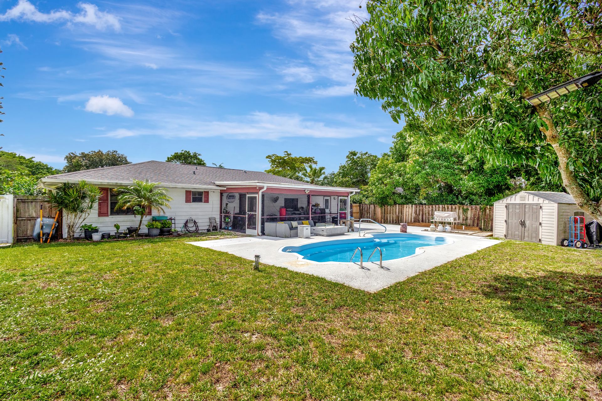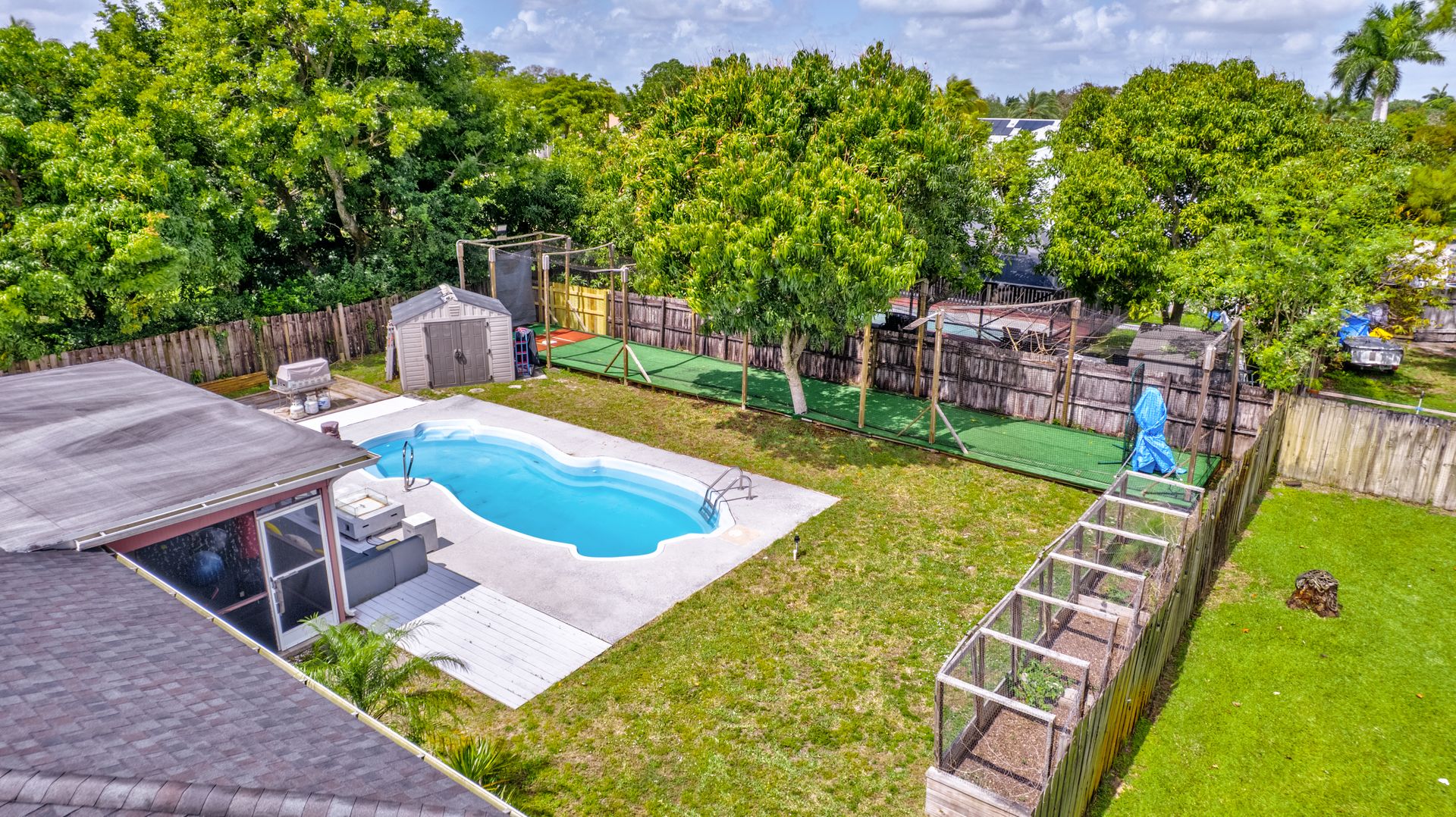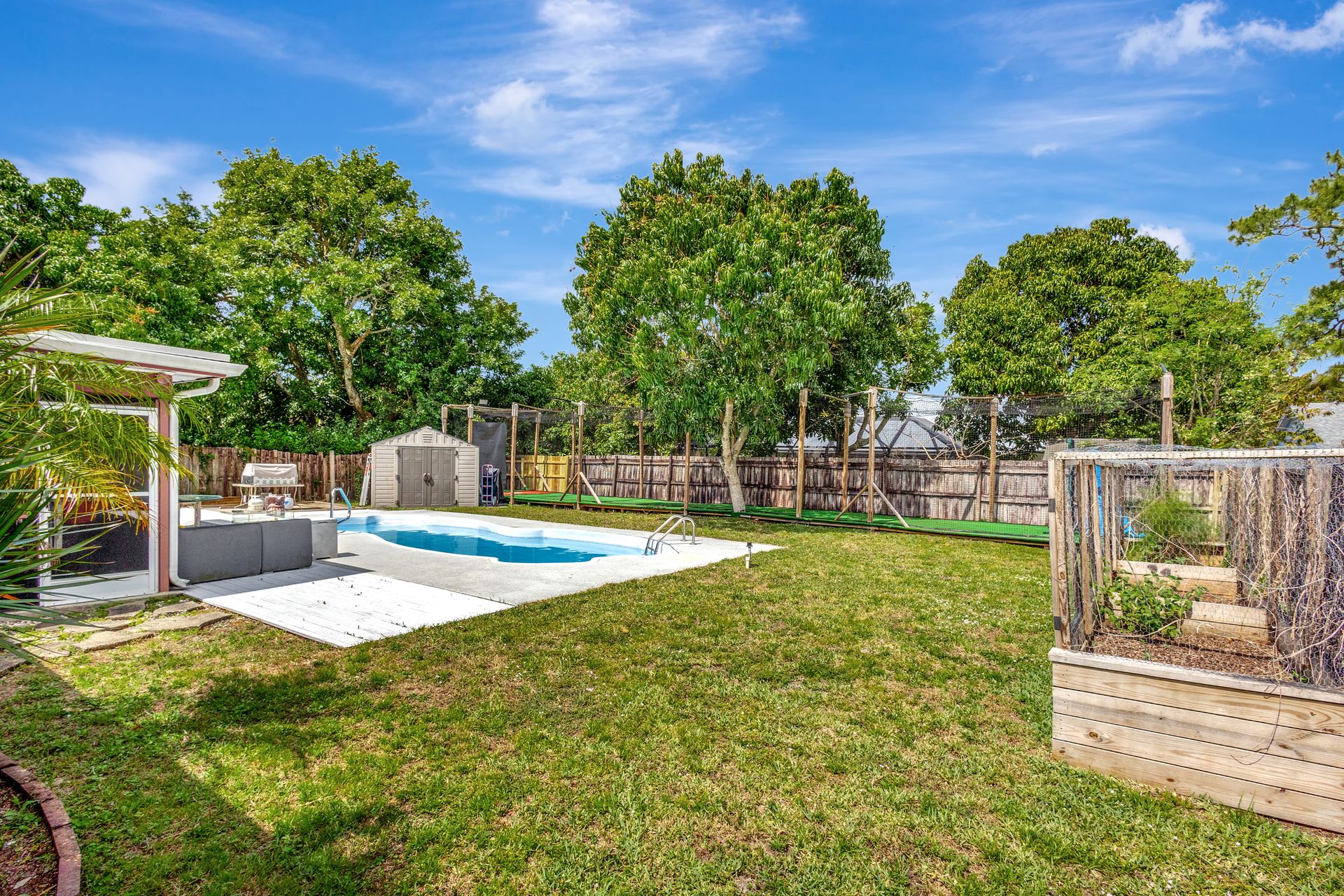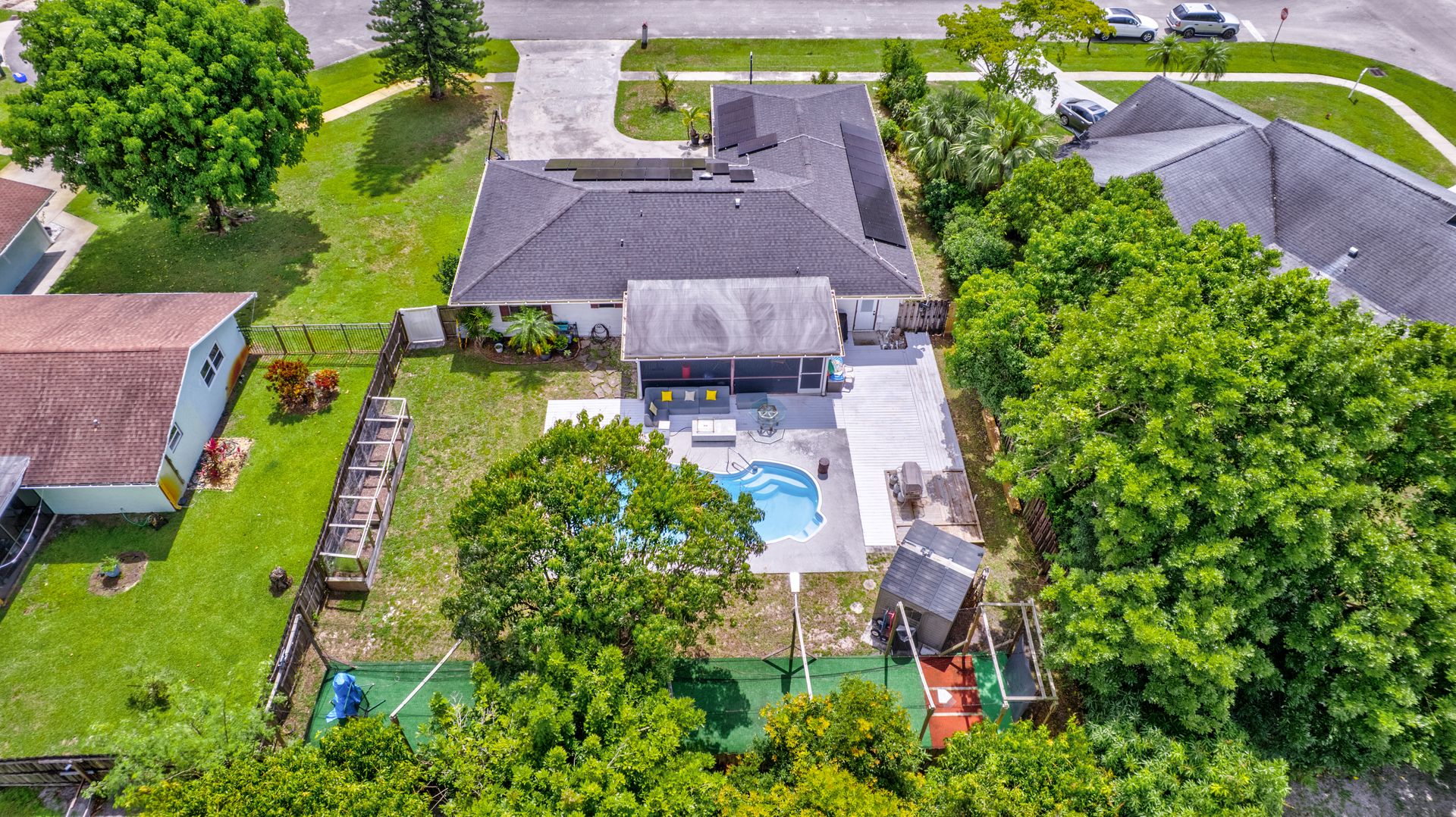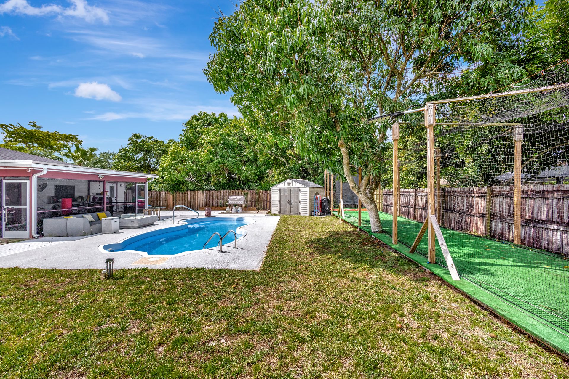 Welcome to this exquisite four-bedroom, two-bathroom family pool home, situated in one of the most desirable neighborhoods in the area. As you enter, you're greeted by a spacious open-plan layout and abundant natural light highlighting the elegant Bamboo laminate floors in the common area. The gourmet kitchen is a chef's dream, featuring stainless steel appliances, quartz countertops, and a large peninsula ideal for entertaining guests or preparing meals; the home is great for living or entertaining. The property's highlight is the beautiful backyard, featuring a secluded pool that provides the ideal space for relaxation and outdoor activities. The roof and water heater are six years old. HVAC is five years old. The pool pump is one year old. Solar panels for the entire home, a newer extended pool deck, the shed, and the batting cage are included!