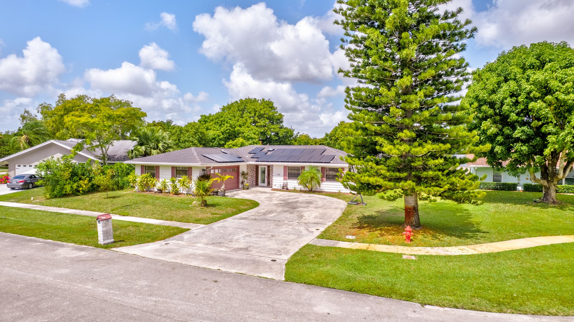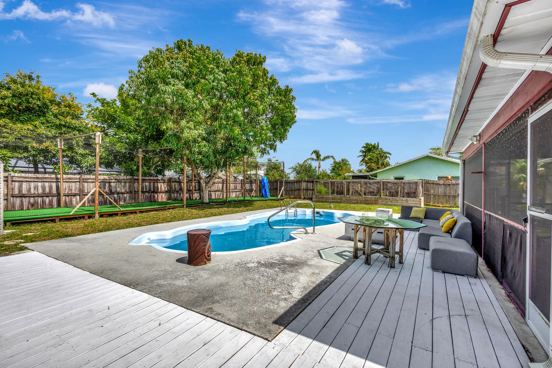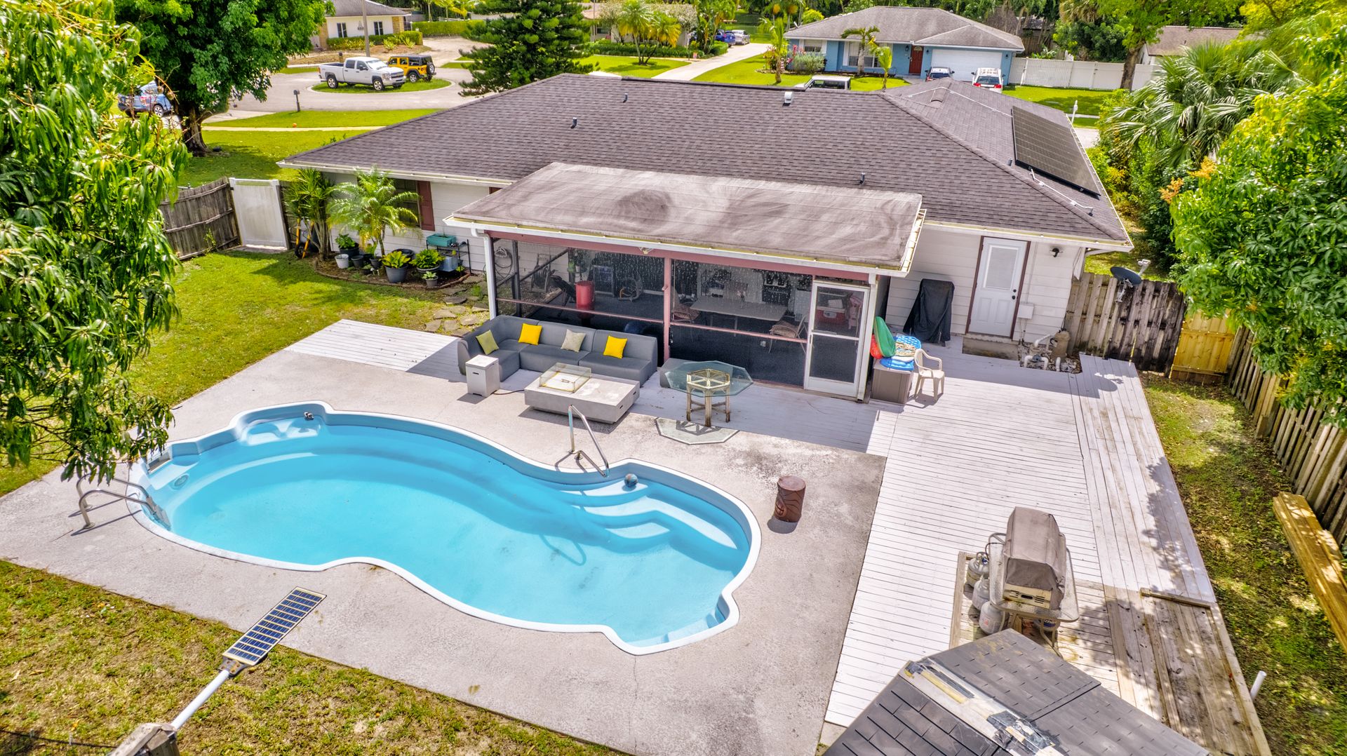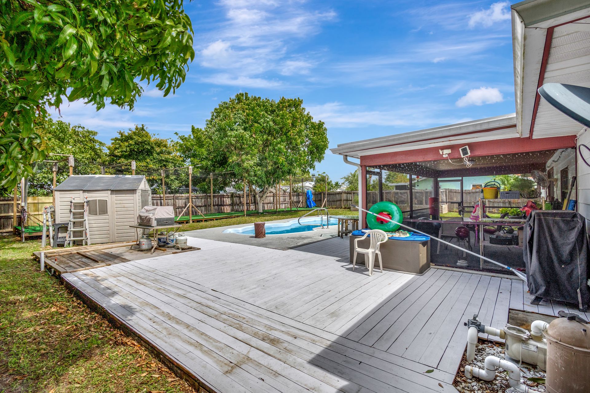 Welcome to this exquisite four-bedroom, two-bathroom family pool home, situated in one of the most desirable neighborhoods in the area. As you enter, you're greeted by a spacious open-plan layout and abundant natural light highlighting the elegant Bamboo laminate floors in the common area. The gourmet kitchen is a chef's dream, featuring stainless steel appliances, quartz countertops, and a large peninsula ideal for entertaining guests or preparing meals; the home is great for living or entertaining. The property's highlight is the beautiful backyard, featuring a secluded pool that provides the ideal space for relaxation and outdoor activities. The roof and water heater are six years old. HVAC is five years old. The pool pump is one year old. Solar panels for the entire home, a newer extended pool deck, the shed, and the batting cage are included!