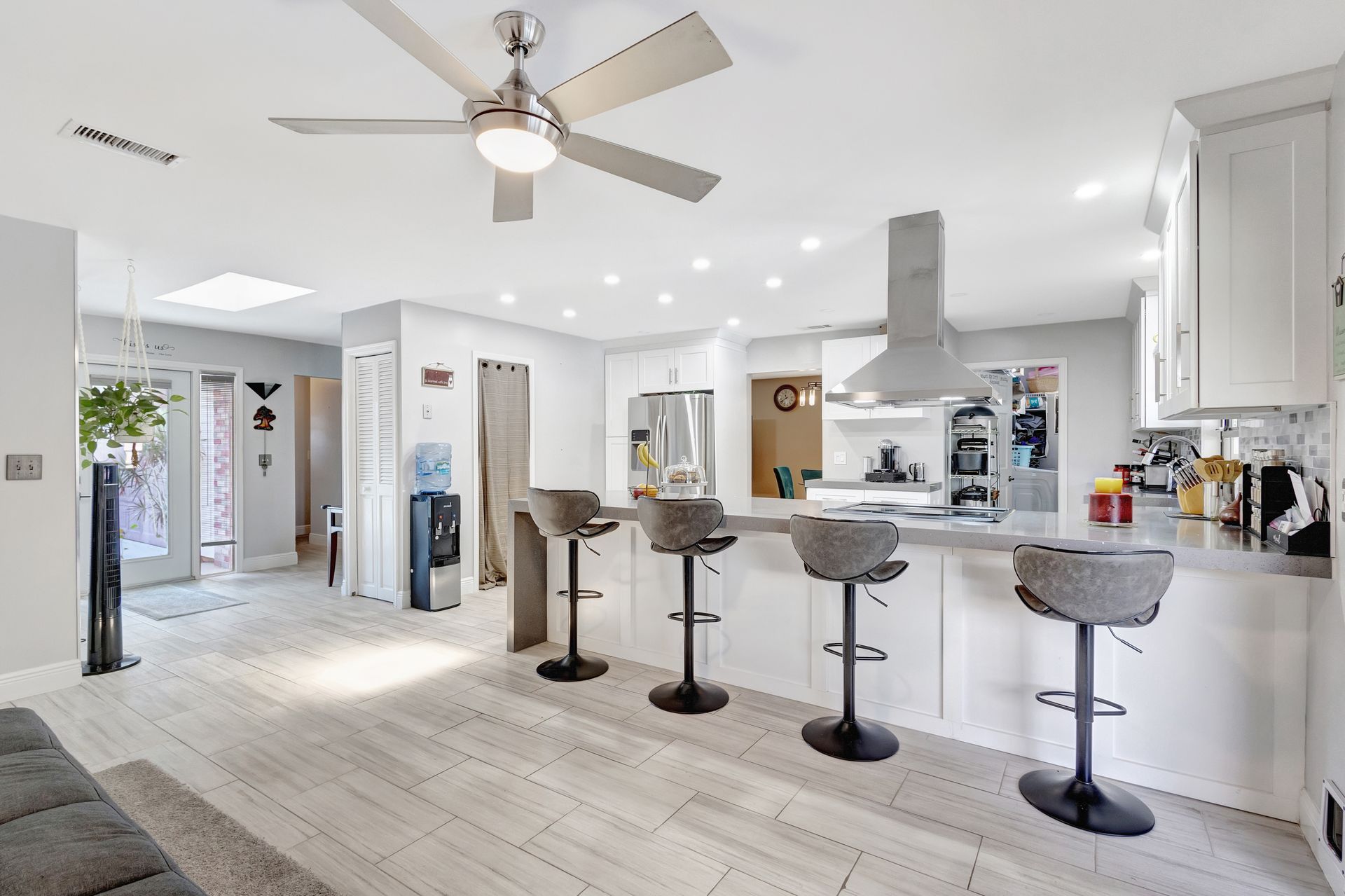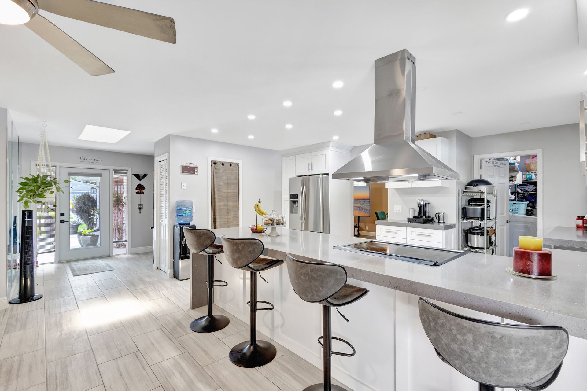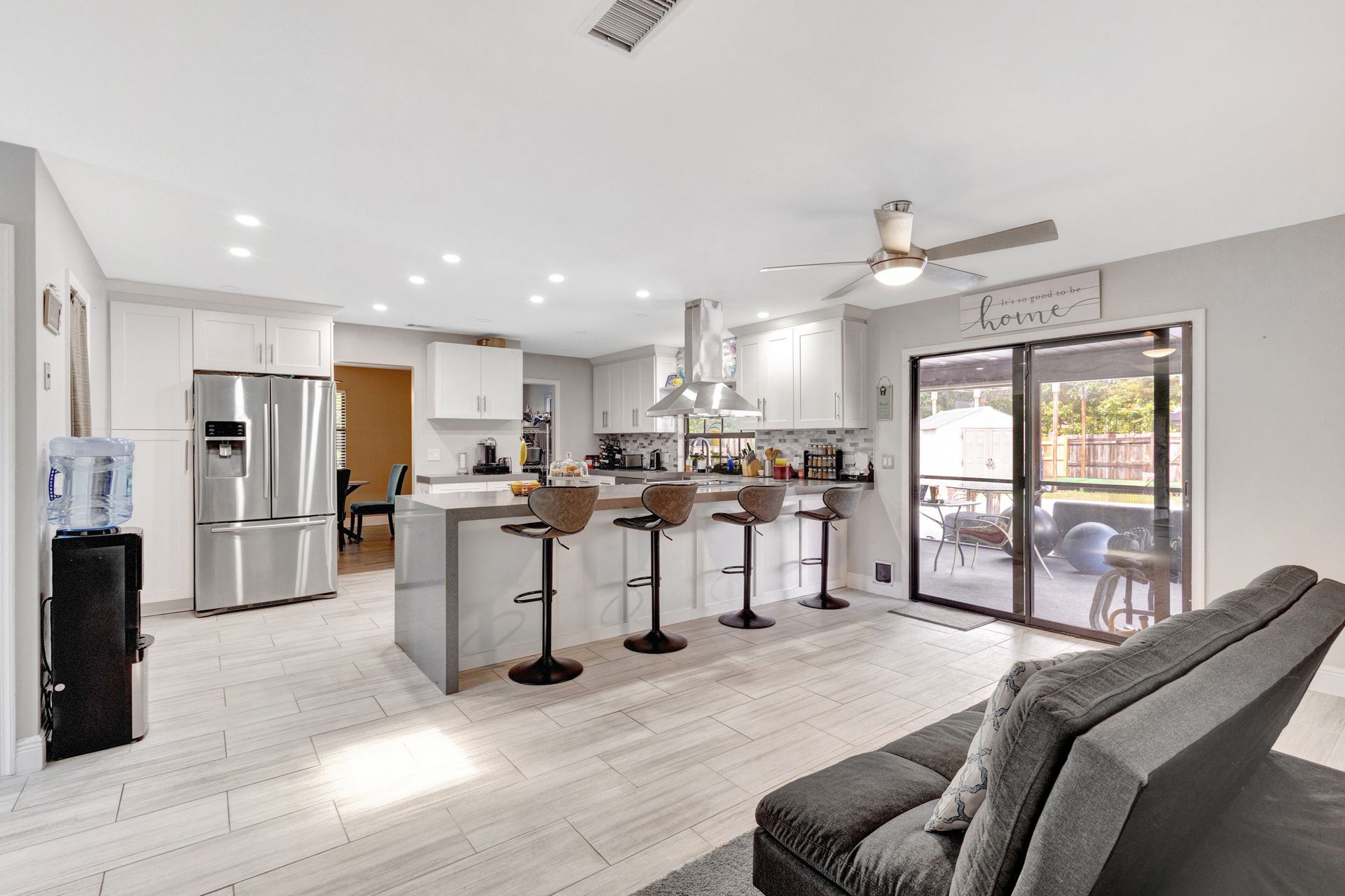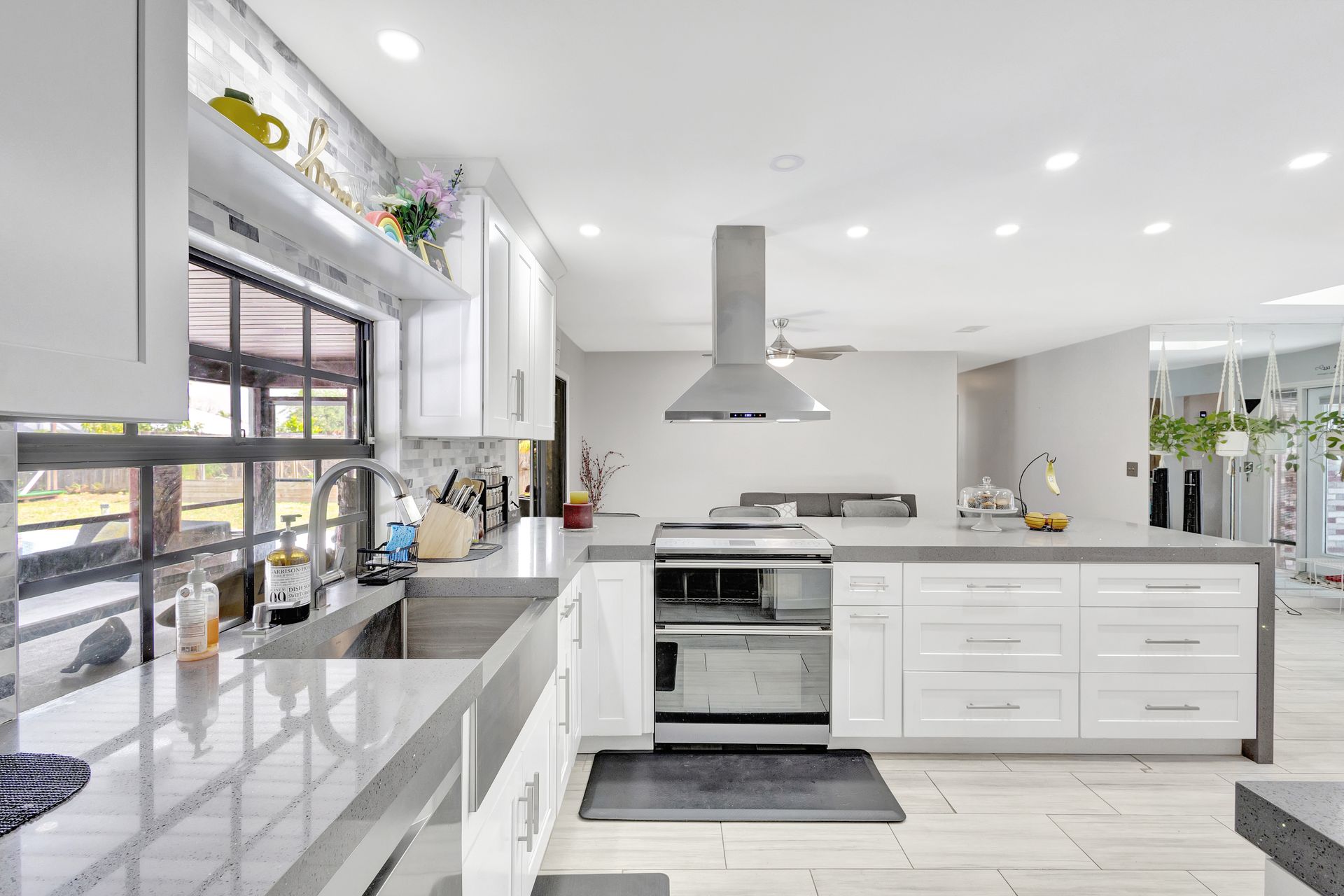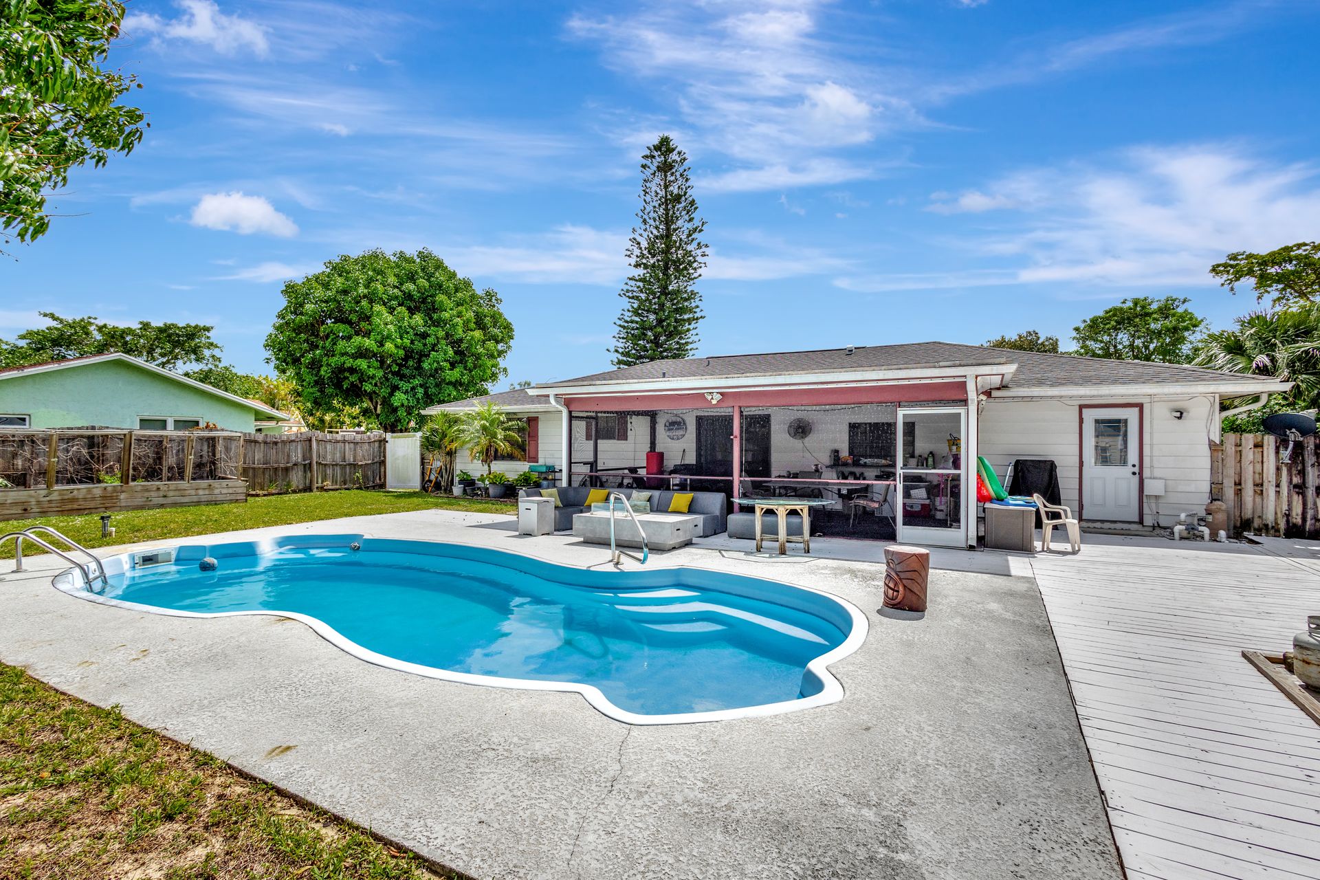 Welcome to this exquisite four-bedroom, two-bathroom family pool home, situated in one of the most desirable neighborhoods in the area. As you enter, you're greeted by a spacious open-plan layout and abundant natural light highlighting the elegant Bamboo laminate floors in the common area. The gourmet kitchen is a chef's dream, featuring stainless steel appliances, quartz countertops, and a large peninsula ideal for entertaining guests or preparing meals; the home is great for living or entertaining. The property's highlight is the beautiful backyard, featuring a secluded pool that provides the ideal space for relaxation and outdoor activities. The roof and water heater are six years old. HVAC is five years old. The pool pump is one year old. Solar panels for the entire home, a newer extended pool deck, the shed, and the batting cage are included!