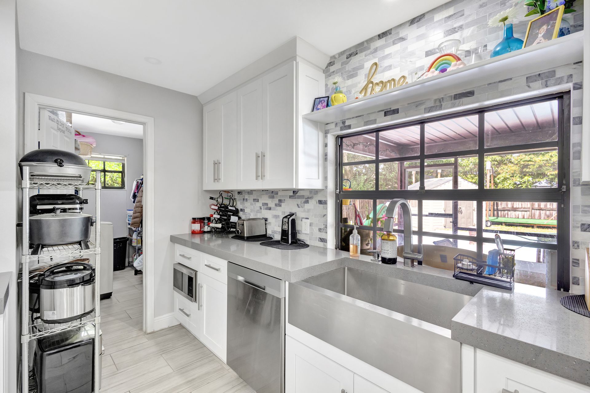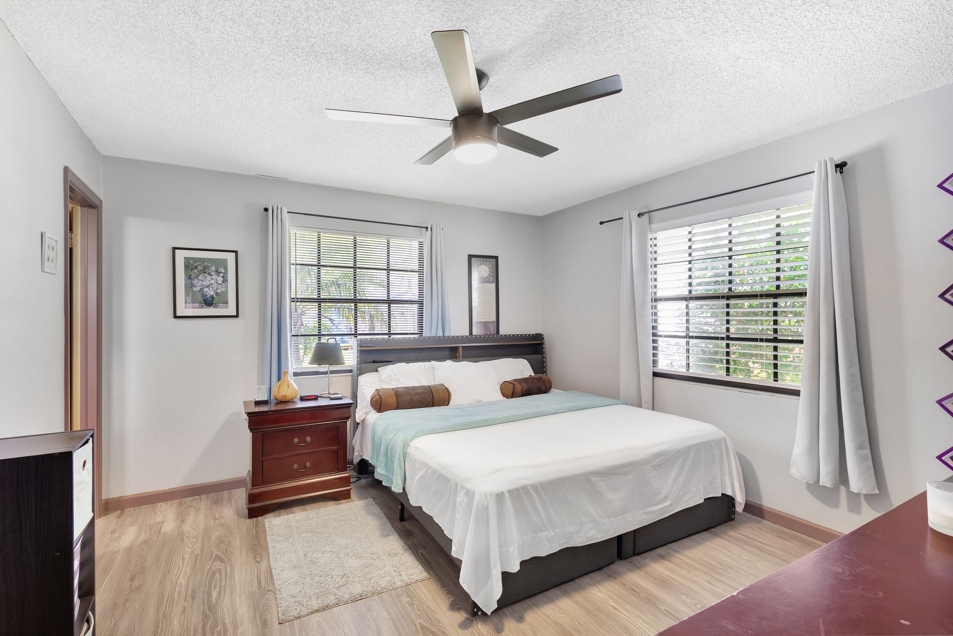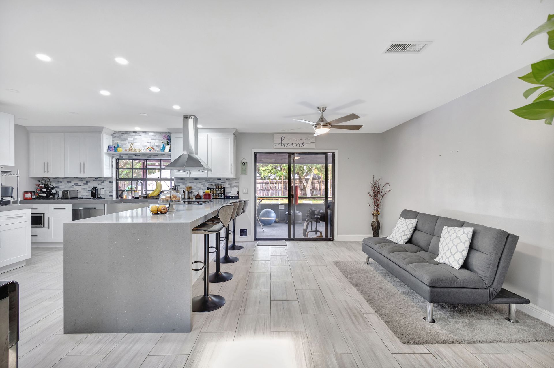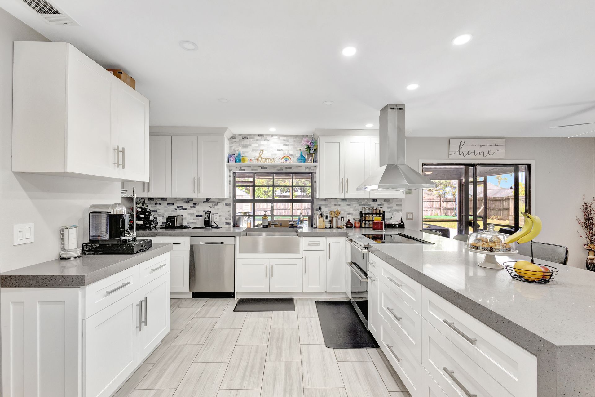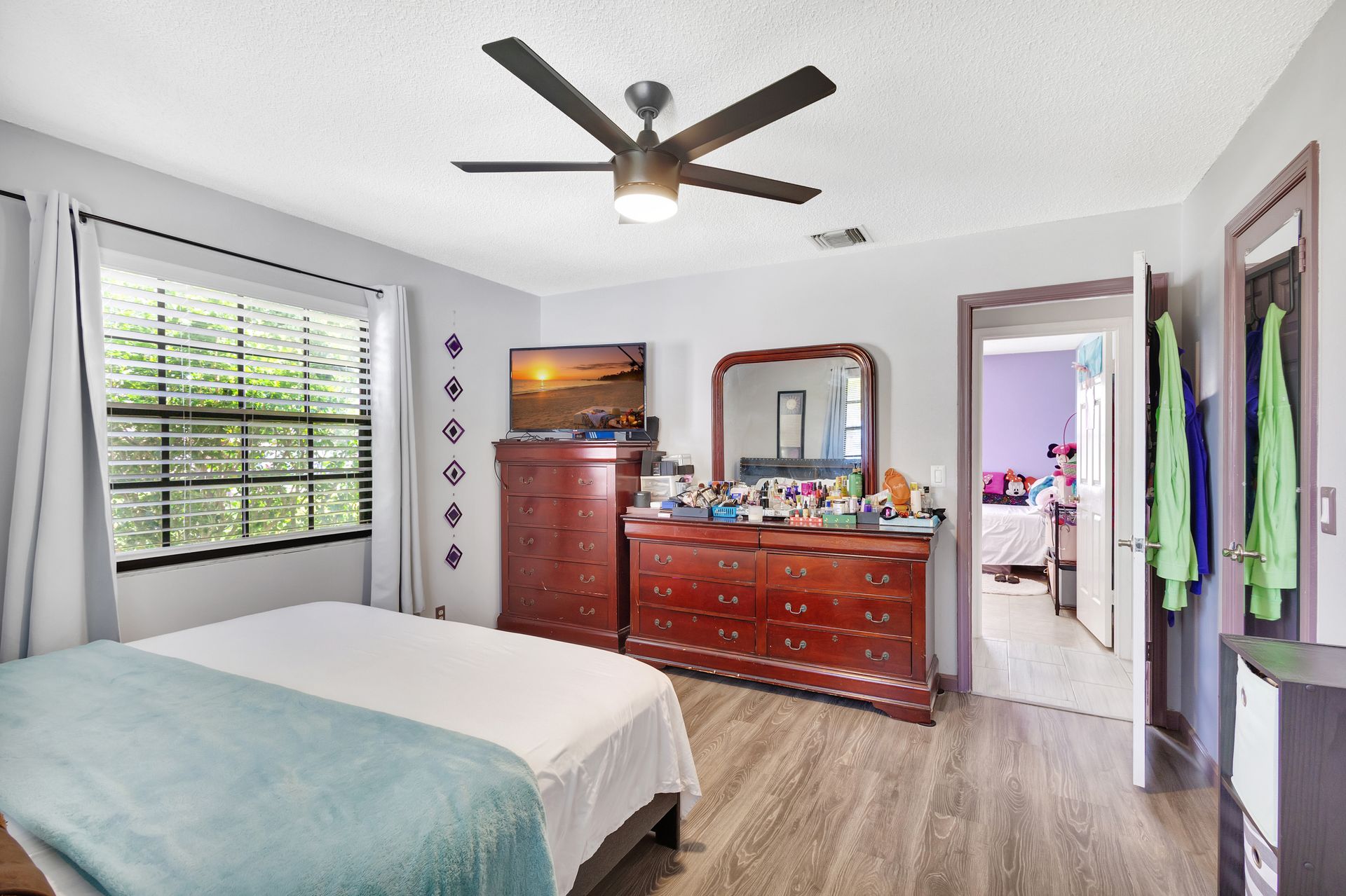Welcome to this exquisite four-bedroom, two-bathroom family pool home, situated in one of the most desirable neighborhoods in the area. As you enter, you're greeted by a spacious open-plan layout and abundant natural light highlighting the elegant Bamboo laminate floors in the common area. The gourmet kitchen is a chef's dream, featuring stainless steel appliances, quartz countertops, and a large peninsula ideal for entertaining guests or preparing meals; the home is great for living or entertaining. The property's highlight is the beautiful backyard, featuring a secluded pool that provides the ideal space for relaxation and outdoor activities. The roof and water heater are six years old. HVAC is five years old. The pool pump is one year old. Solar panels for the entire home, a newer extended pool deck, the shed, and the batting cage are included!