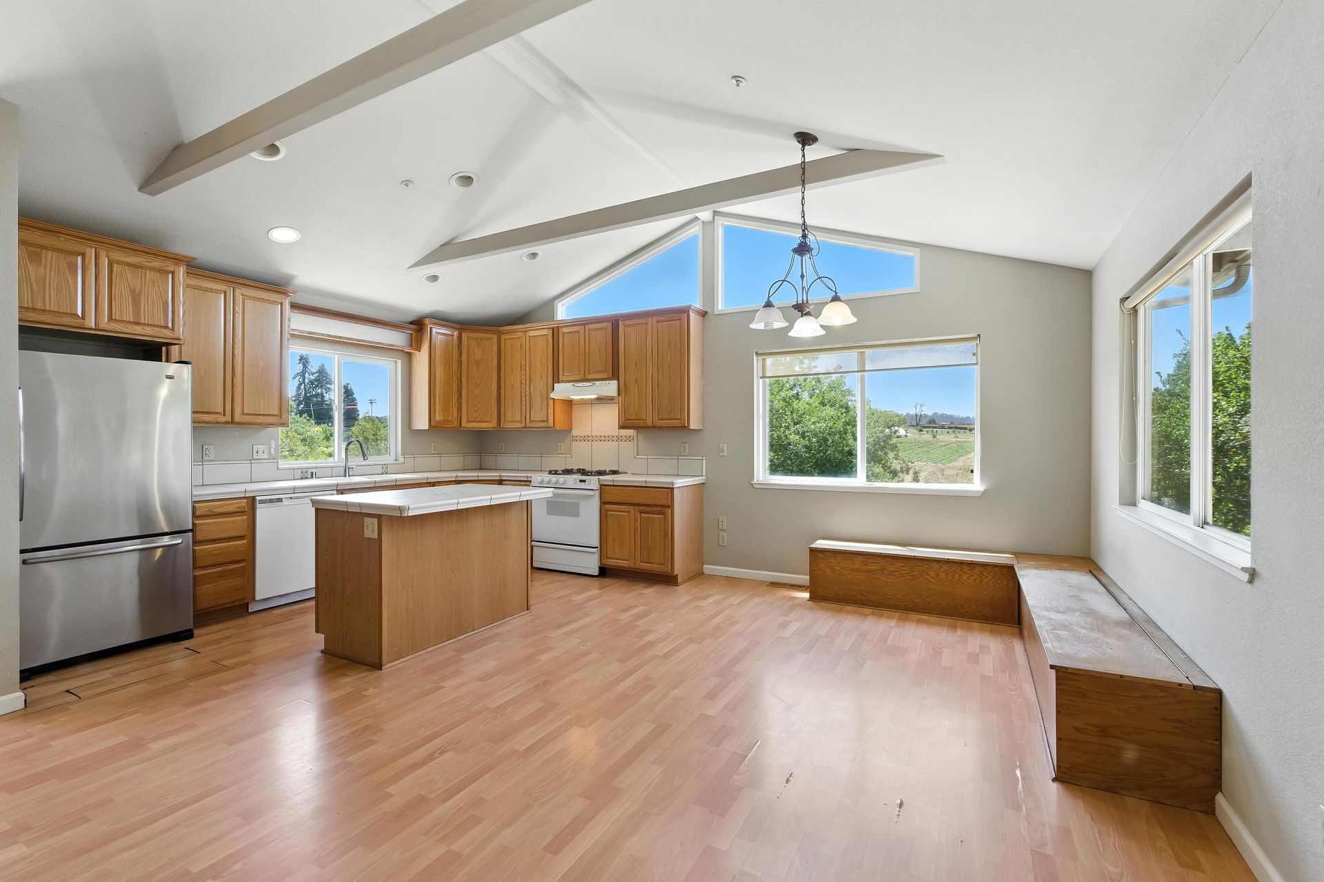 Enter inside to an inviting open floor plan with high-beamed ceilings that create a bright, airy atmosphere. The layout is ideal for modern living—whether you're hosting guests or enjoying peaceful nights at home.