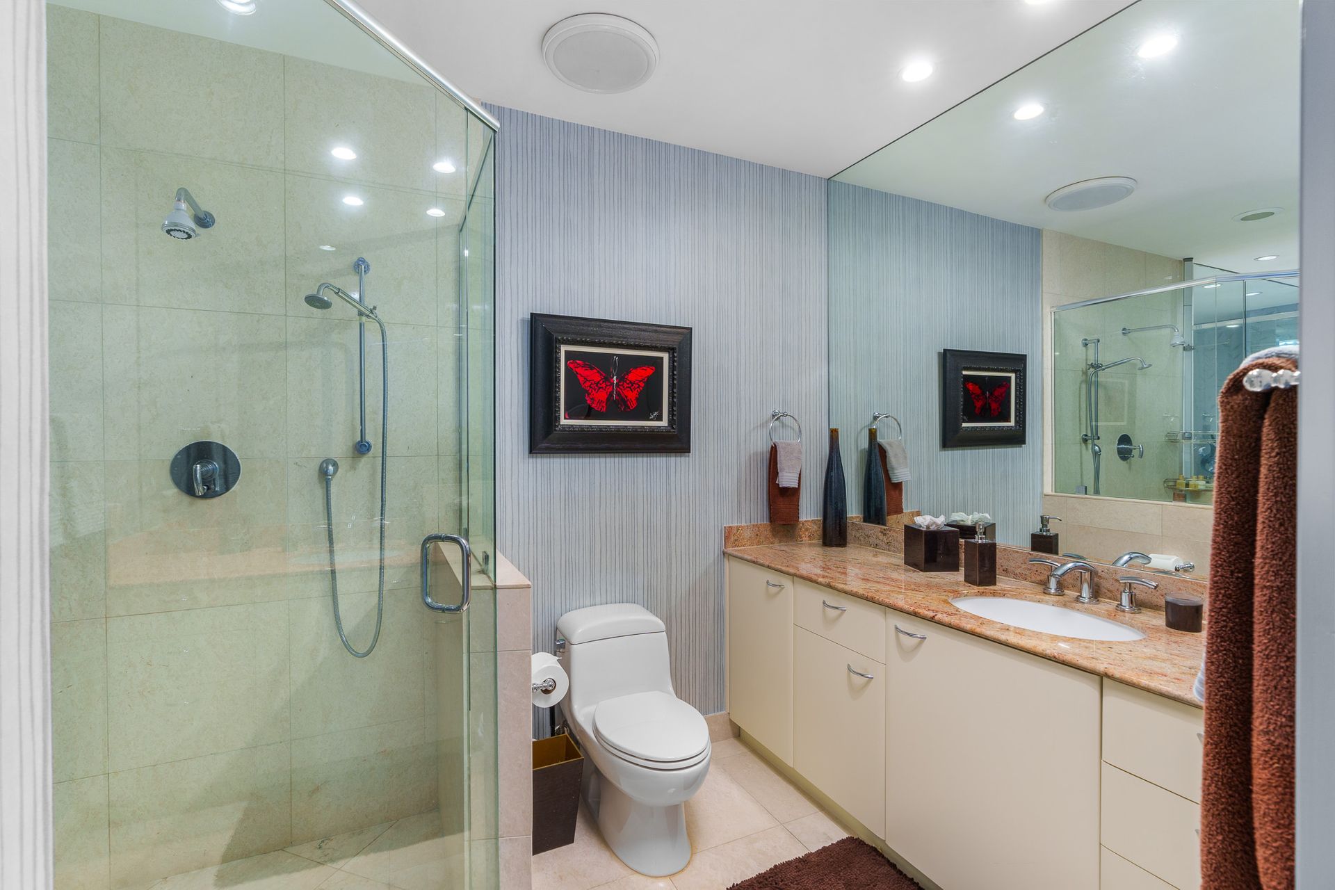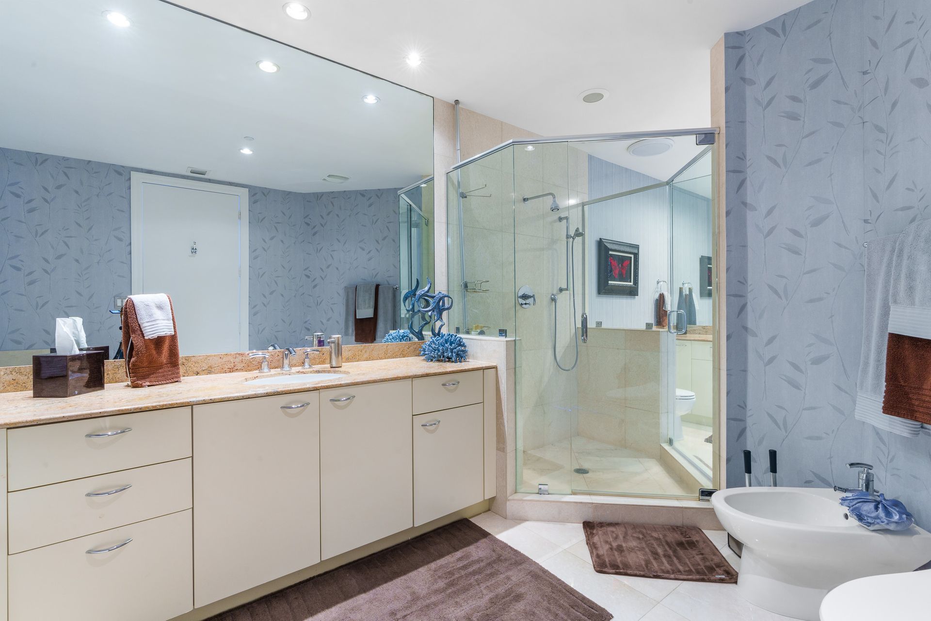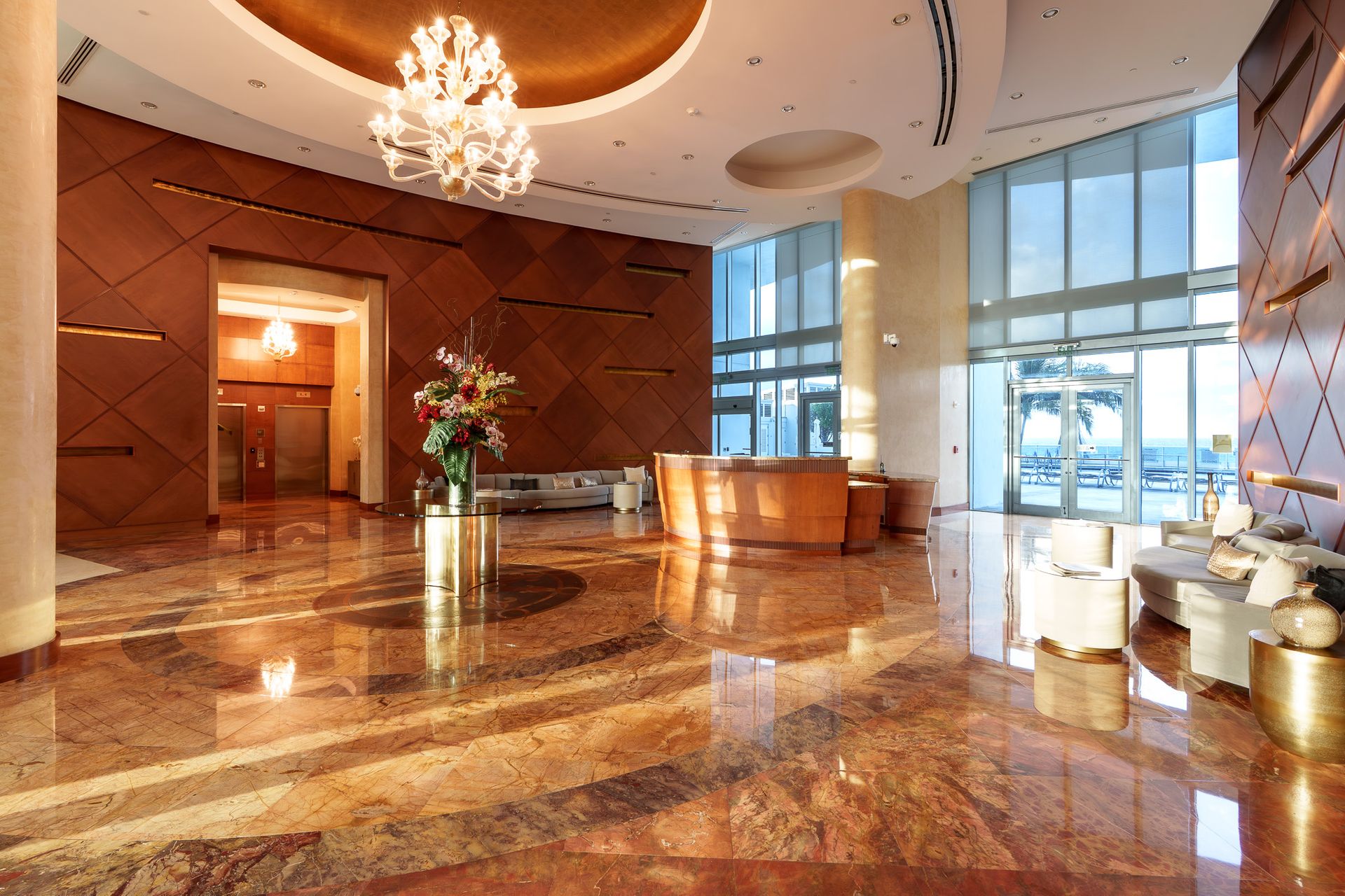 • Polished marble flooring & countertops