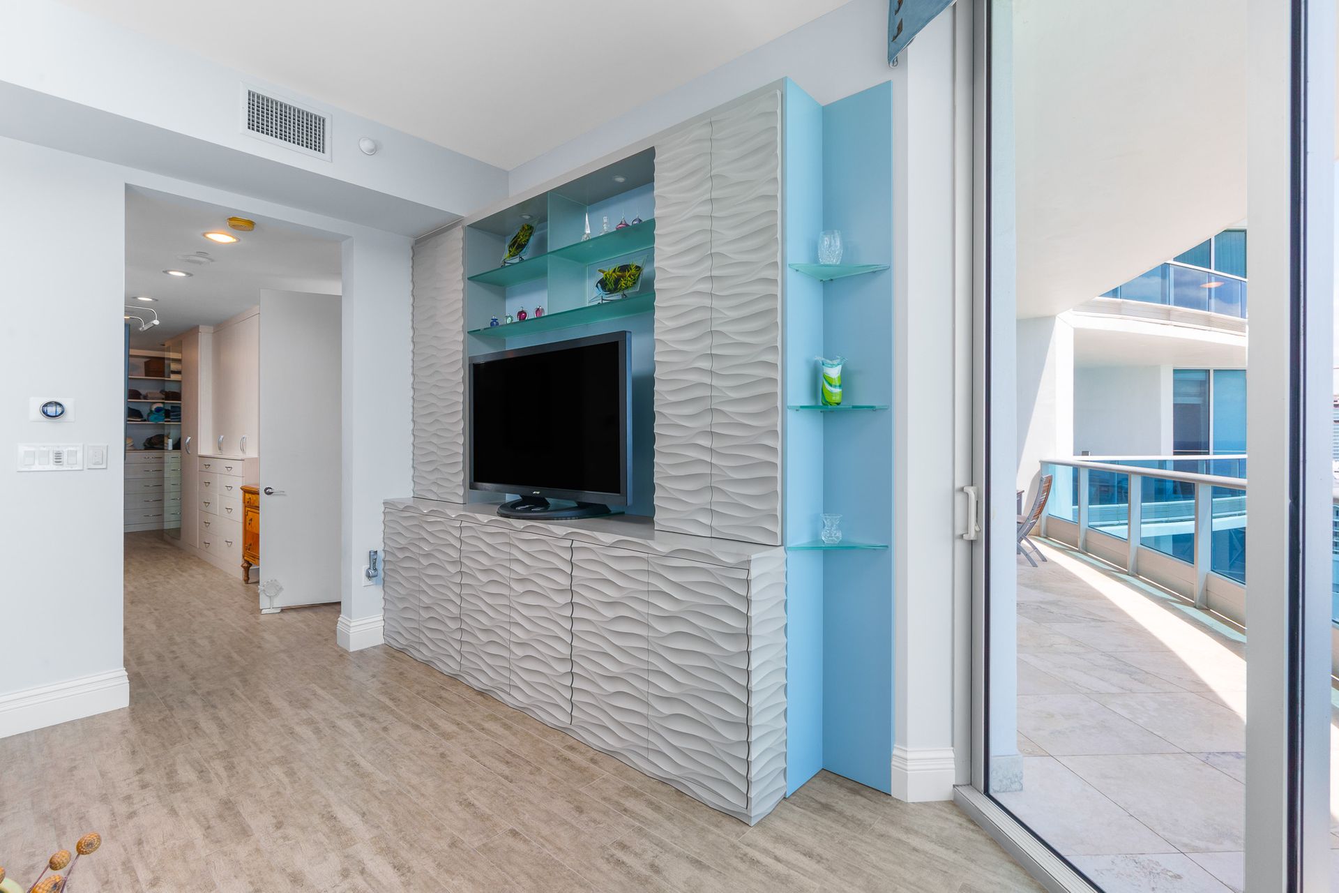 • Custom-built-in entertainment wall