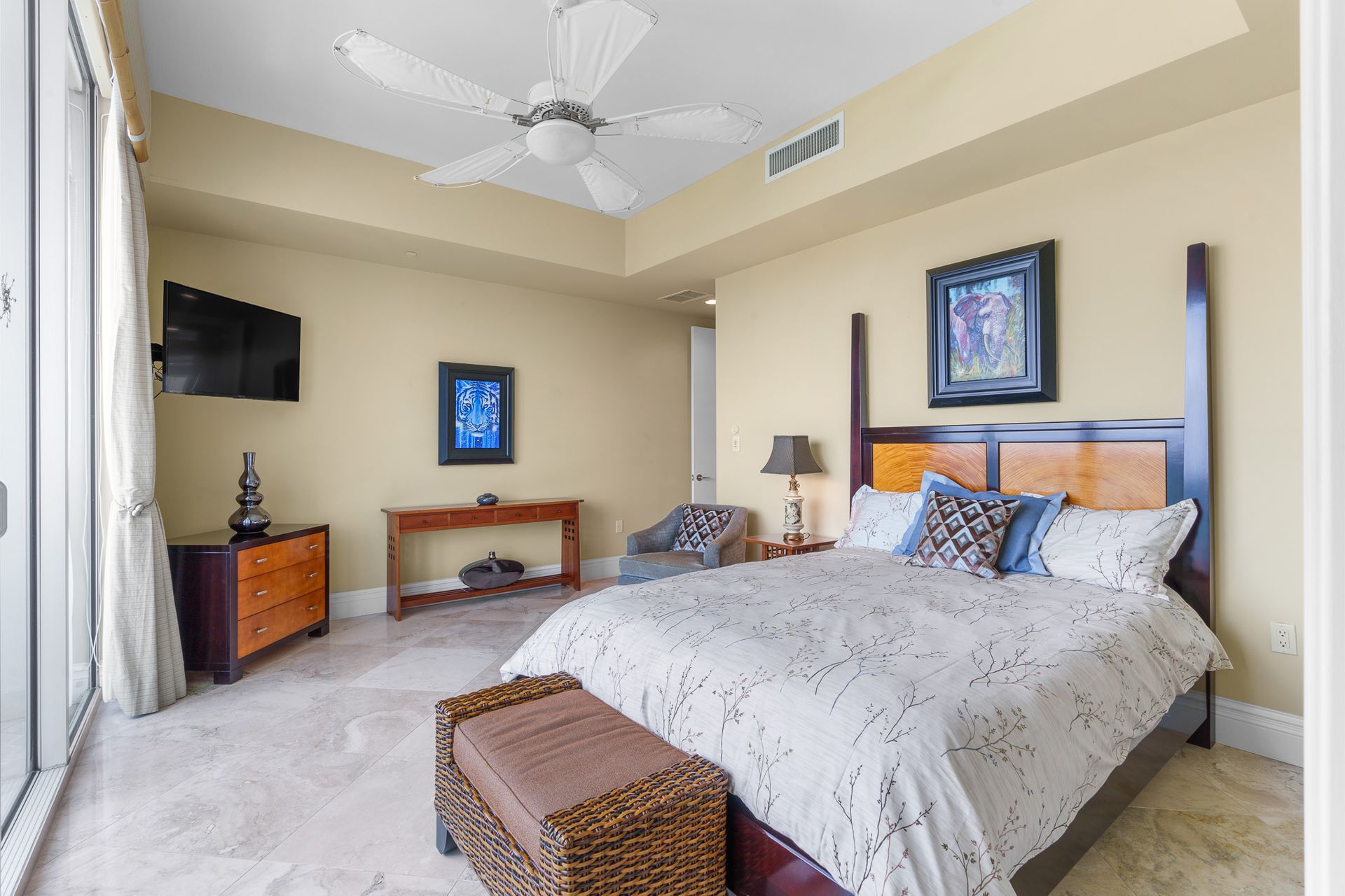 The expansive primary suite is a sanctuary, with a spa-inspired en-suite bath offering a Jacuzzi tub, walk-in shower, and a custom-designed walk-in closet. Every detail has been carefully curated to reflect sophistication and serenity.