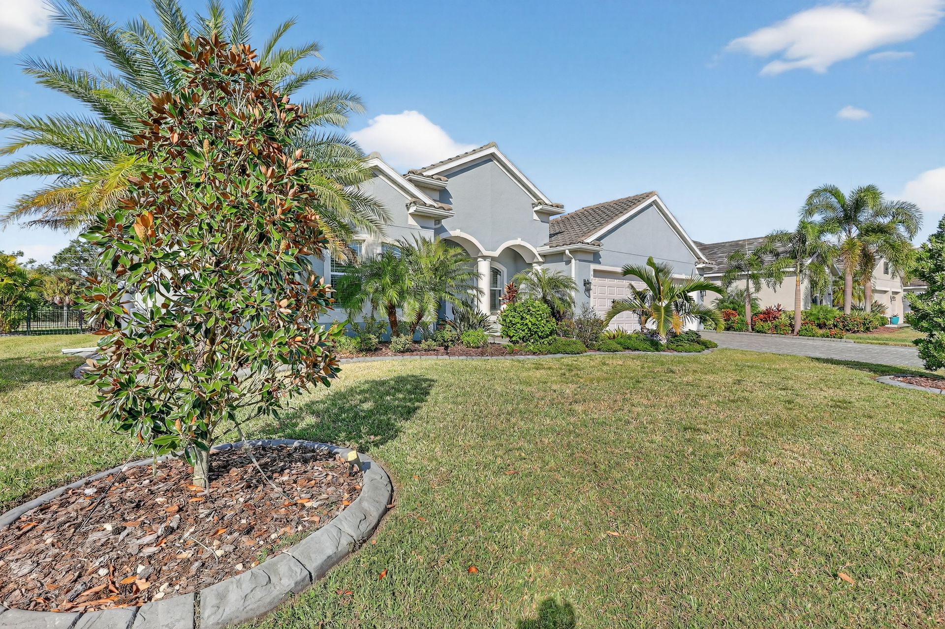 Triple sliders from the family room and bonus/media room flow to the screened lanai and heated saltwater pool—perfect for both entertaining and everyday relaxation. The large, fenced backyard, brick paver driveway, and tile roof elevate the curb appeal of this impressive home.