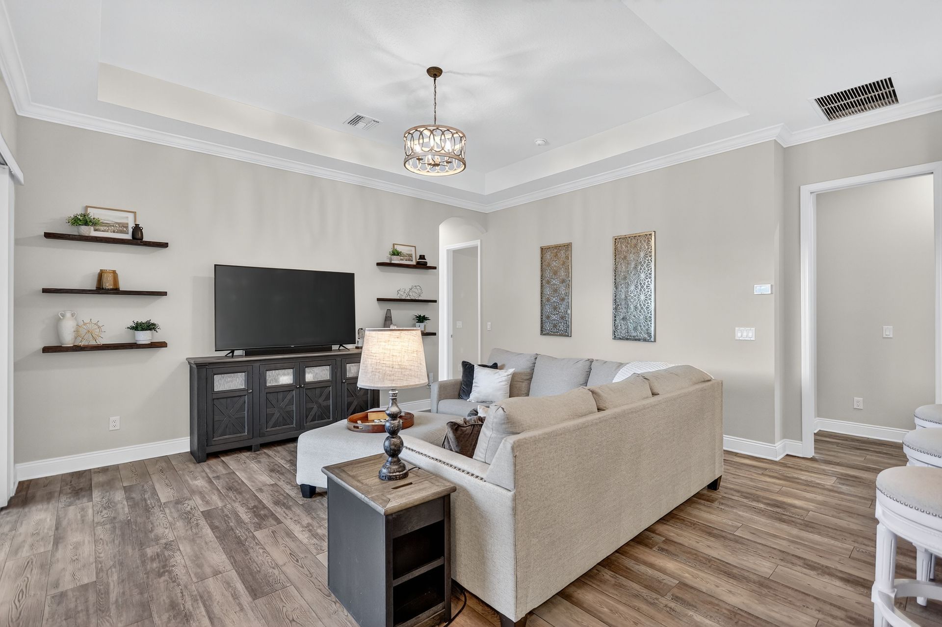 Head into effortless luxury and comfort in this stunning 4-bedroom, 3-bath home with office and bonus room, tucked inside the gated Reserve at Twin Rivers in Parrish, Florida. With approximately 3,275 square feet of beautifully designed space, this home blends comfort and sophistication in perfect measure. Luxury vinyl plank flooring, crown molding, and tray ceilings set an elegant tone throughout the light-filled, open layout.