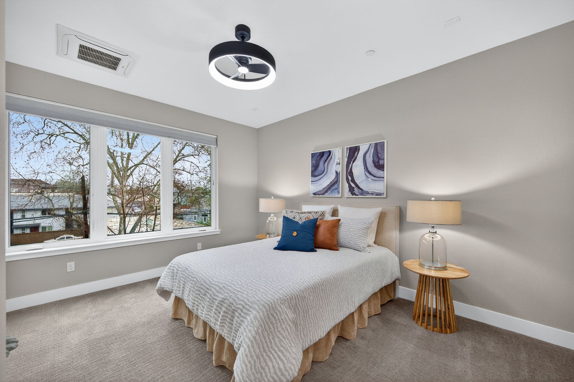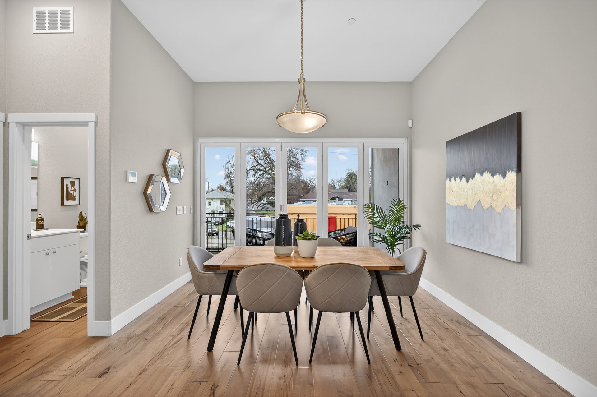 Exquisite living in Midtown Sacramento. This two (possible three) bedroom, three-and-one-half-bath townhome is sure to appeal to your senses. Light, bright, airy, and open is the order of the day. Ideal for work from home with a true office retreat replete with full bath on the main level. On the second floor you will find a chef's kitchen with upgraded appliances, ample storage, dining area, half-bath, living room, and a wonderful terrace with an electric rolling screen to turn this outdoor space in to another room in the house. Accordion doors from the dining area help to bring the outdoors indoors. All of this is under 11-foot ceilings with soaring windows. Third level is home to the primary suite with walk-in closet and ensuite bath. There is a guest bathroom and second bedroom, as well as stackable laundry unit. The private rooftop features an outdoor living space, ready to suit your needs. There are water and natural gas hookups up top to create your own oasis in the sky, with views of the surrounding neighborhood and downtown skyline. The oversize two-car garage features plenty of storage, Swisstrax flooring, and EV charger. Come enjoy all Midtown has to offer today!!!