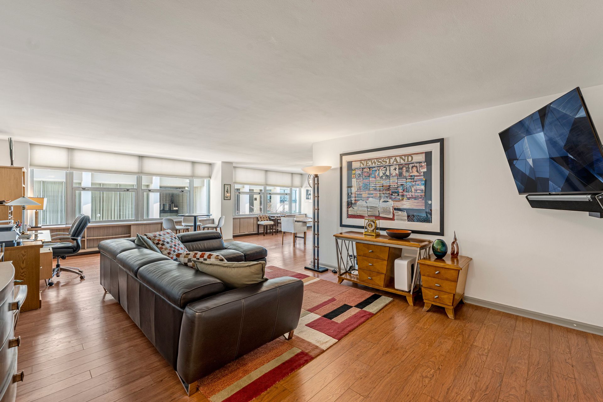 This beautifully updated 2000 sq ft Newport co-op lives like a ranch home just steps from Lake Michigan! Thoughtfully renovated throughout, this unit features an exceptionally spacious living/dining space with a private balcony overlooking Newport gardens and Lake Michigan. Open plan kitchen with custom cabinetry, granite countertops, and a huge walk-in pantry. Generous primary suite boasts a walk-in-closet and stunning en-suite bathroom with porcelain tile and quartz countertops. This fresh, modern, aesthetic is echoed in the hall bathroom. A large second bedroom with oversized closet completes the flexible floorplan. Building amenities include beautiful roof deck and patio, concierge service, professional security (including 24 hour garage staff), on-site management, and guest suite ($95 per night). Just steps from Milwaukee's top-tier dining, world-class museums, and the lakefront. Don't miss the opportunity to make this Russell Barr Williamson mid-century modern gem home! CASH ONLY. NO PETS. MUST BE OWNER OCCUPIED.