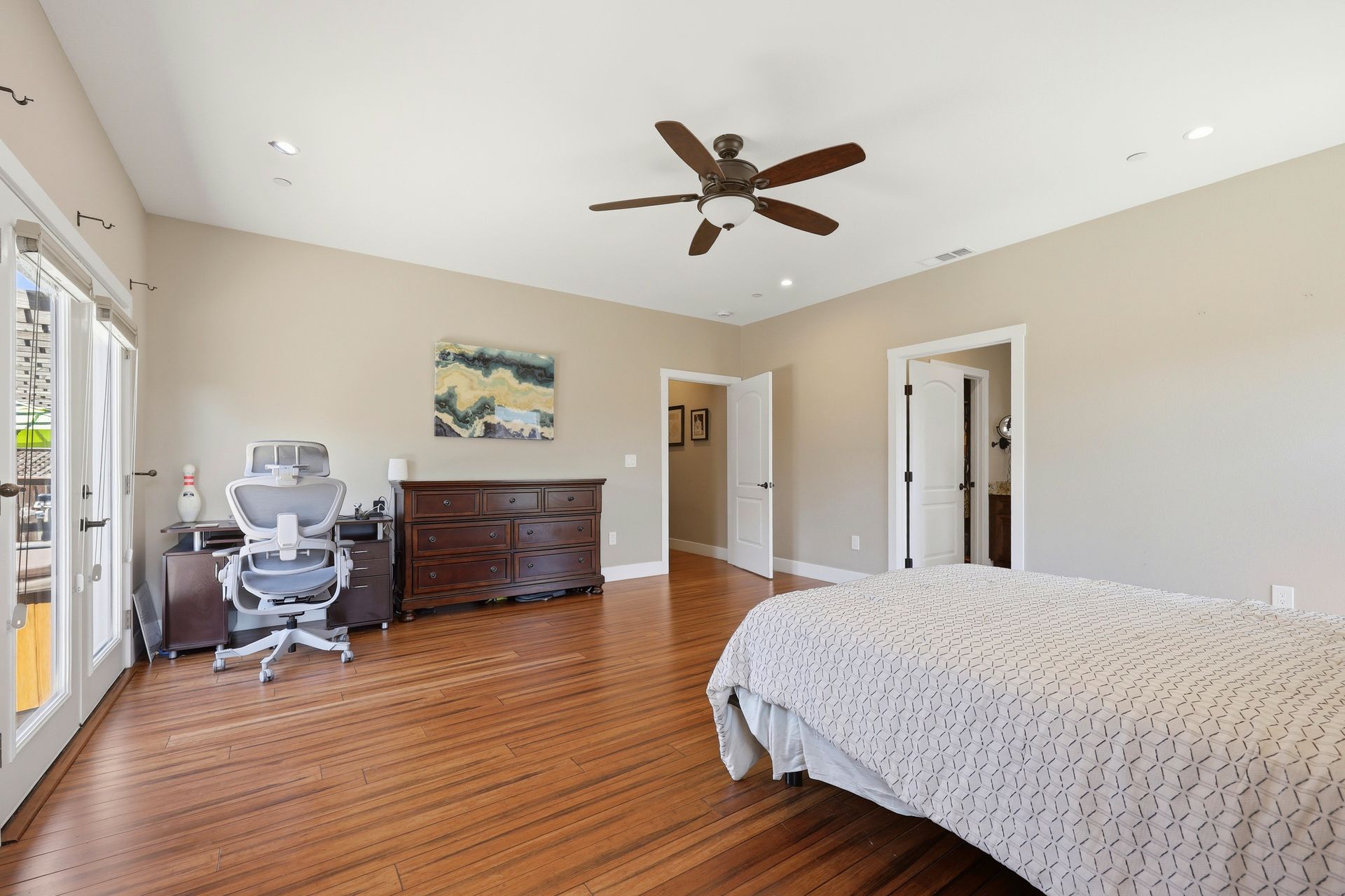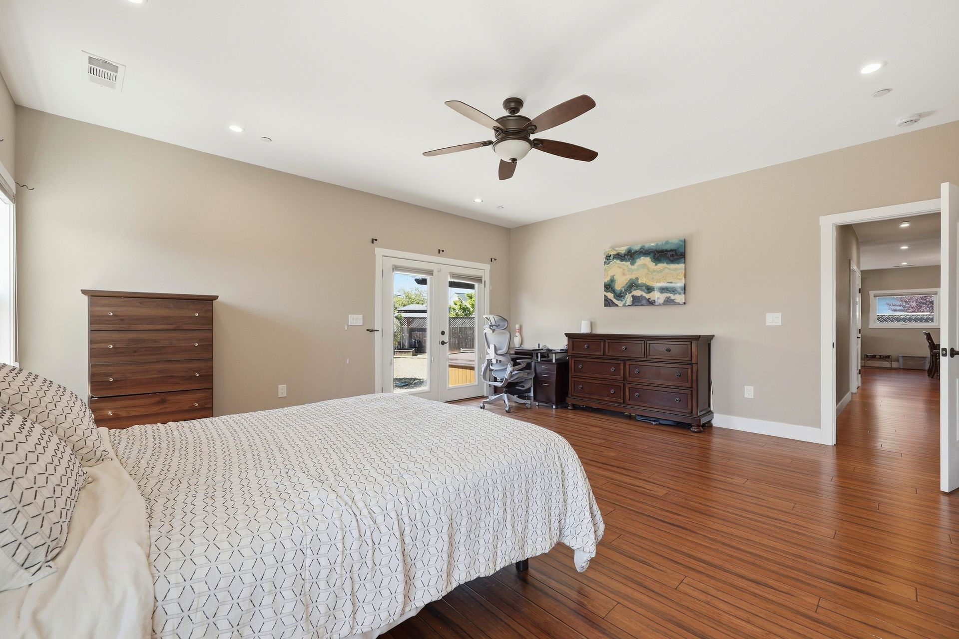 The expansive primary suite offers a private retreat with a walk-in shower and oversized walk-in closet. Thoughtful upgrades include ceiling fans, solar with backup battery, and off-street RV or boat parking. Outside, enjoy a large, low-maintenance yard with cement patios and raised garden beds—perfect for relaxing or hosting. Ideally located near shopping, restaurants, and major commute routes, with quick access to downtown Santa Rosa and Charles Schulz Airport. This is modern Wine Country living at its finest.