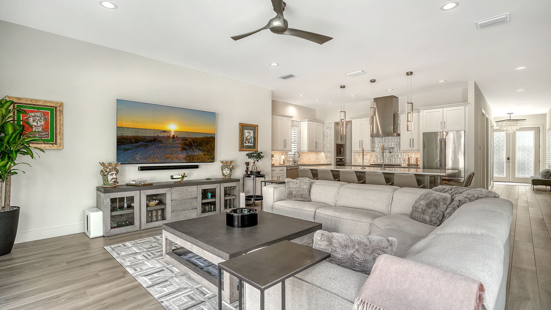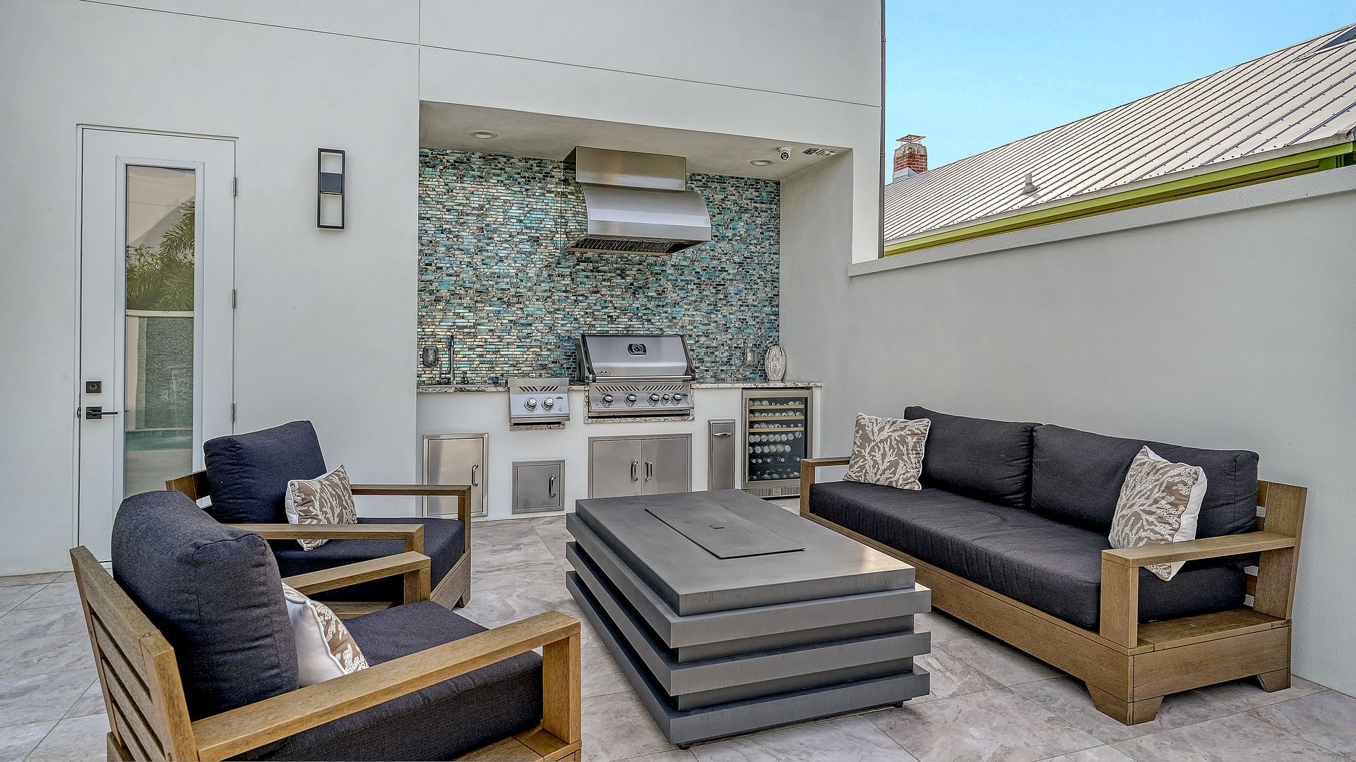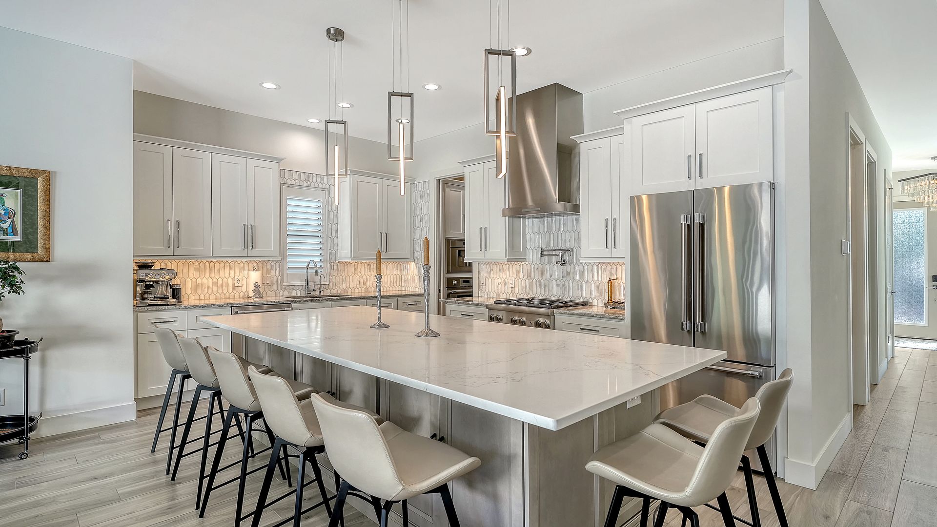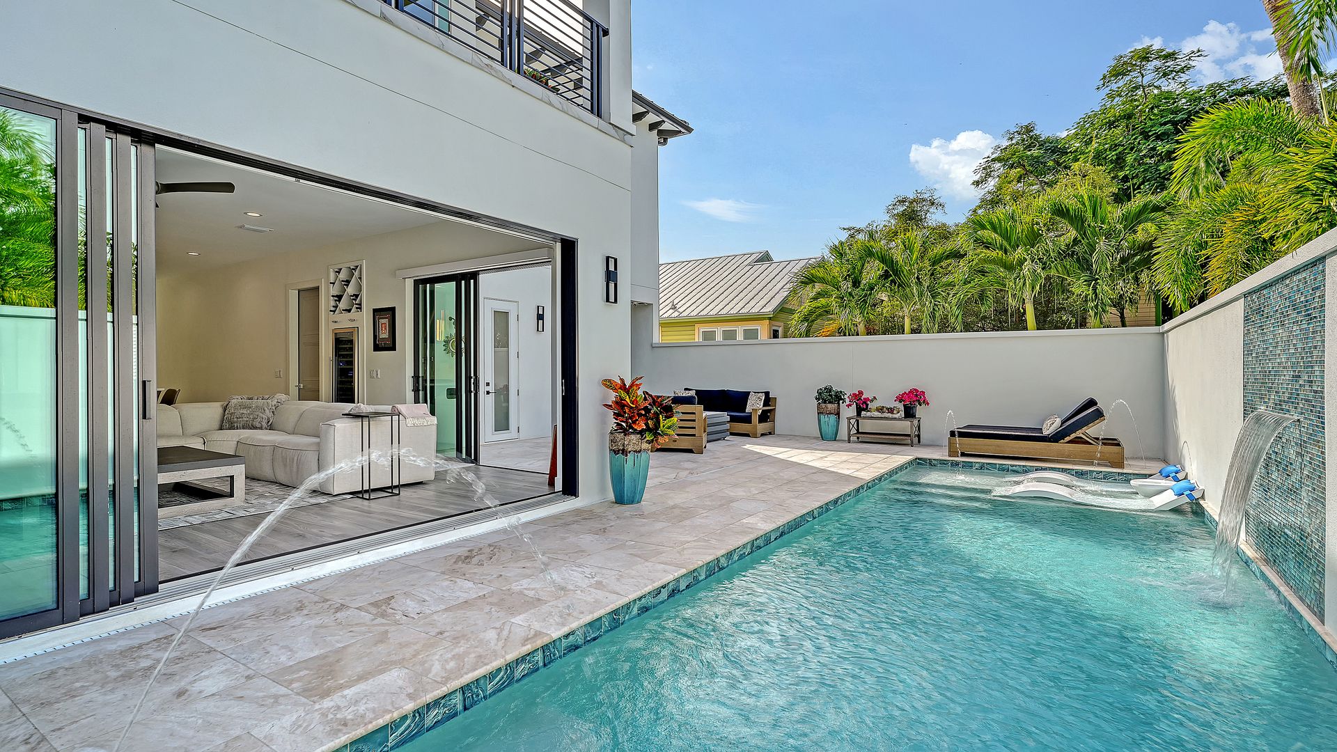This beautifully designed residence completed in 2024 offers four bedrooms and three and one-half baths, blending elegance with functionality. The open-concept kitchen and living area showcase premium Thermador appliances, complemented by a walk-in pantry with built-in coffee maker and a large island. Step outside to your private oasis featuring heated saltwater pool and outdoor kitchen, all set within textured stucco walls. Enjoy added conveniences such as a backup generator, & RO water system. Constructed entirely of block with cat 5 hurricane windows, stucco exterior and durable metal roof, quartz countertops throughout and a two-car garage with epoxy floor. The outdoor spaces are equally impressive, with a marble pool deck and two balconies—one front and one rear. Additional amenities include a one-half bath off the pool deck. The primary suite offers an ensuite bath and a walk-in closet. The two upstairs bedrooms are separated by a dual bath with a walk-in shower with bench seat. The first floor bedroom can be used as an office with an attached full bath. All of this located in the heart of downtown Sarasota within close distance to shops, restaurants and Bayfront Park/Marina.