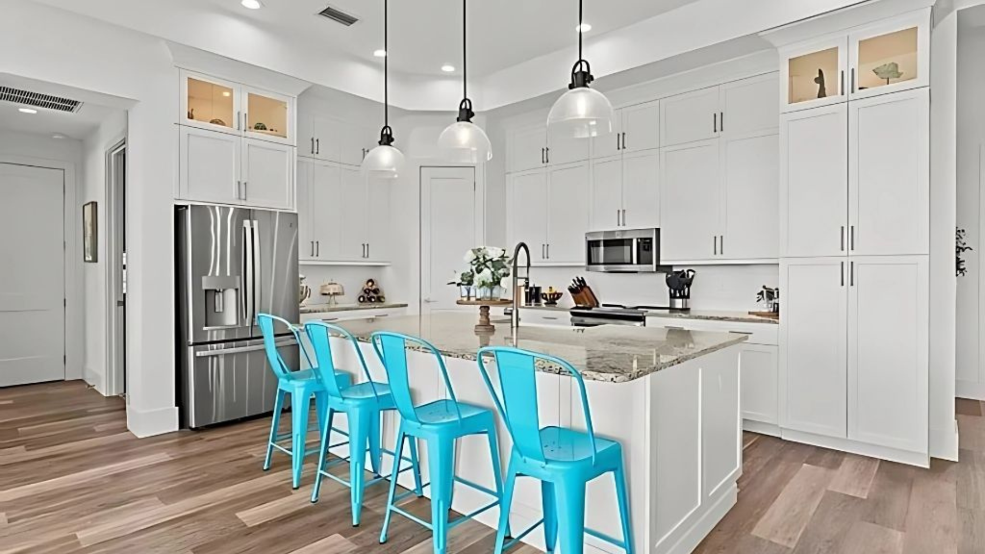 This three-bedroom, three-bathroom house sits on approximately 0.58 acres of land. The home offers approximately 2,469 square feet of living space.