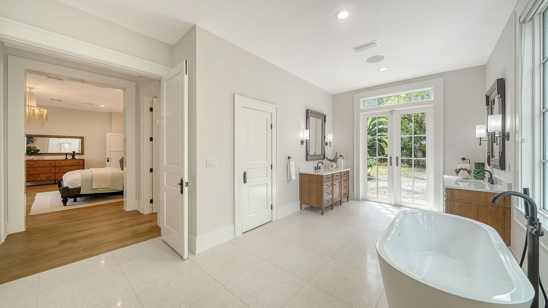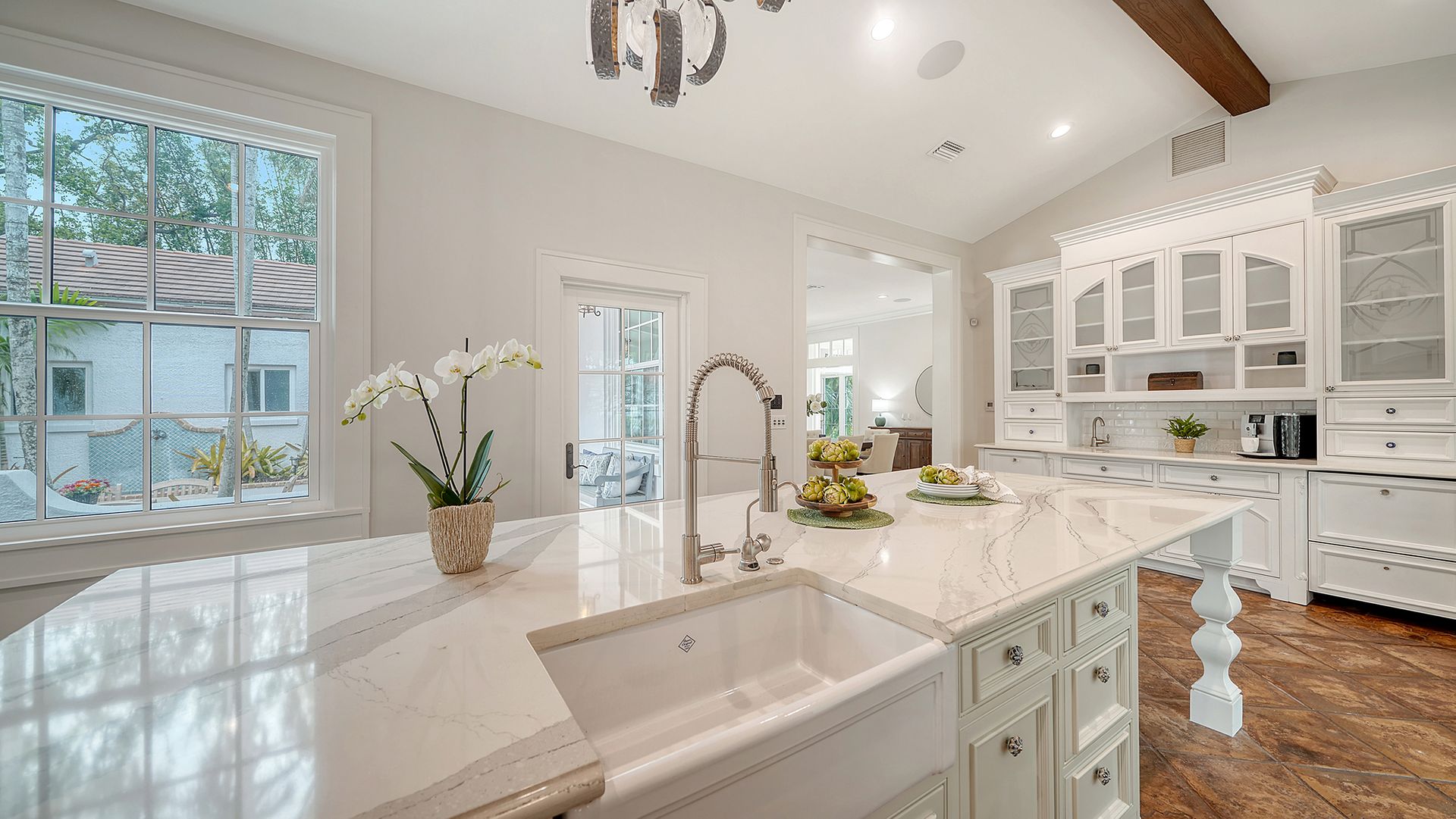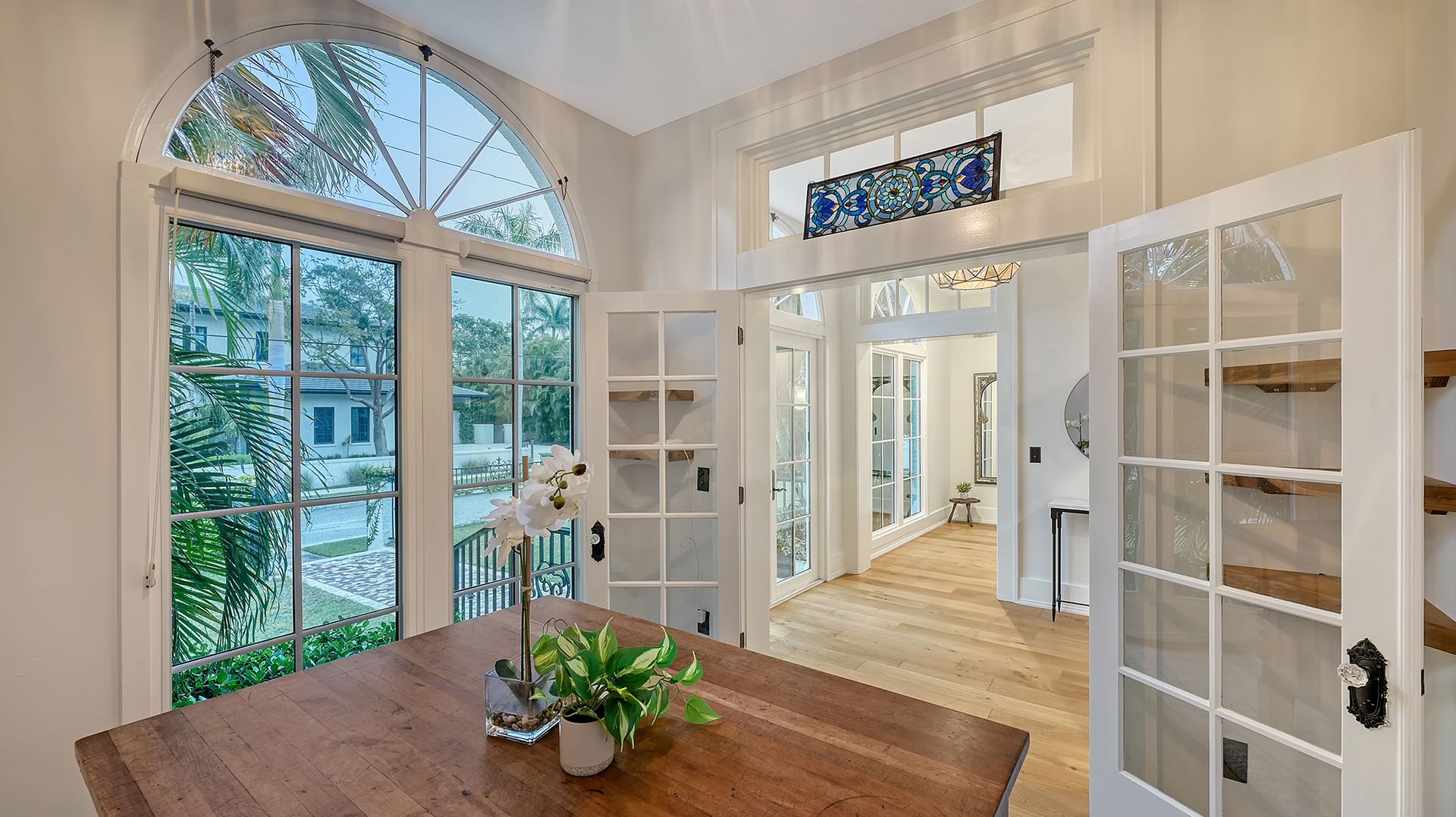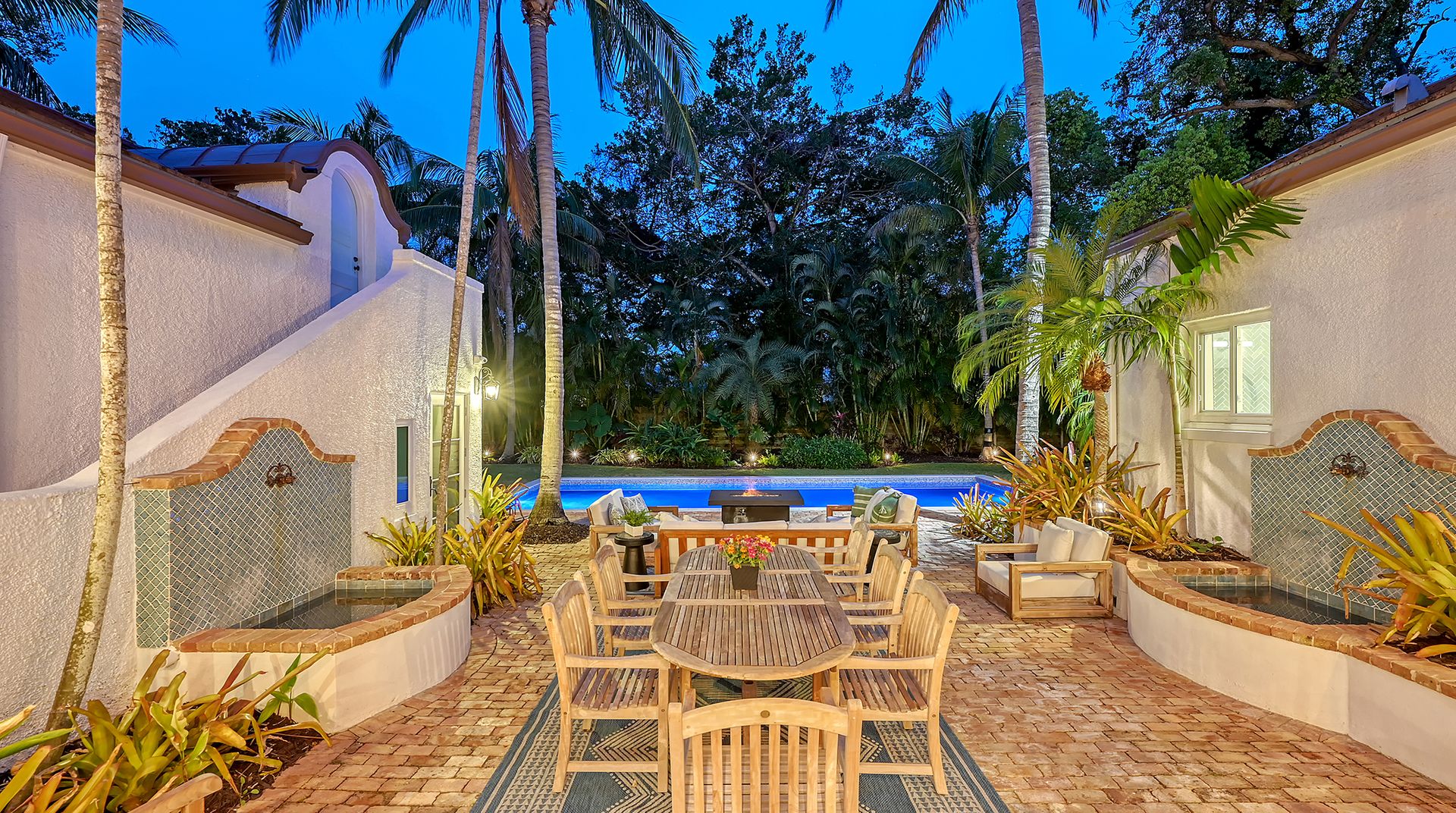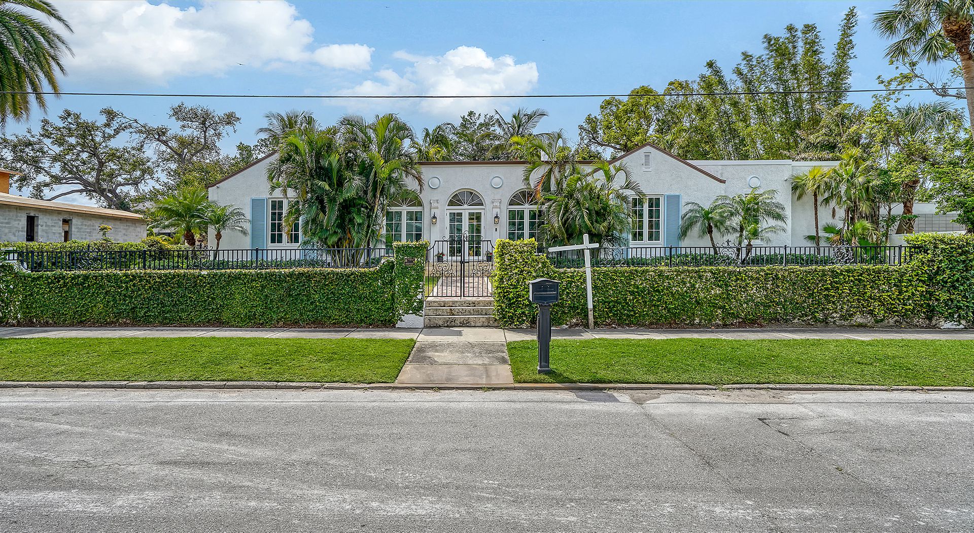 This stunning, newly renovated 4-bedroom, 4.5-bath Mediterranean Revival estate, designed by Sarasota's renowned first architect, Alex Browning, seamlessly blends timeless elegance with modern luxury. Nestled on a lush, oversized lot of just under 20,000 square feet, this home offers privacy, tranquility, and exceptional craftsmanship. Boasting 10-foot ceilings and 9-foot French doors throughout, the home is bathed in natural light, highlighting the newly installed French oak hardwood floors. The chef’s kitchen is a dream, featuring exposed beams, a quartz center island, and a professional AGA Legacy 44-inch 6-burner gas range, perfect for preparing gourmet meals. Oversized Primary Bedroom leads into the newly renovated Primary Bath offering a spa-like experience, complete with a massive walk-in steam shower, a freestanding tub, and designer finishes. Each of the 3 Guest Bedrooms are spacious and en-suite, ensuring privacy and comfort for all. The estate-sized completely fenced, lushly landscaped and private backyard area includes vintage fountains, a partially covered courtyard perfect for entertaining and an oversized pool. With updated electrical, PVC plumbing, and impact glass windows/doors, this home is as functional as it is beautiful. Located just steps away from shopping and dining in the desirable Southside Village and minutes away from vibrant downtown Sarasota, this home offers both convenience and sophistication in one of Sarasota’s most sought-after areas.