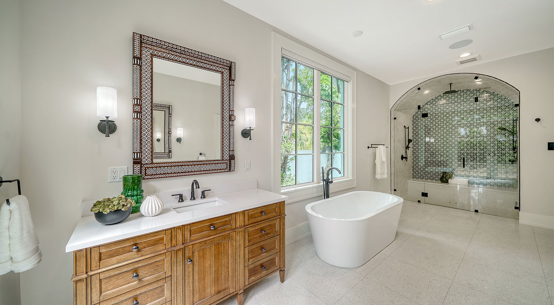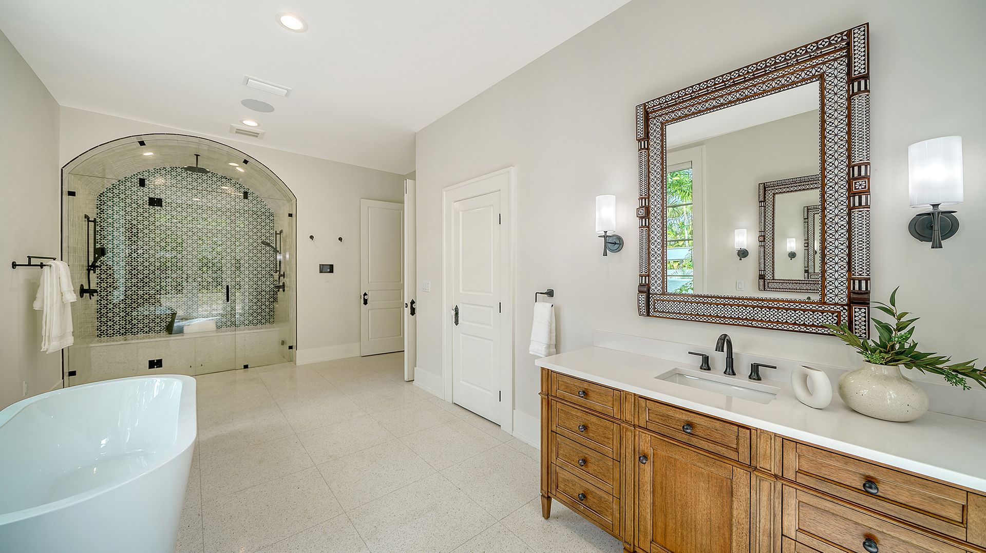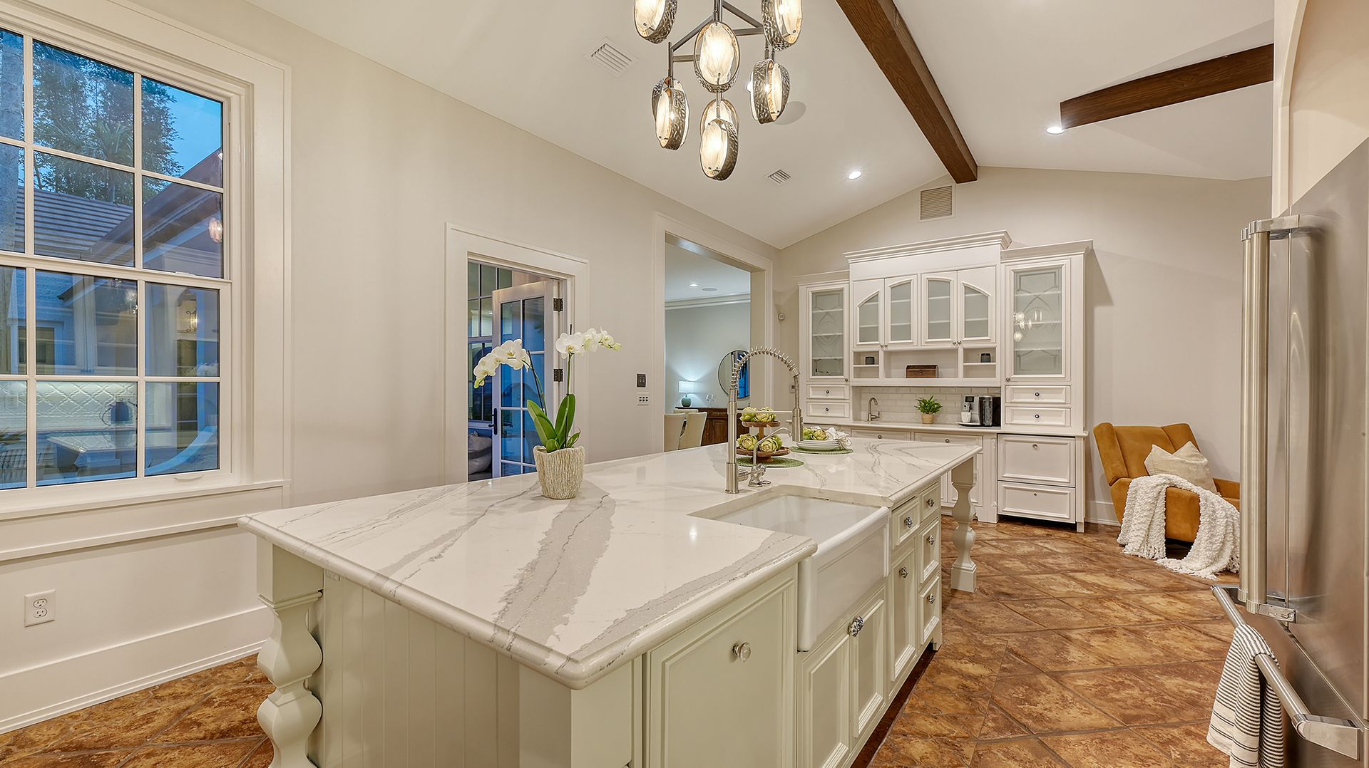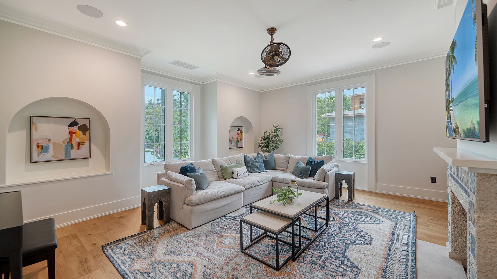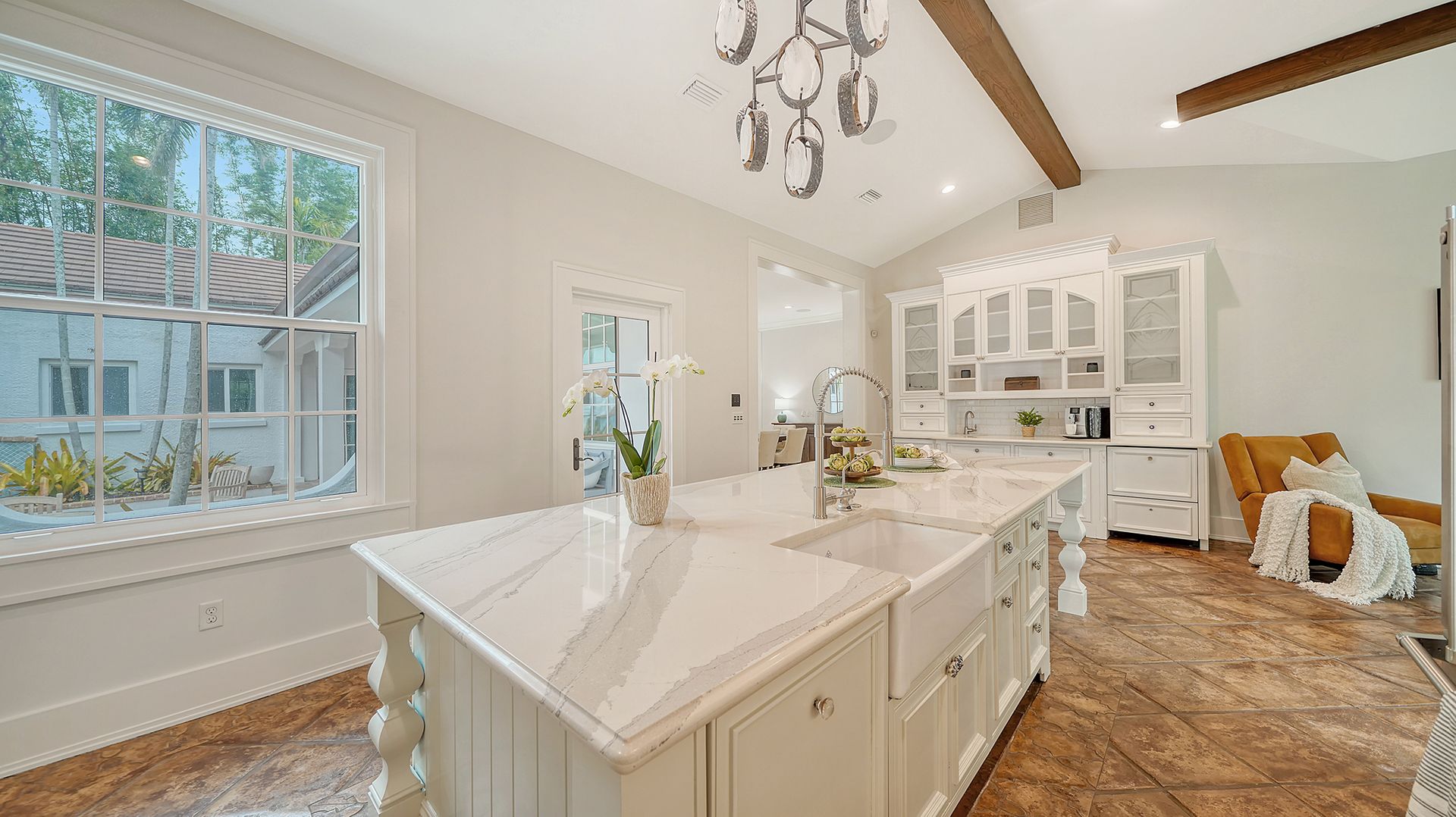 This stunning, newly renovated 4-bedroom, 4.5-bath Mediterranean Revival estate, designed by Sarasota's renowned first architect, Alex Browning, seamlessly blends timeless elegance with modern luxury. Nestled on a lush, oversized lot of just under 20,000 square feet, this home offers privacy, tranquility, and exceptional craftsmanship. Boasting 10-foot ceilings and 9-foot French doors throughout, the home is bathed in natural light, highlighting the newly installed French oak hardwood floors. The chef’s kitchen is a dream, featuring exposed beams, a quartz center island, and a professional AGA Legacy 44-inch 6-burner gas range, perfect for preparing gourmet meals. Oversized Primary Bedroom leads into the newly renovated Primary Bath offering a spa-like experience, complete with a massive walk-in steam shower, a freestanding tub, and designer finishes. Each of the 3 Guest Bedrooms are spacious and en-suite, ensuring privacy and comfort for all. The estate-sized completely fenced, lushly landscaped and private backyard area includes vintage fountains, a partially covered courtyard perfect for entertaining and an oversized pool. With updated electrical, PVC plumbing, and impact glass windows/doors, this home is as functional as it is beautiful. Located just steps away from shopping and dining in the desirable Southside Village and minutes away from vibrant downtown Sarasota, this home offers both convenience and sophistication in one of Sarasota’s most sought-after areas.