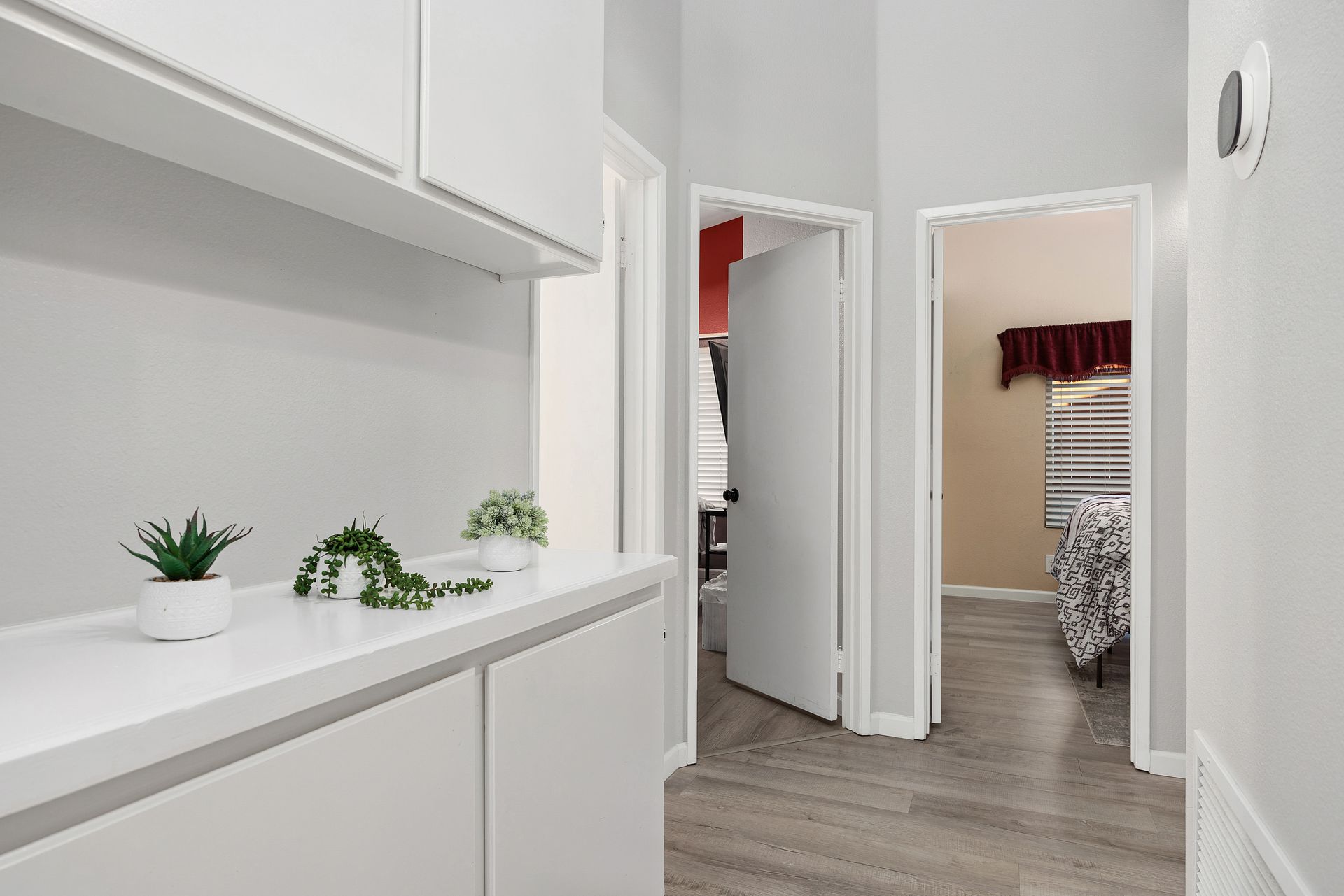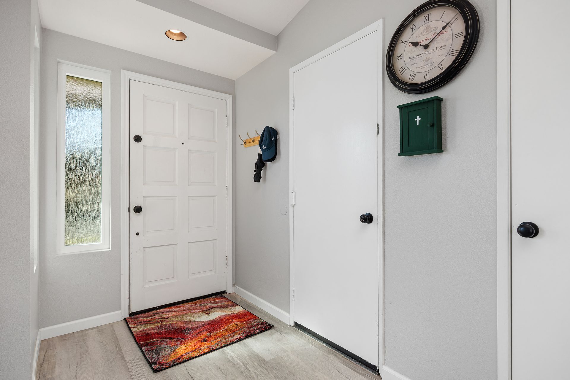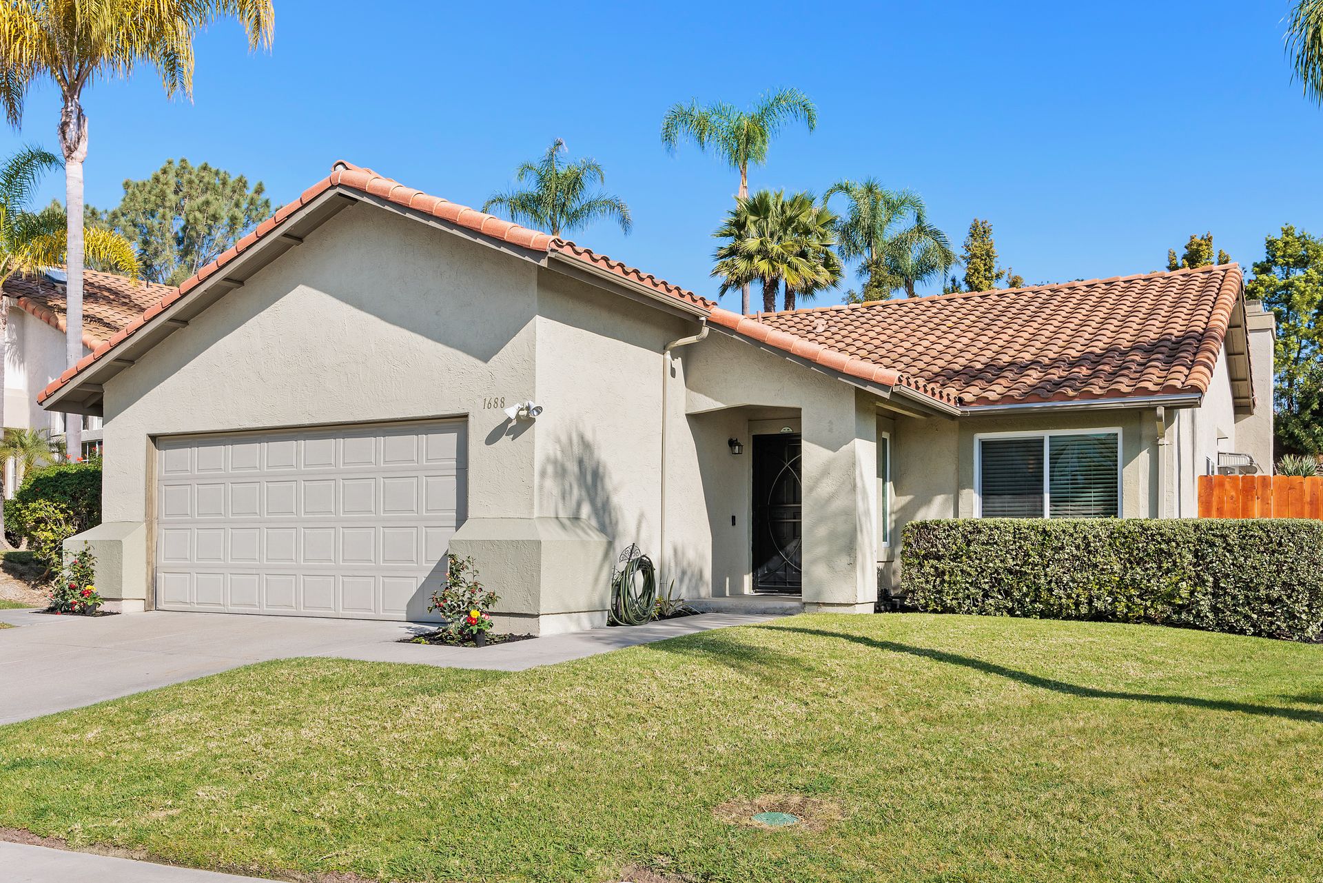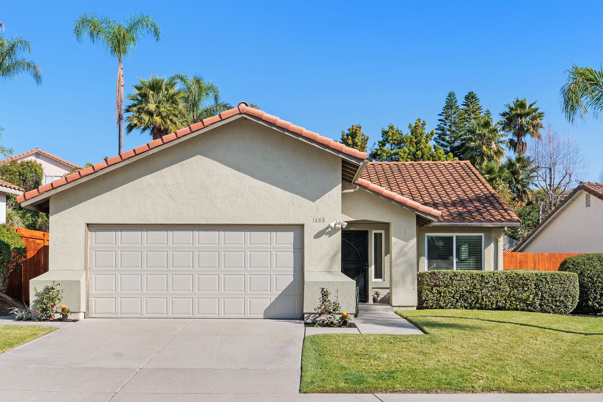 This home has been meticulously upgraded throughout with designer choices and finishes, including kitchen & bath remodels. The living room and dining areas are generously sized, featuring 18-foot vaulted ceilings that create an open and airy atmosphere. Warm paint colors enhance the inviting feel of these spaces, while large windows flood the rooms with natural light, making the home bright and welcoming. The family room (being used as a dining area) also boasts a vaulted ceiling and is anchored by a welcoming fireplace adorned with tile, providing both style and warmth. This space seamlessly connects to the kitchen making it ideal for relaxation and gatherings. The spacious, remodeled kitchen is both stylish and highly functional, offering plenty of space for preparing meals and hosting gatherings. Thoughtfully designed, it features an abundance of custom cabinetry with pull outs and soft close features, a double oven, recessed lighting, under cabinet lighting, a large quartz island with pendant lighting and generous counter space to accommodate all your culinary needs and entertaining aspirations. The primary retreat offers exceptional privacy, thoughtfully positioned away from the secondary bedrooms to ensure a peaceful and quiet environment. A large sliding glass door provides direct access to the tranquil and inviting backyard, seamlessly blending indoor comfort with outdoor serenity. This backyard is notably larger than most in the area, offering plenty of room for entertainment, relaxation, or the potential addition of a pool or expanding the home, if desired. The two-car garage offers a generous amount of storage space, providing plenty of room to keep belongings organized, store seasonal items, or accommodate recreational equipment.