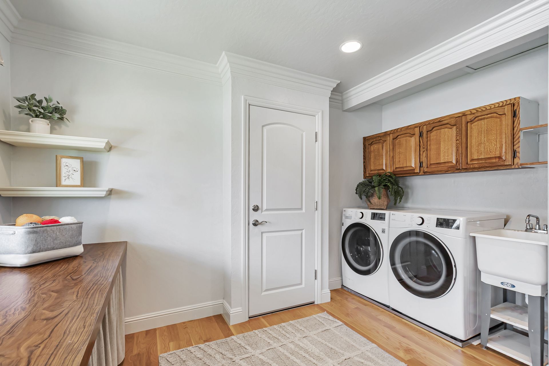 Recent upgrades include full copper re piping throughout the home and a newly installed water line from the meter to the house. Dual-pane windows, fresh interior and exterior paint, and a newly installed driveway enhance both comfort and curb appeal. Inside, you'll find stunning hardwood flooring, custom cabinetry with soft-close doors and drawers, elegant countertops, and modern appliances. A custom sliding glass door opens to an extra-large deck, ideal for entertaining. Additional features include a dedicated in-house laundry room, forced air heating and cooling, a two-car garage with a workbench, and a private RV or boat parking area.