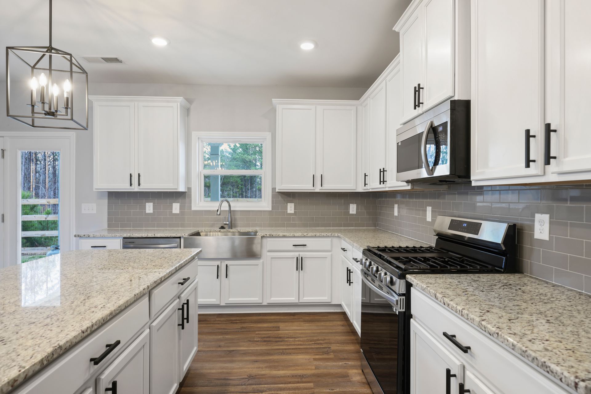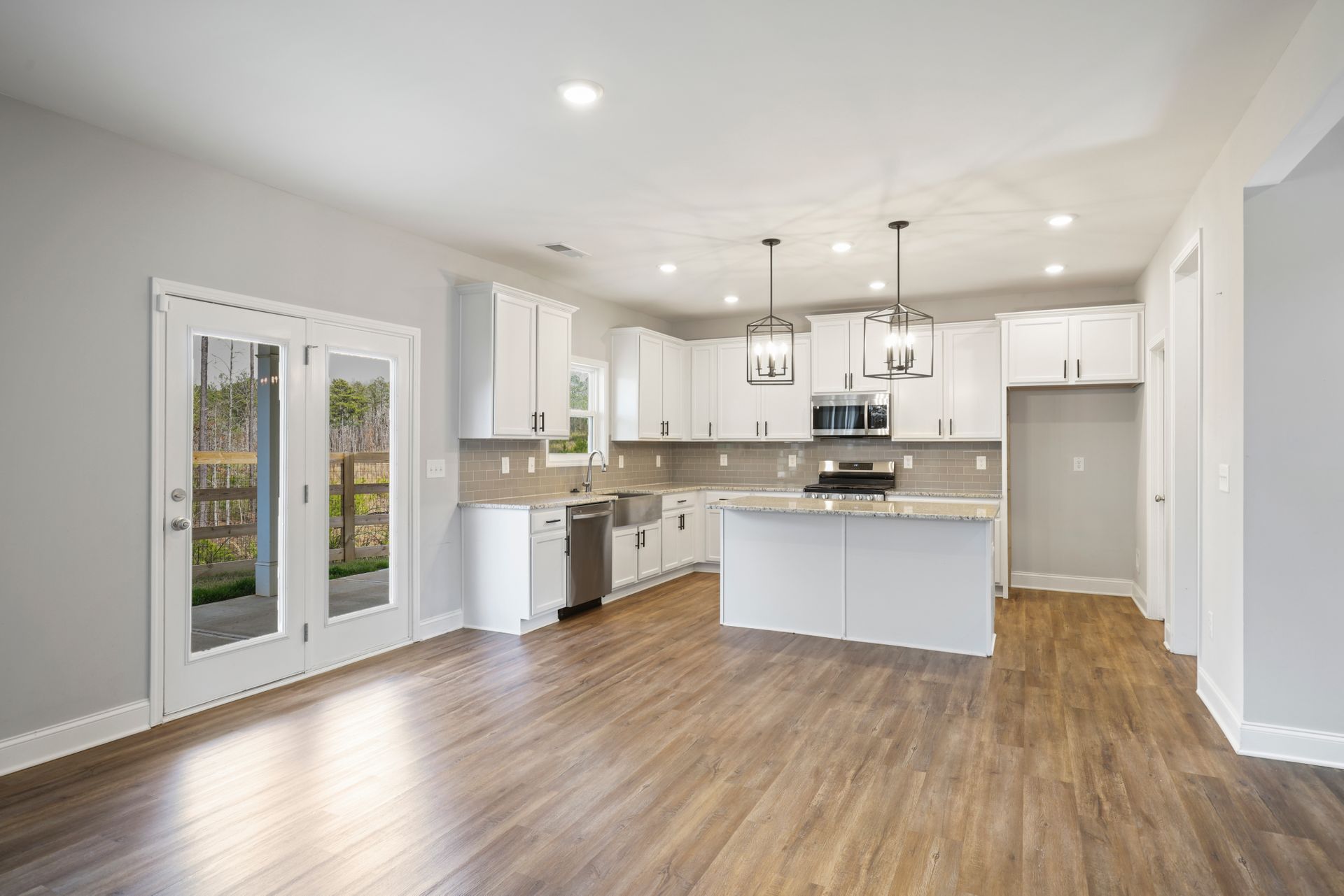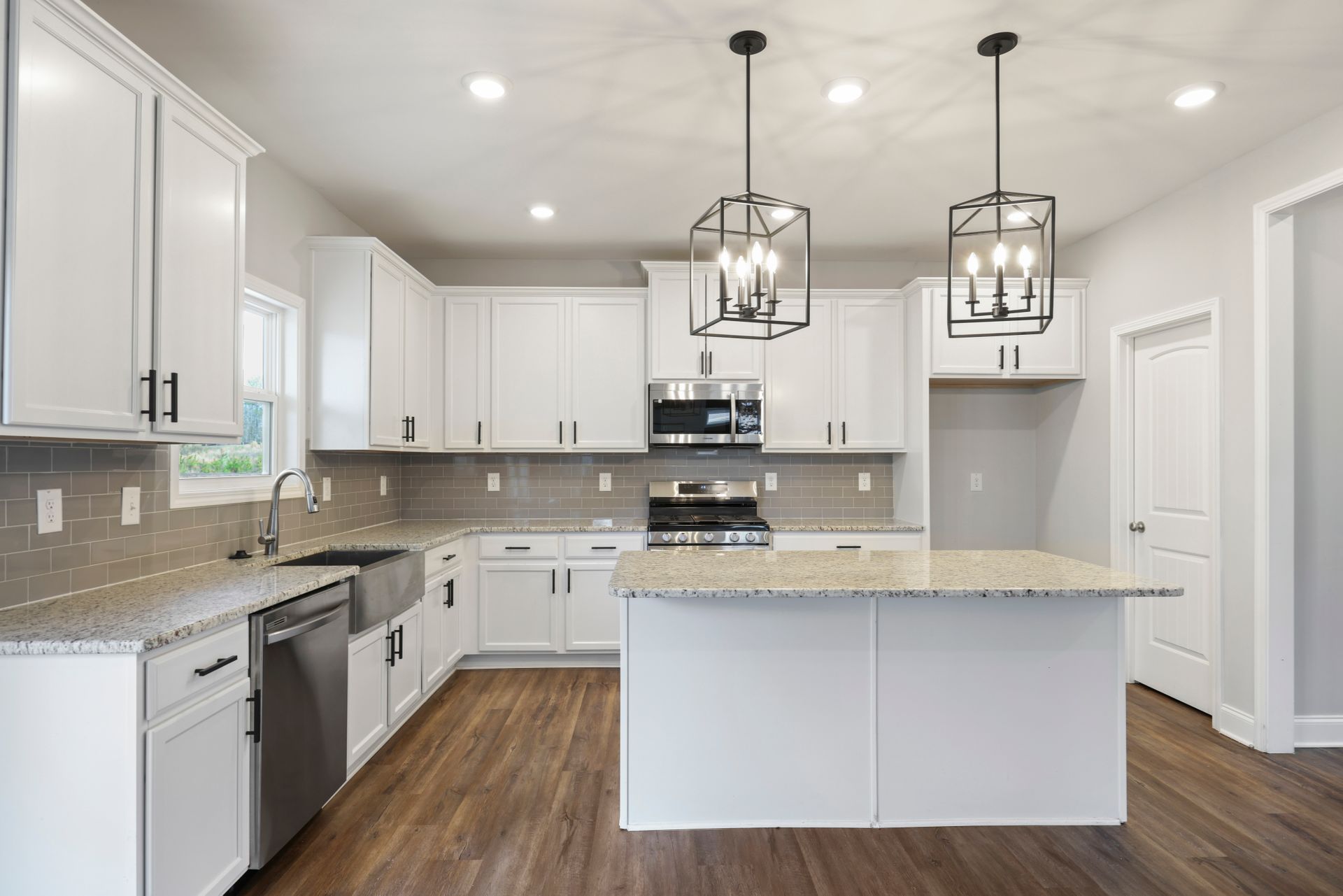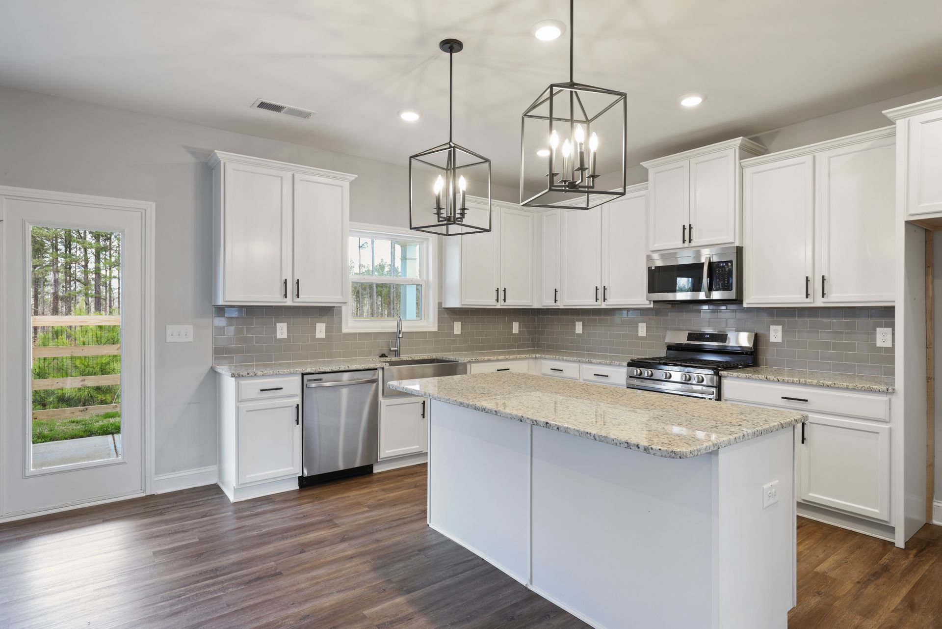 Enter to discover a spacious, light-filled fireside great room overlooking a private, fenced backyard. The heart of the home is the chef-inspired kitchen, featuring stainless steel appliances, granite countertops, and a large island with seating—perfect for entertaining and casual dining.