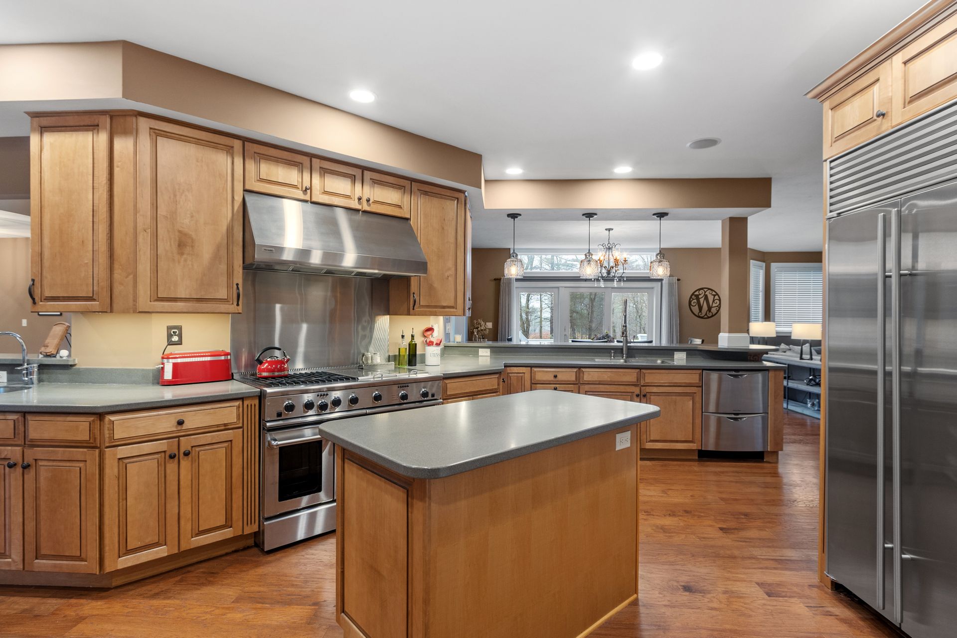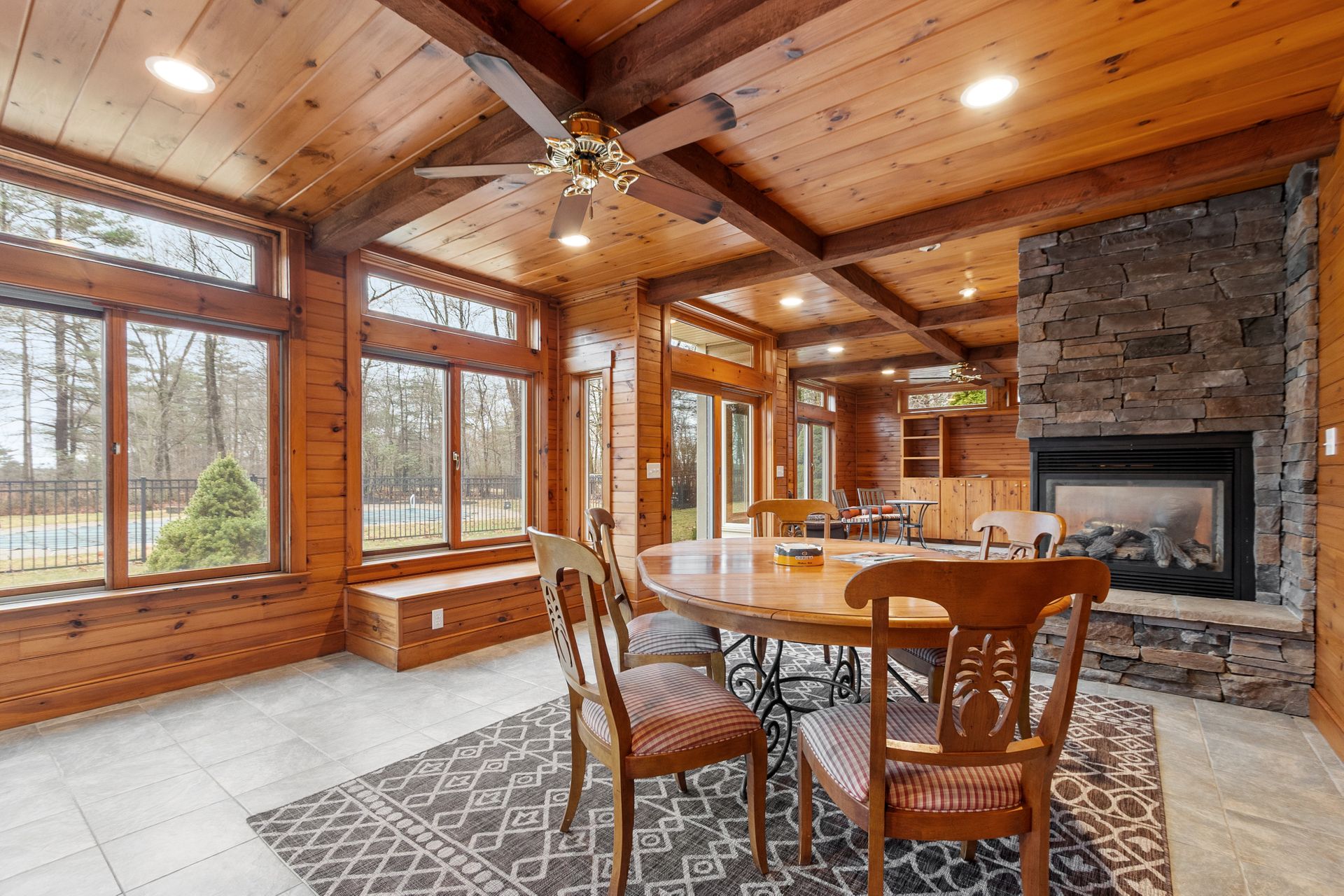 One of a kind elegance and beauty in a home. Situated next to Sterling National Country Club and in one of Sterling's most sought out neighborhoods. This magnificent property offers so much. Five bedrooms, vaulted ceilings, gourmet kitchen with double propane range, double sink, Corian countertops, stainless steel appliances, gym, sauna, wine vault, wet bar, spacious three season entertainment room walking out to patio overlooking heated saltwater pool. Four fireplaces for ambiance to accompany the four Juliet balconies throughout. Spare room off of gym ideal for a golf simulator or yoga studio. Entertain, relax, or just enjoy one of Sterling's finest properties. Gas fireplace in first floor office off of the primary bedroom with huge renovated walk-in closet. Highlighted with beautiful fireplaced living room with elevated ceiling and plenty of sun with sliders to deck. Please come and view this magnificent property at our Open House March 30th from 12:30-2:30.