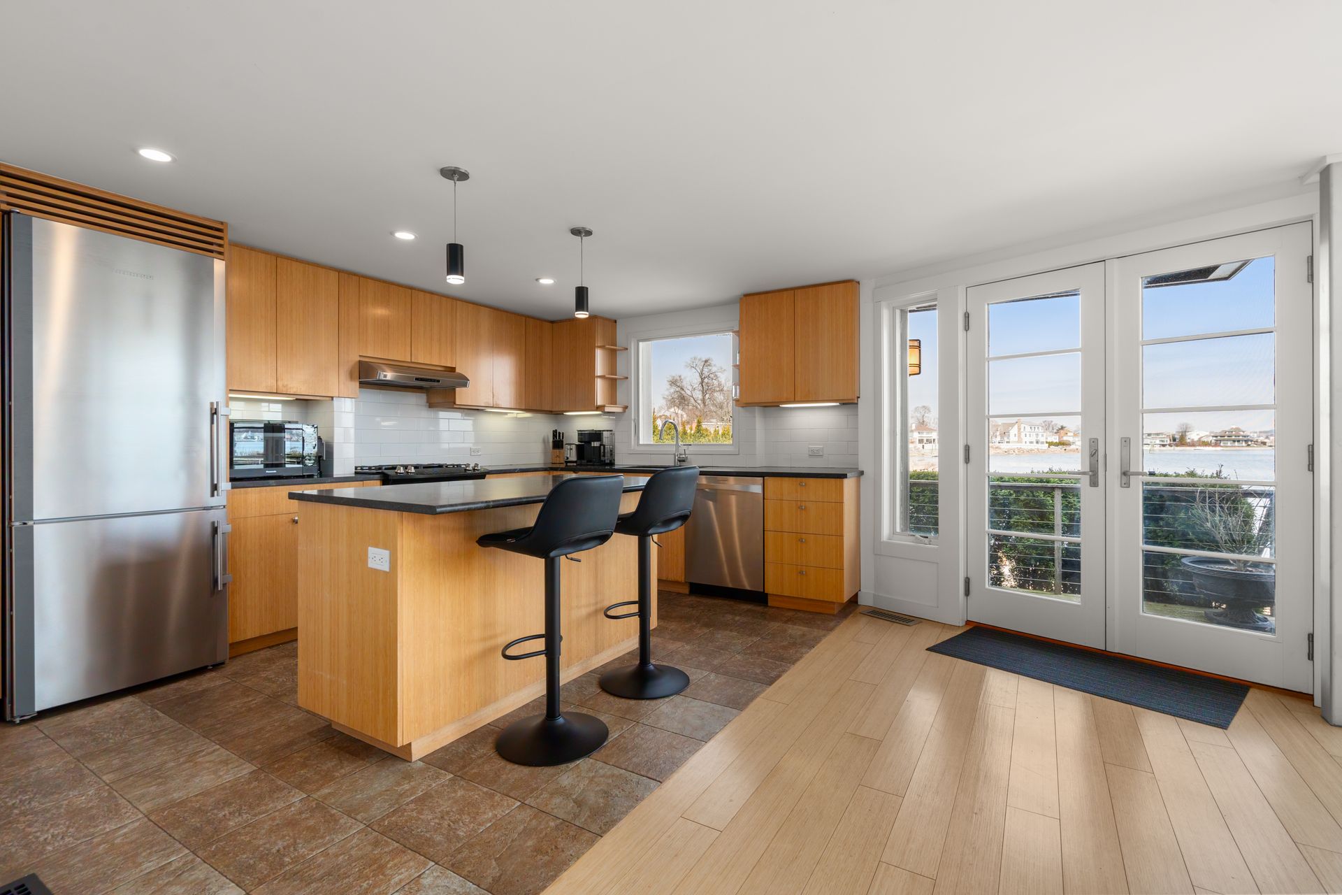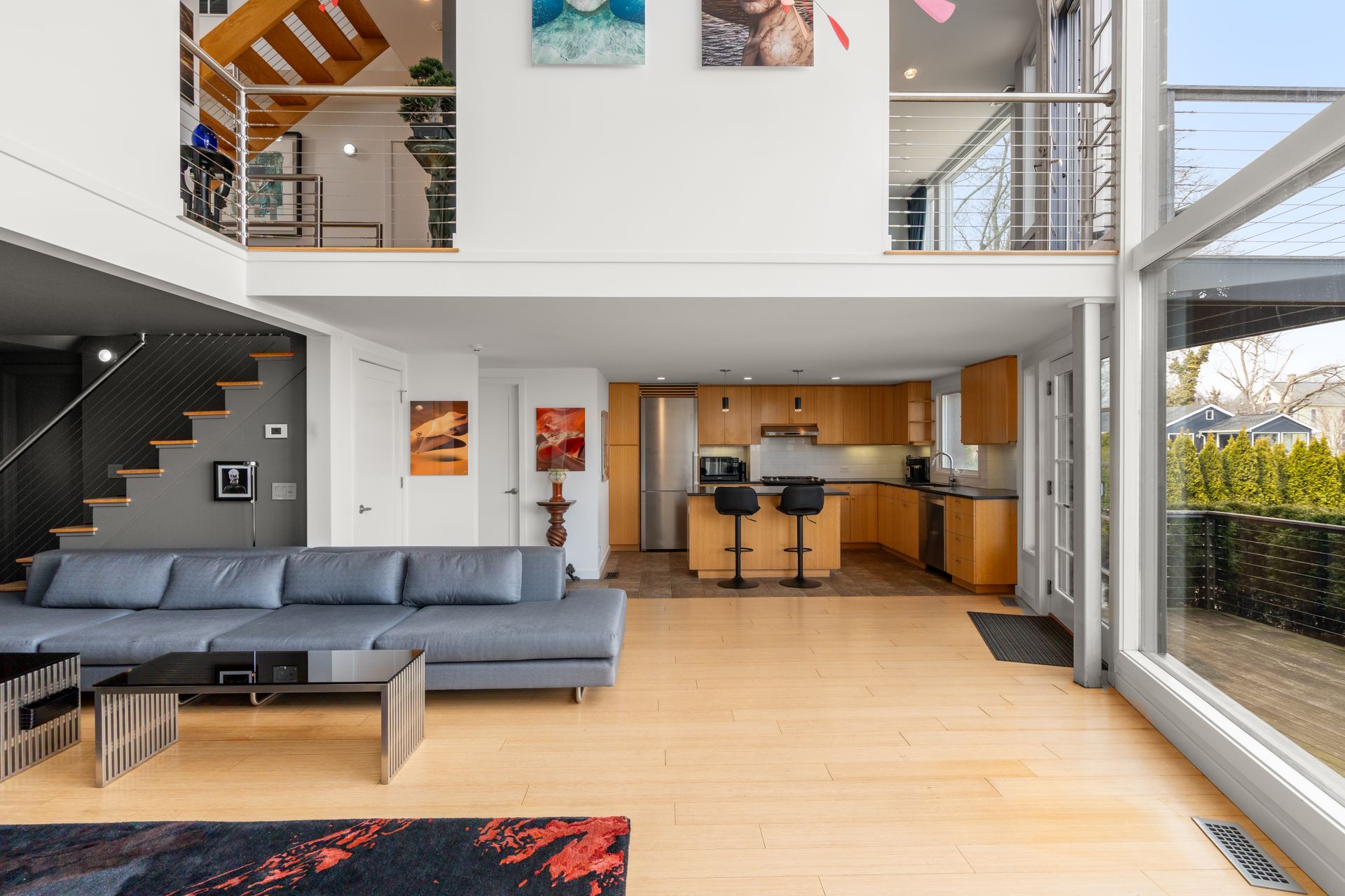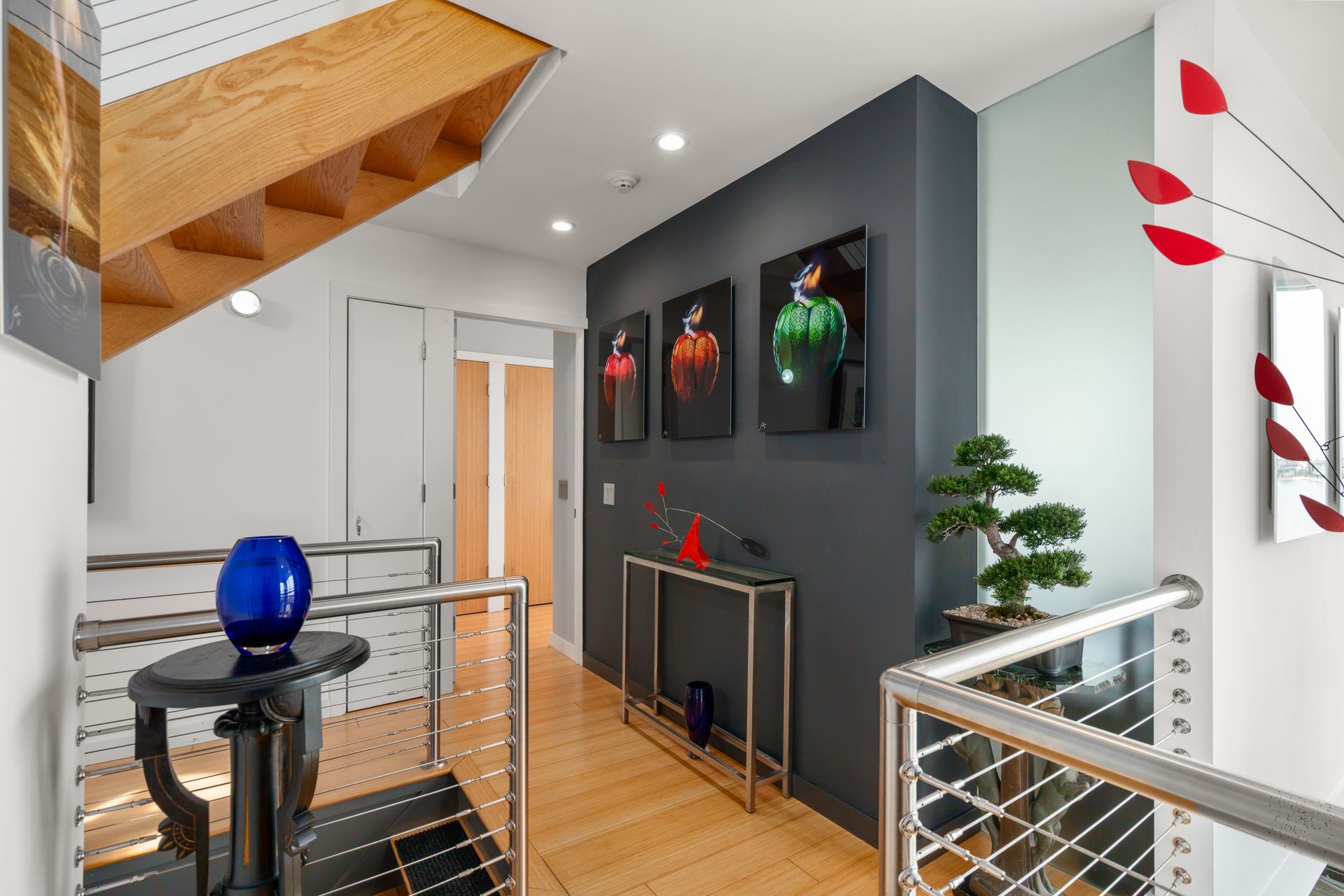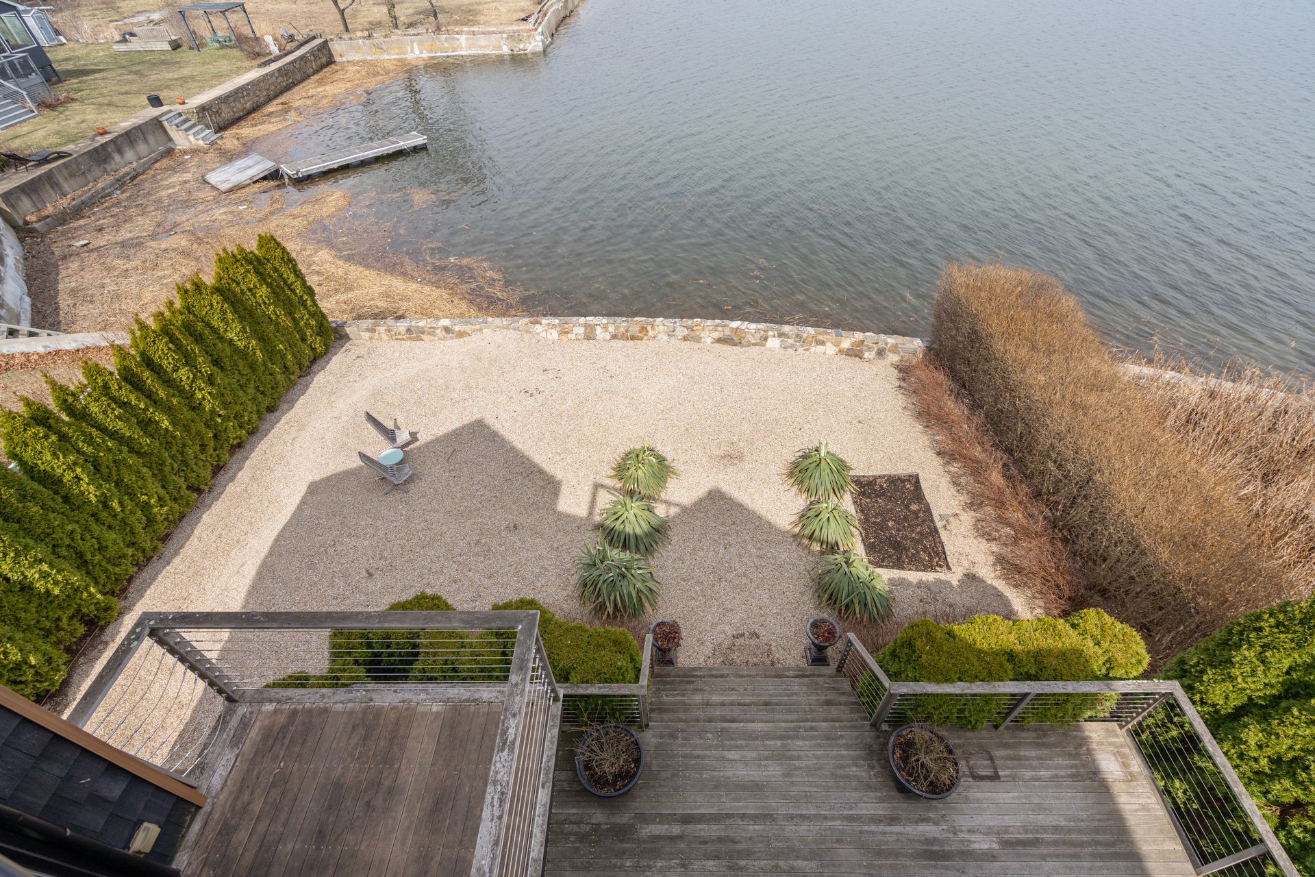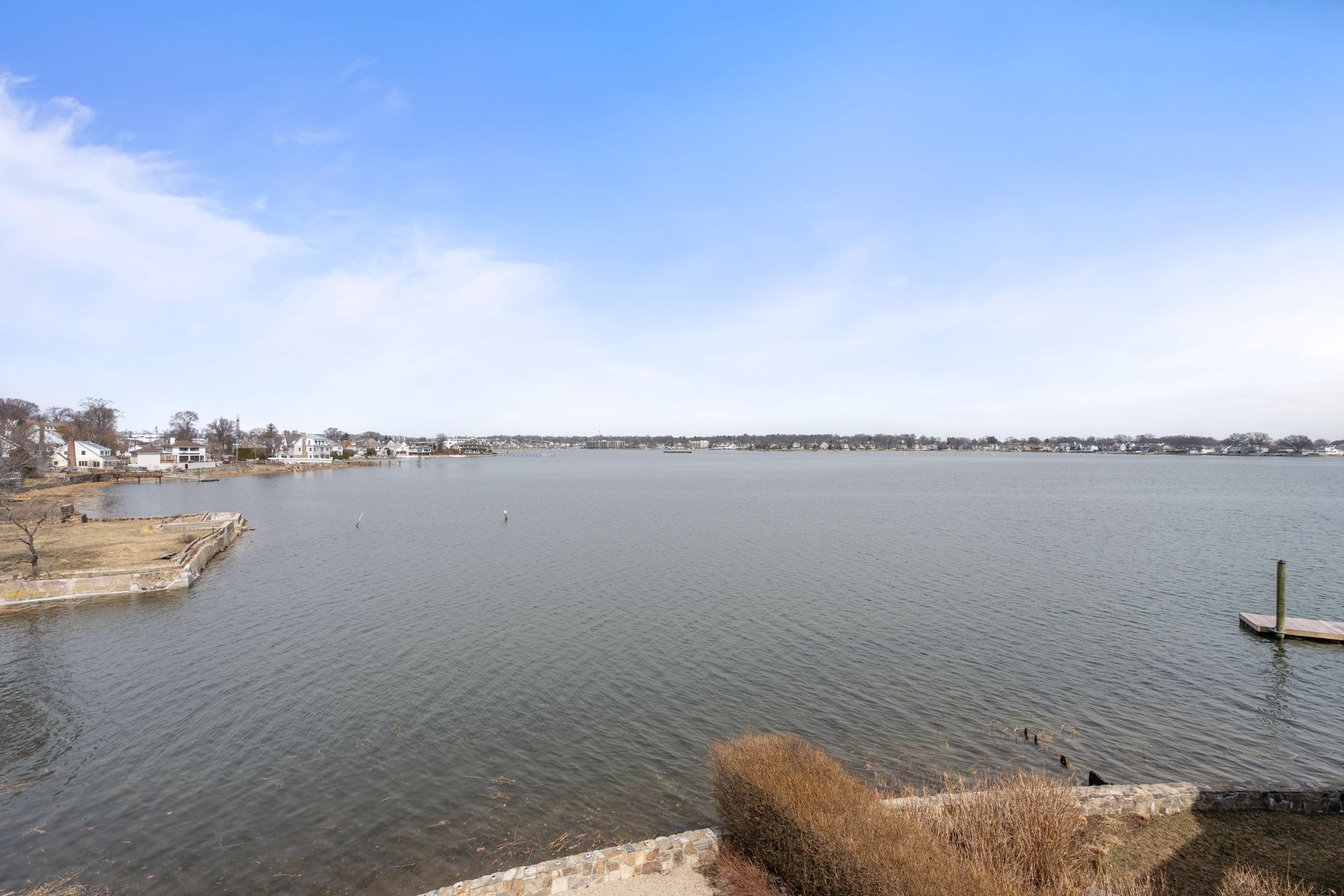17 Seabreeze Place "Windswept" is a rare waterfront offering. A thoughtfully designed coastal retreat where architecture and setting come together to create this prized home. The steel-framed construction offers just over 2,000 square feet across three finished levels. Designed to maximize natural light and panoramic water views, the home features a dramatic 16-foot wall of glass visible from the living room, office, and primary suite. A custom pivot entry door creates a striking first impression, leading into an open living space showcasing bold interior design and subtle nautical-inspired elements, defined by coastal aesthetic metal railings throughout. The flexible floor plan includes a main-level bedroom with access to a full bath. The second floor offers a primary suite with en-suite bath, private balcony, and a custom sliding wall system allowing for privacy or expanded sightlines. An additional room functions as a home office or bedroom with a full bath nearby. The third floor, accessed via a floating staircase, features a vaulted bonus room with built-ins, a full bath, and private deck with expansive water views, ideal for relaxing or entertaining. Exterior upgrades include new composite siding, awning, and professionally designed landscaping with drip irrigation. Owned solar panels help offset rising electricity costs. Enjoy nearby Baxter Park, a city-maintained, dog-friendly waterfront park with seating and small kyak launch, a cherished amenity of the Harbor Shores community.