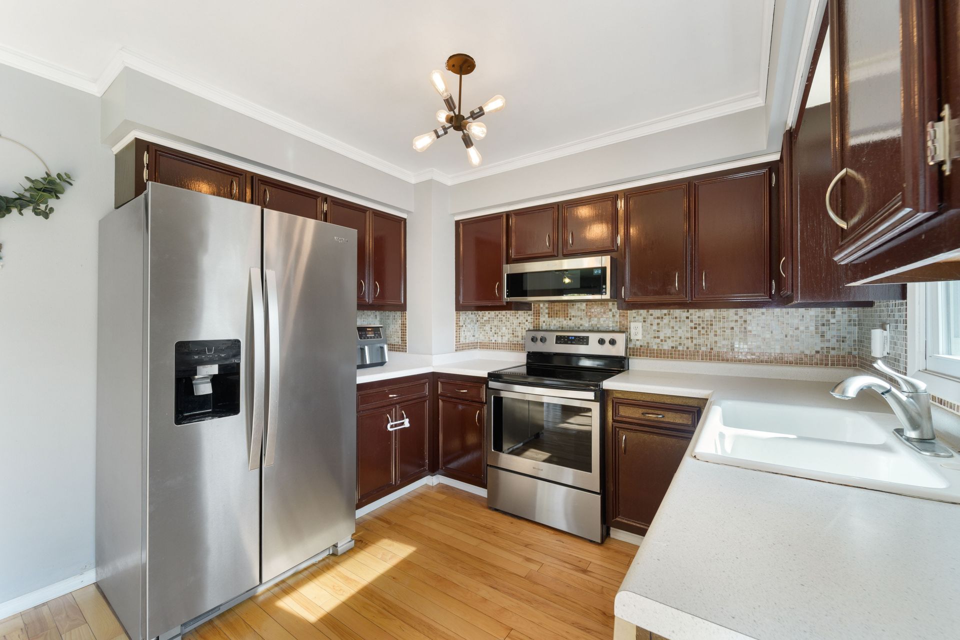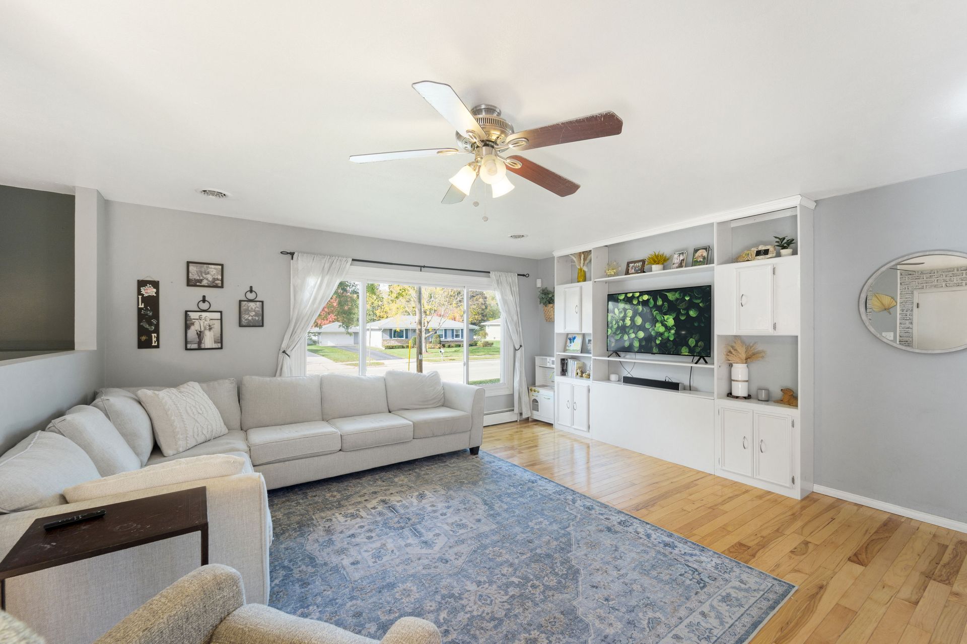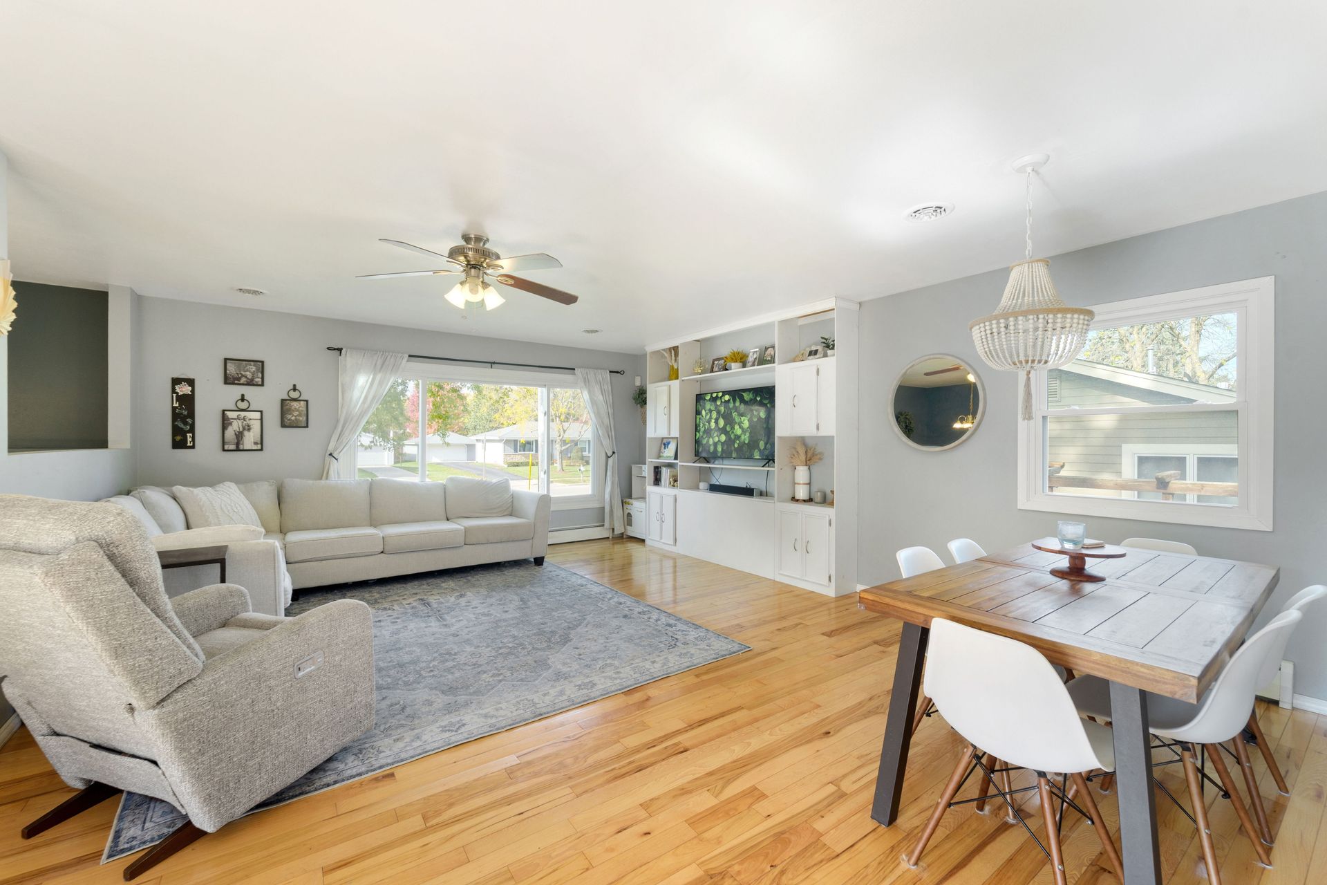 Step into the sun-drenched living room, where a large picture window frames breathtaking sunsets each evening. The open layout on the main floor creates a seamless flow between the living, dining, and kitchen areas — ideal for gatherings or cozy nights in.
