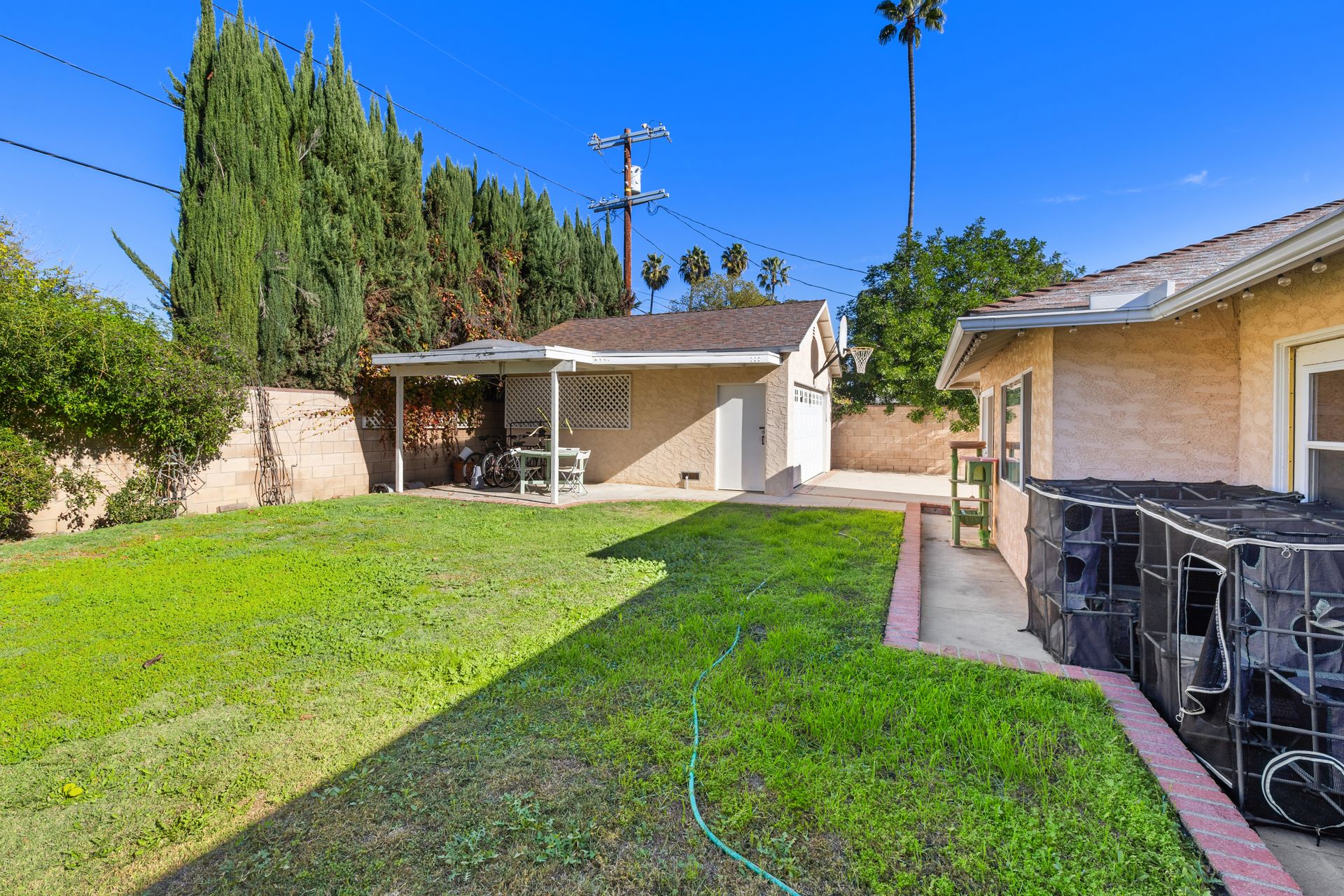 Enjoy the expansive backyard with a covered patio and barbecue area, ideal for entertaining, relaxing, or watching little ones enjoy the adorable playhouse.