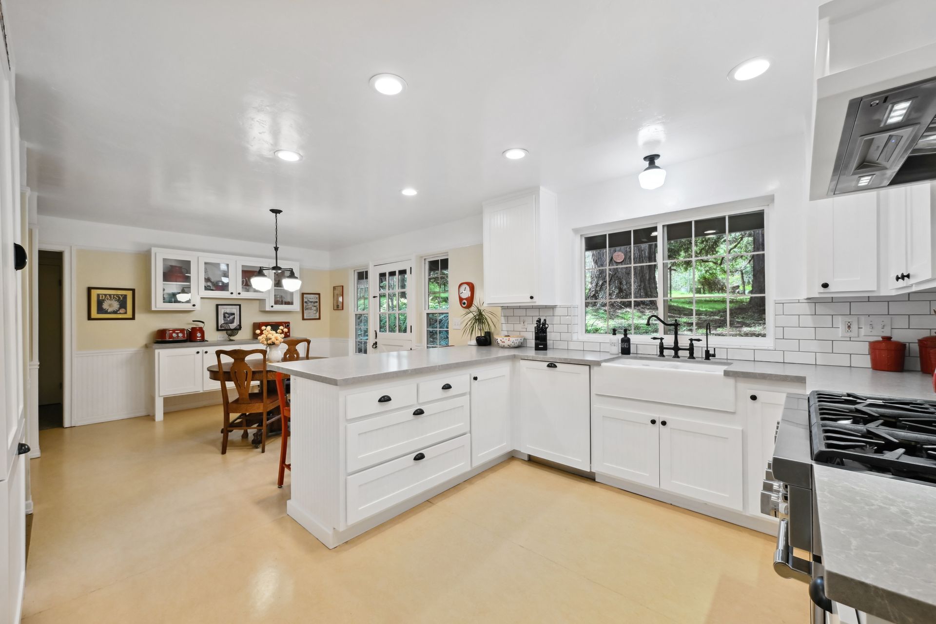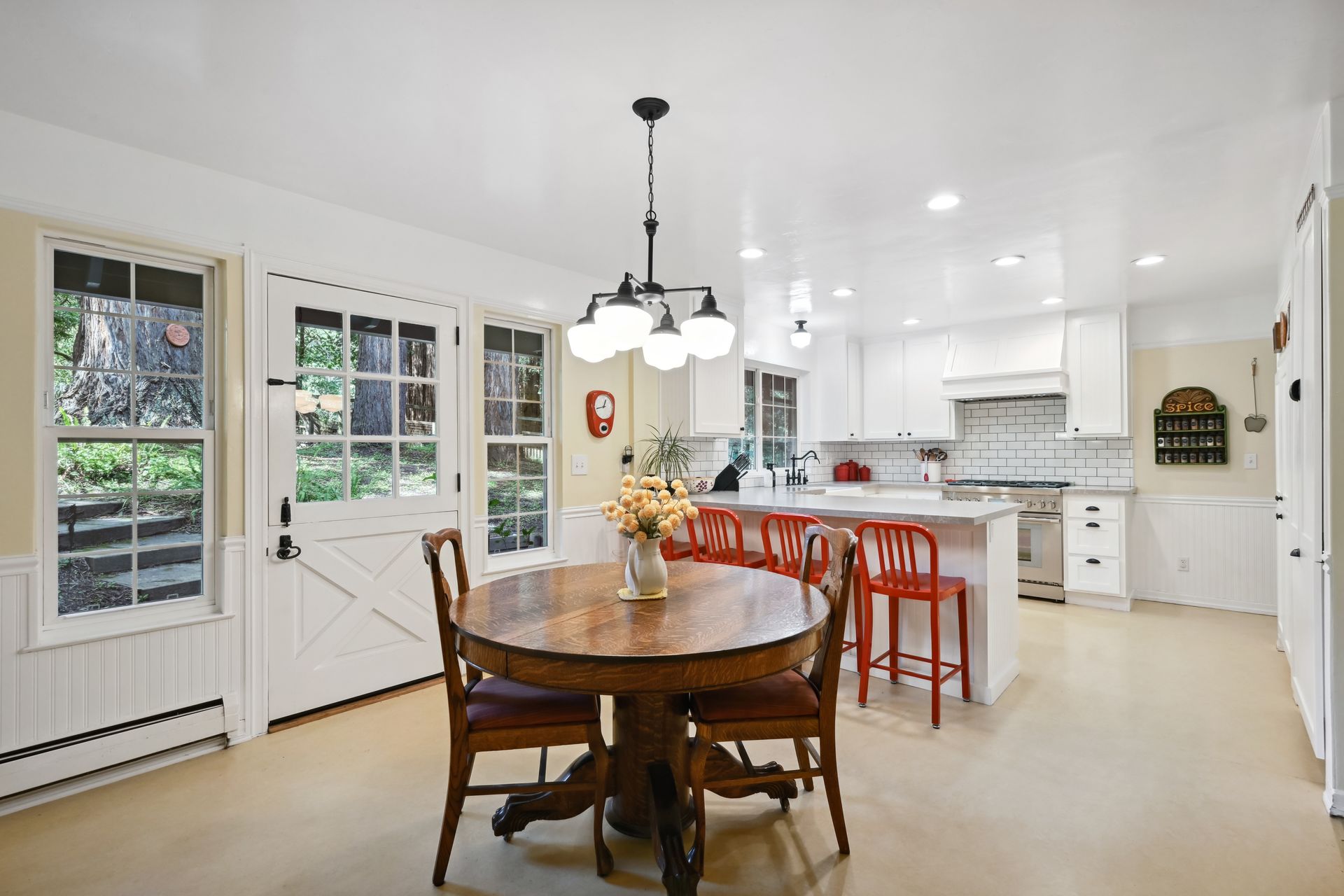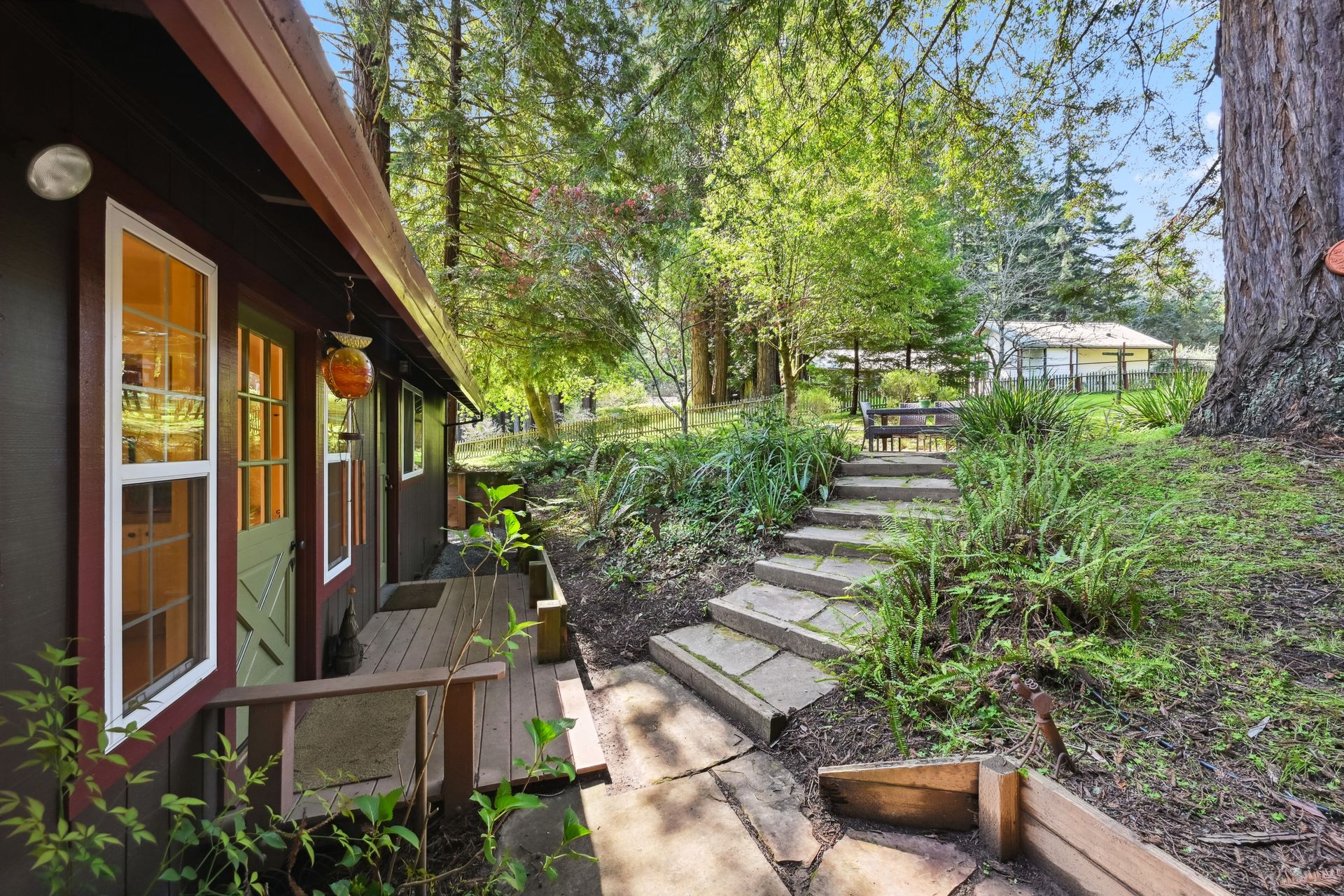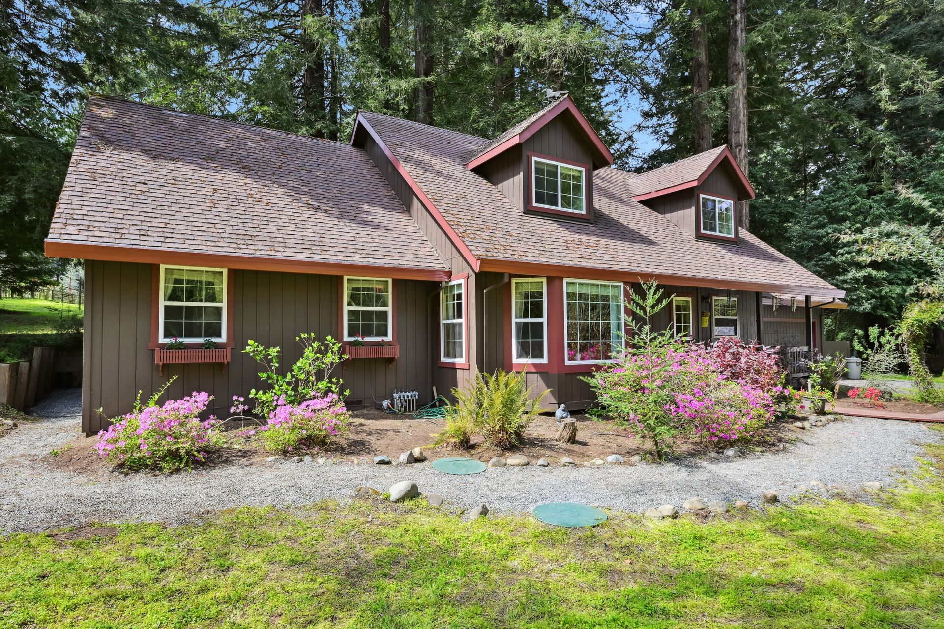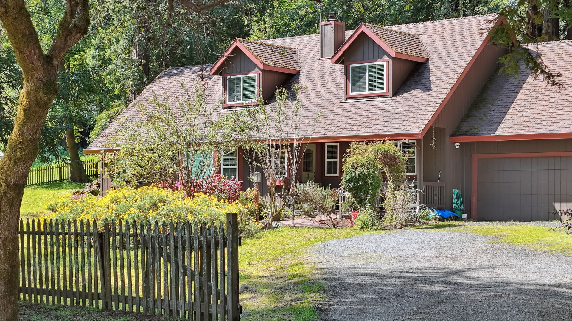 Welcome to 1776 Jonive—a serene retreat on a picturesque, approximately one acre lot adorned with majestic redwoods and a sun-drenched garden space. This quintessential Sebastopol home offers four bedrooms, two offices and two and one-half baths. The primary bedroom and both offices are located on the main level, with the guest bedrooms and bathroom upstairs. The bright, recently remodeled kitchen features custom cabinetry, quartz countertops, a farmhouse sink and a Thermador range. The built-in fridge and dishwasher blend seamlessly with panel doors, maintaining the kitchen’s clean, elegant look. Freshly painted inside and out, the home also boasts radiant heat and beautifully updated bathrooms. Charm abounds with a classic Dutch door in the kitchen and flower boxes under the front windows. Outdoors, enjoy a magical patio under the redwoods, a sunny garden, an enclosed dog run, and a classic West County picket fence. An ideal blend of nature and comfort!