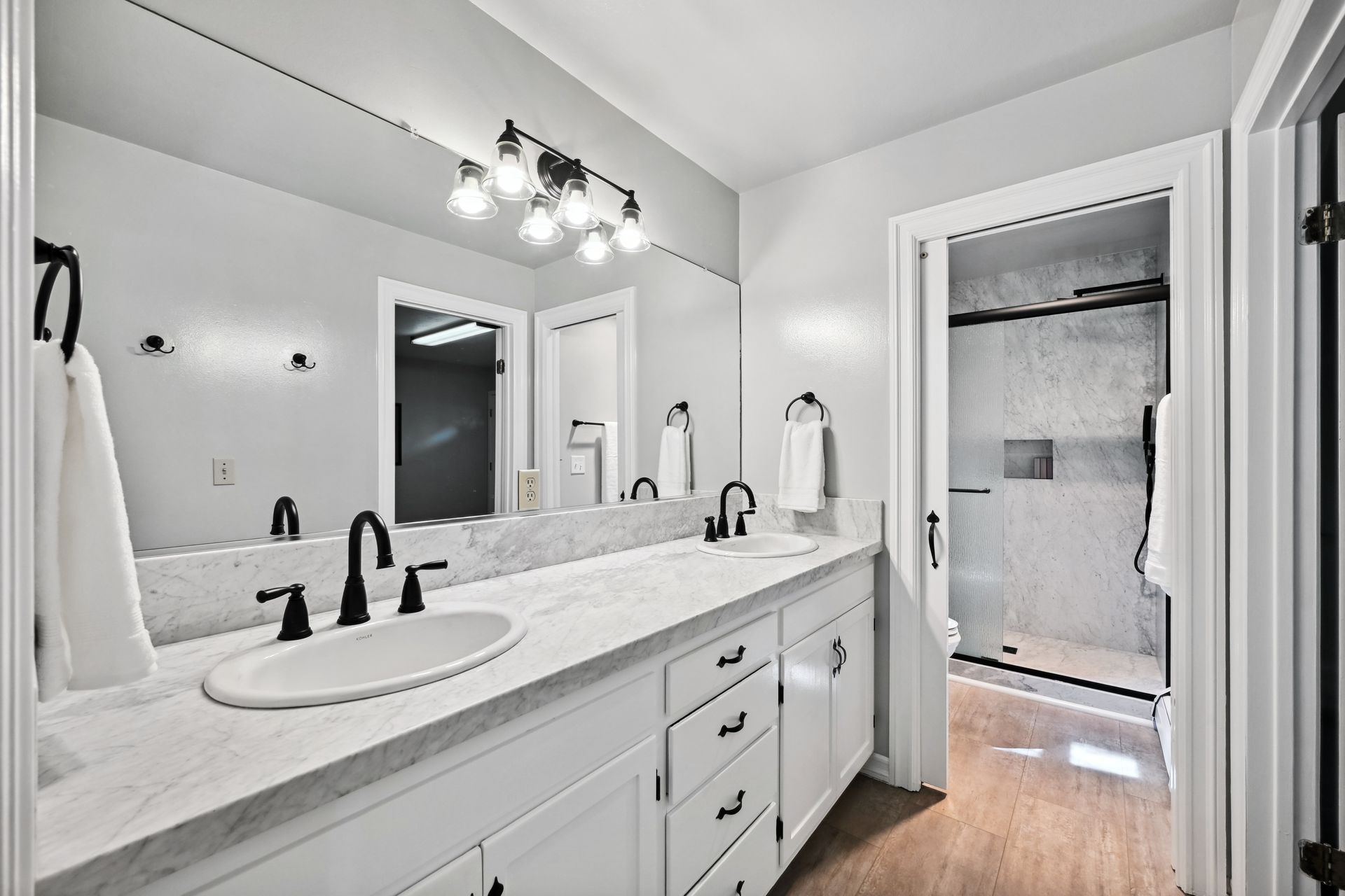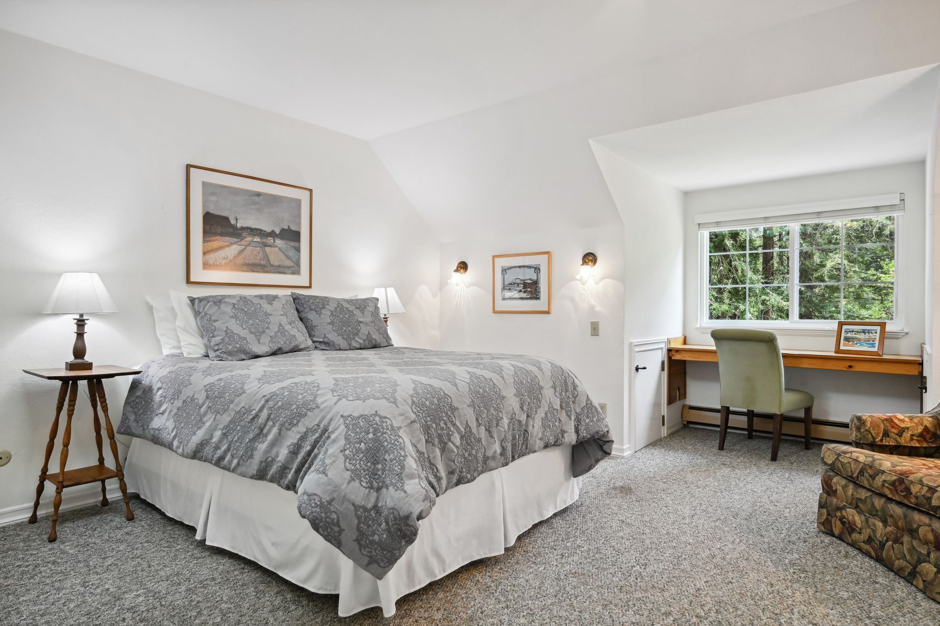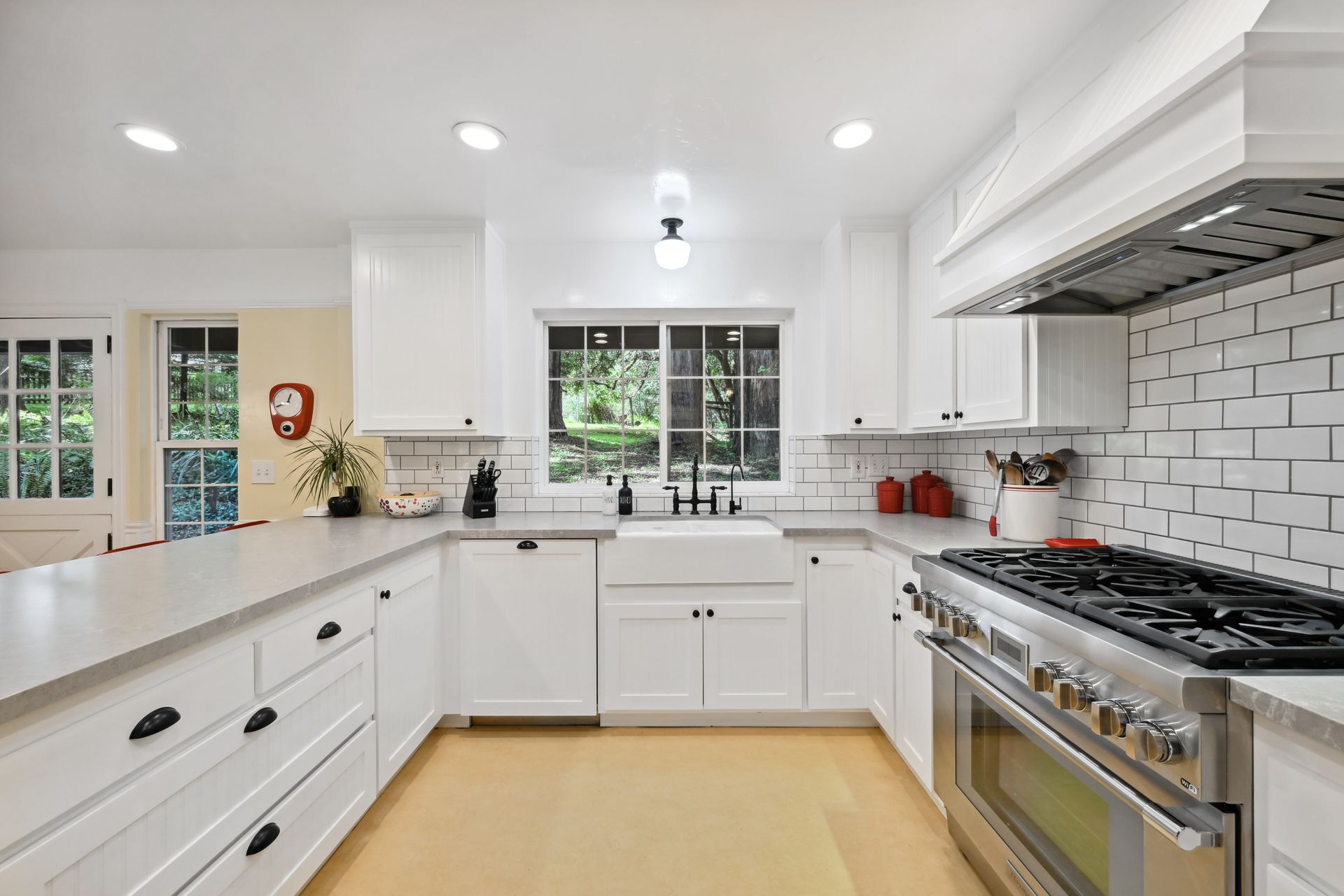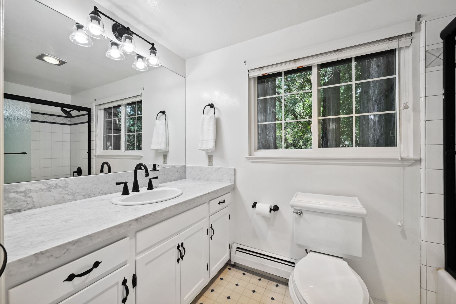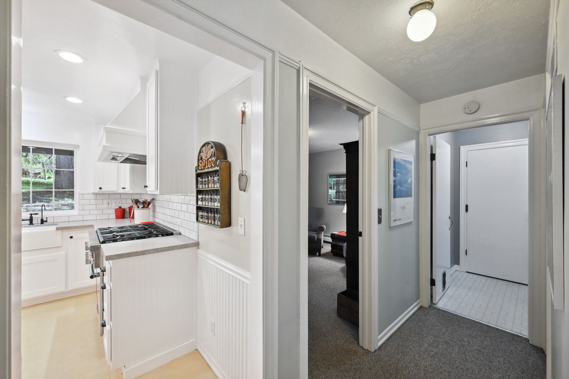 Welcome to 1776 Jonive—a serene retreat on a picturesque, approximately one acre lot adorned with majestic redwoods and a sun-drenched garden space. This quintessential Sebastopol home offers four bedrooms, two offices and two and one-half baths. The primary bedroom and both offices are located on the main level, with the guest bedrooms and bathroom upstairs. The bright, recently remodeled kitchen features custom cabinetry, quartz countertops, a farmhouse sink and a Thermador range. The built-in fridge and dishwasher blend seamlessly with panel doors, maintaining the kitchen’s clean, elegant look. Freshly painted inside and out, the home also boasts radiant heat and beautifully updated bathrooms. Charm abounds with a classic Dutch door in the kitchen and flower boxes under the front windows. Outdoors, enjoy a magical patio under the redwoods, a sunny garden, an enclosed dog run, and a classic West County picket fence. An ideal blend of nature and comfort!