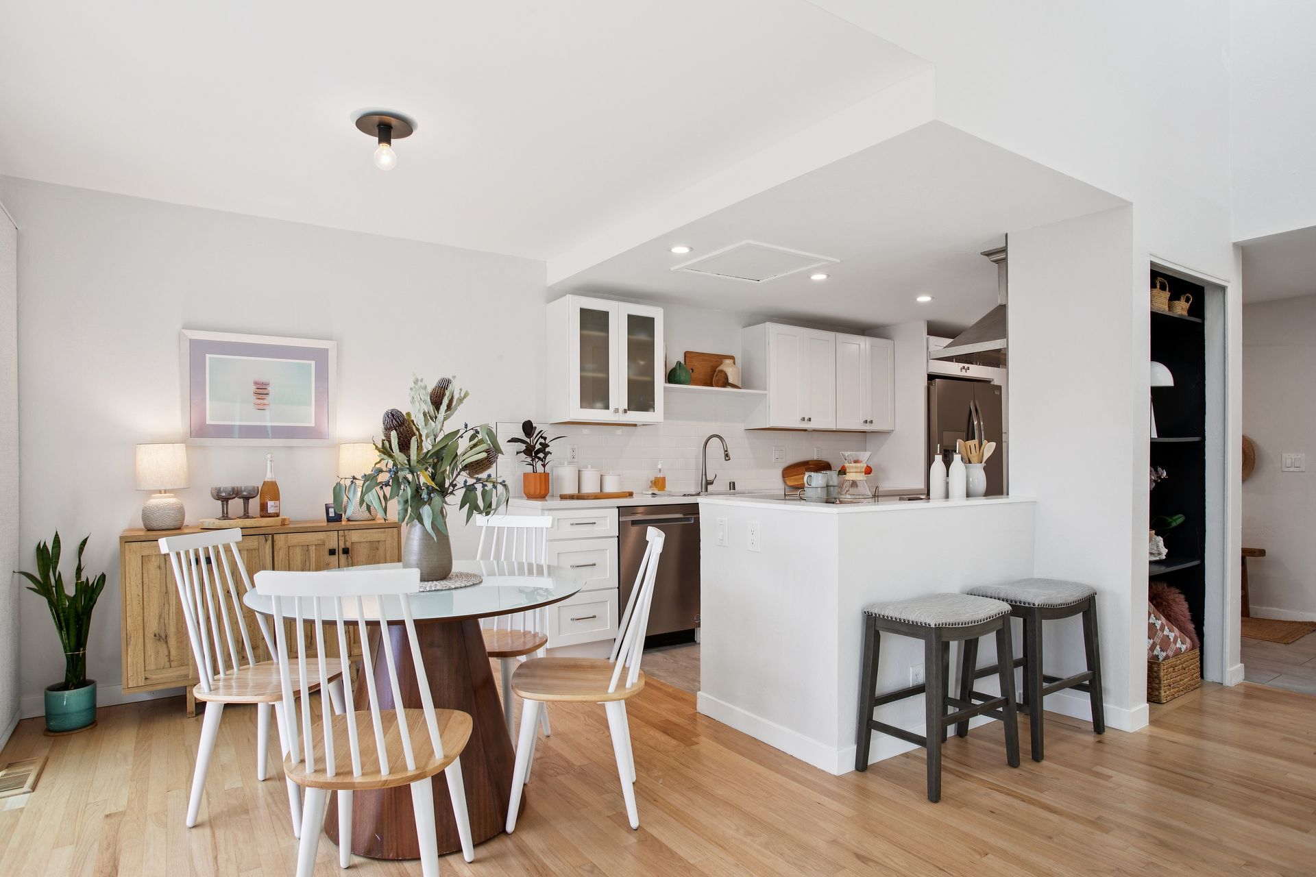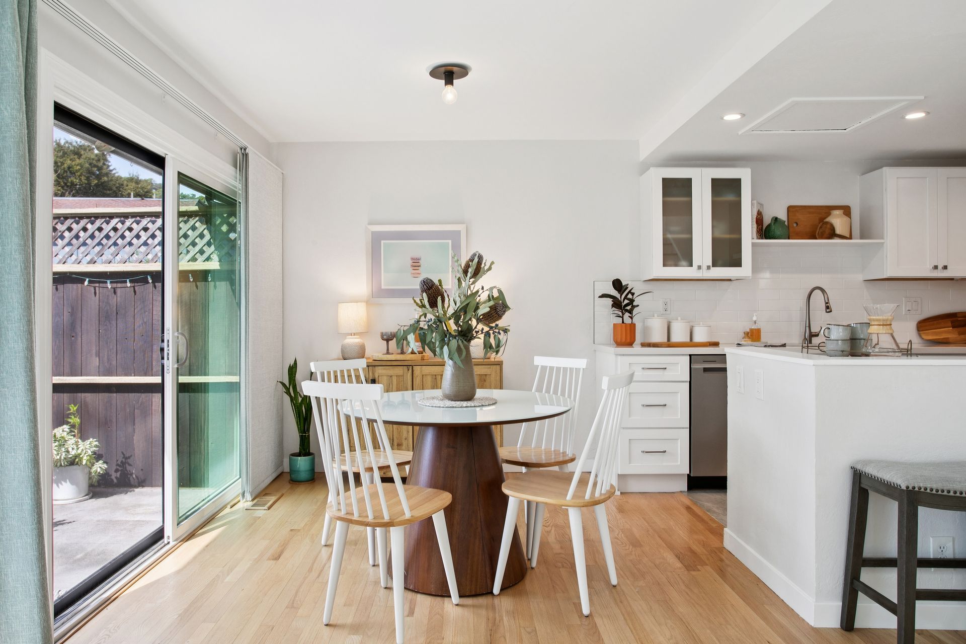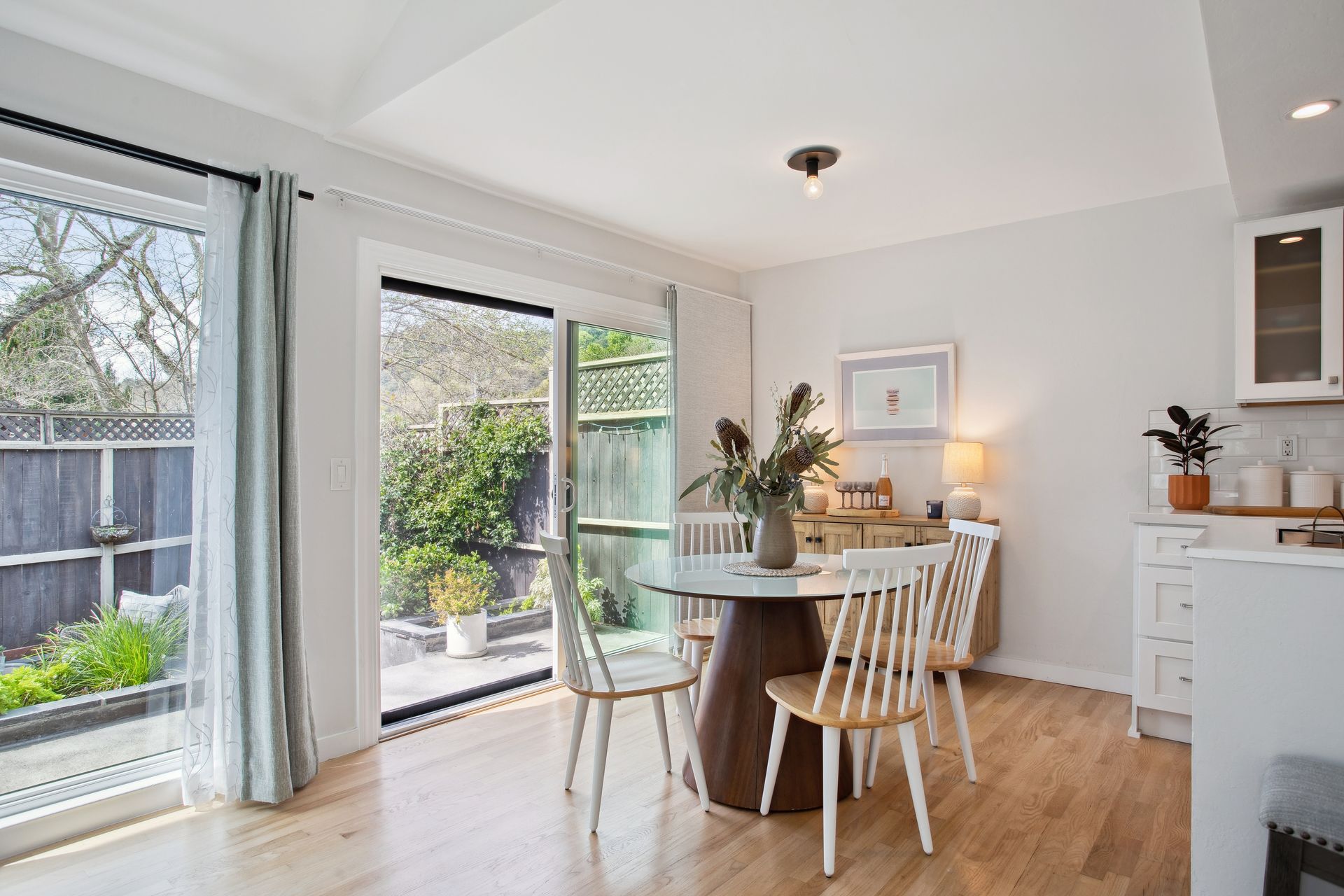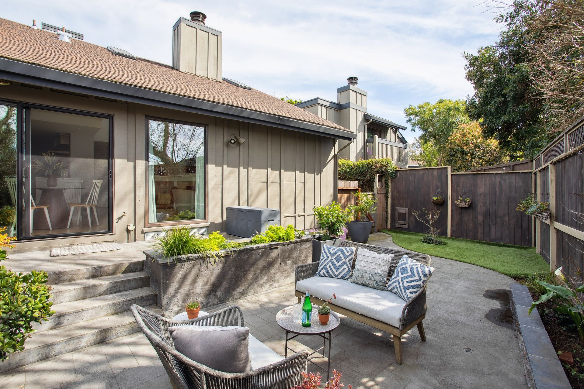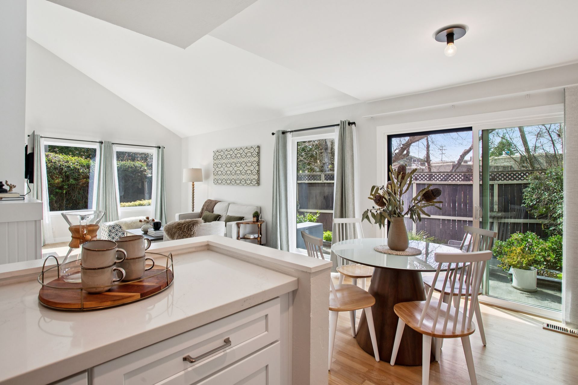 Located in the highly sought after, Marinwood Neighborhood, this beautifully updated two bed, one and one-half bath townhouse offers approximately 1,352 square feet of light-filled living with soaring ceilings and seamless indoor-outdoor flow. The dramatic living room features vaulted ceilings, a fireplace with custom wainscoting, and sliding doors opening to an expansive private garden patio—ideal for dining, relaxing, and enjoying Marinwood’s mild climate year-round. The renovated kitchen showcases modern cabinetry, quartz countertops, and stainless steel appliances, while a stylish barn door reveals a main-level one-half bath with a laundry and a newly installed washer and dryer. Upstairs, two spacious bedrooms include a serene primary with a private balcony and abundant closet space, plus a redesigned full bath with extensive upgrades and designer tile. The owner has invested in many improvements, including electrical upgrades, attic insulation, fresh paint, Shade Store window coverings and more. Enjoy a two-car covered carport and low $420/monthly HOA dues with a pool, tennis, and park. Ideally located near hiking trails, within the Miller Creek School District, and close to shopping and Highway 101 access, this move-in ready residence offers comfort, style, and exceptional value.