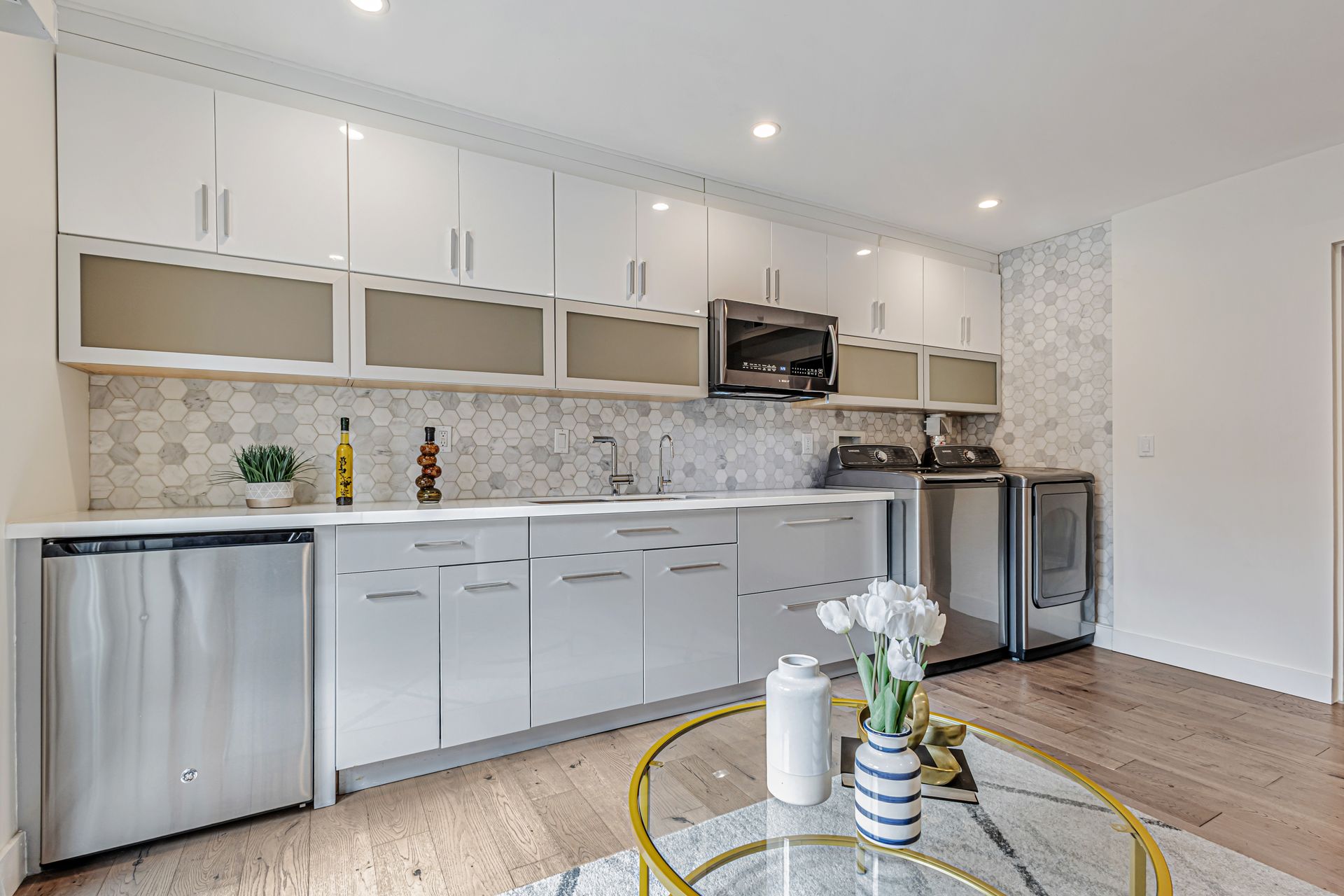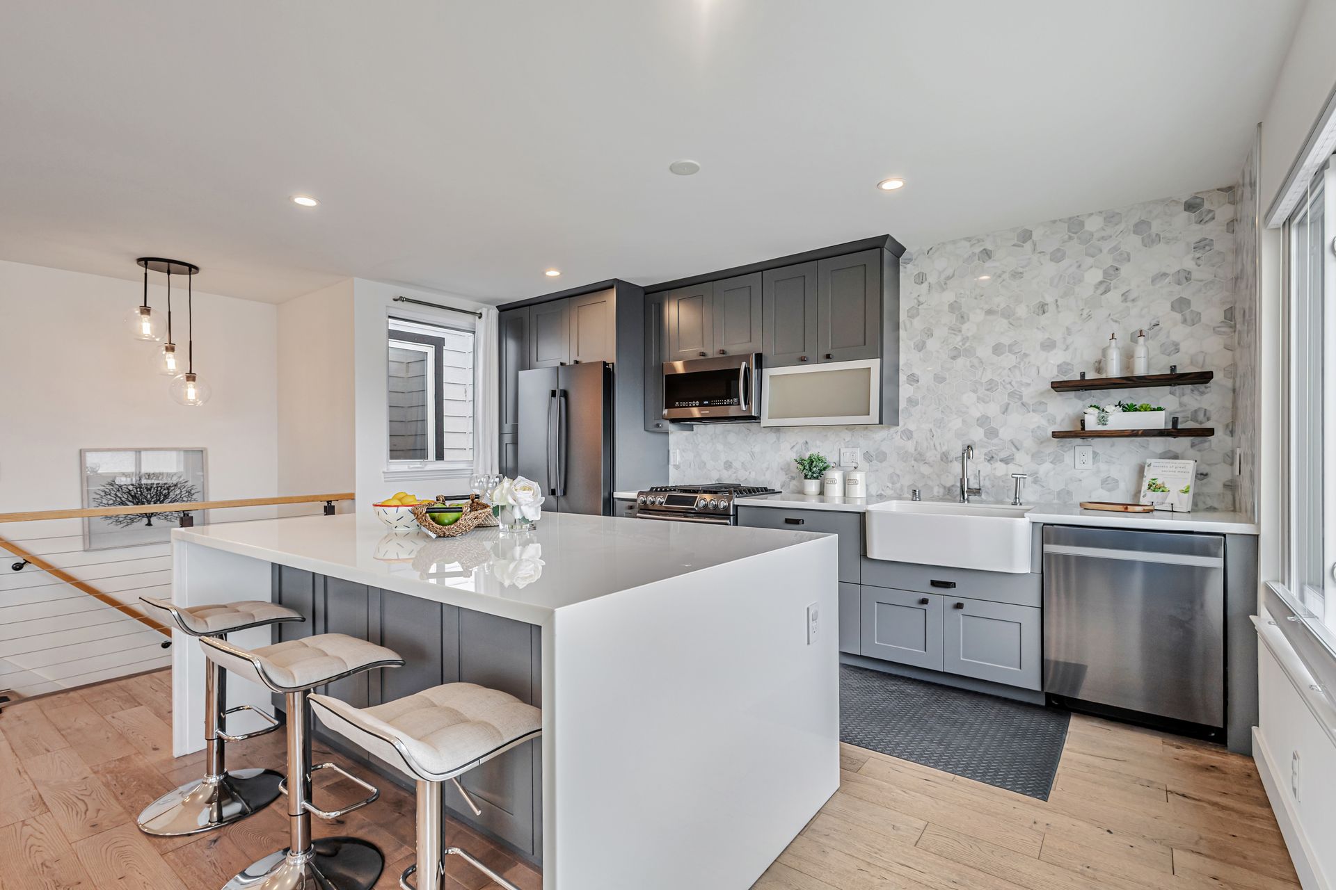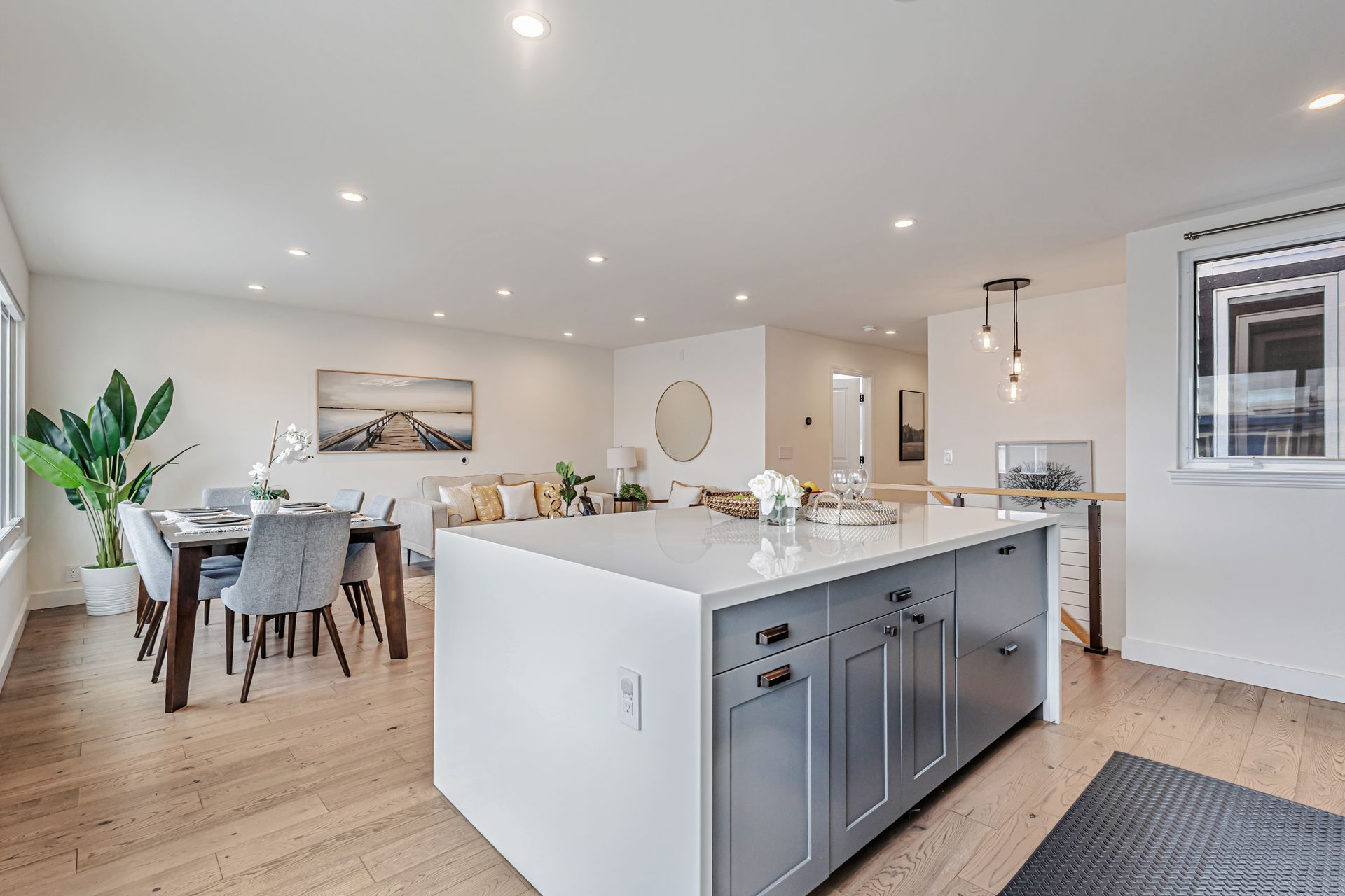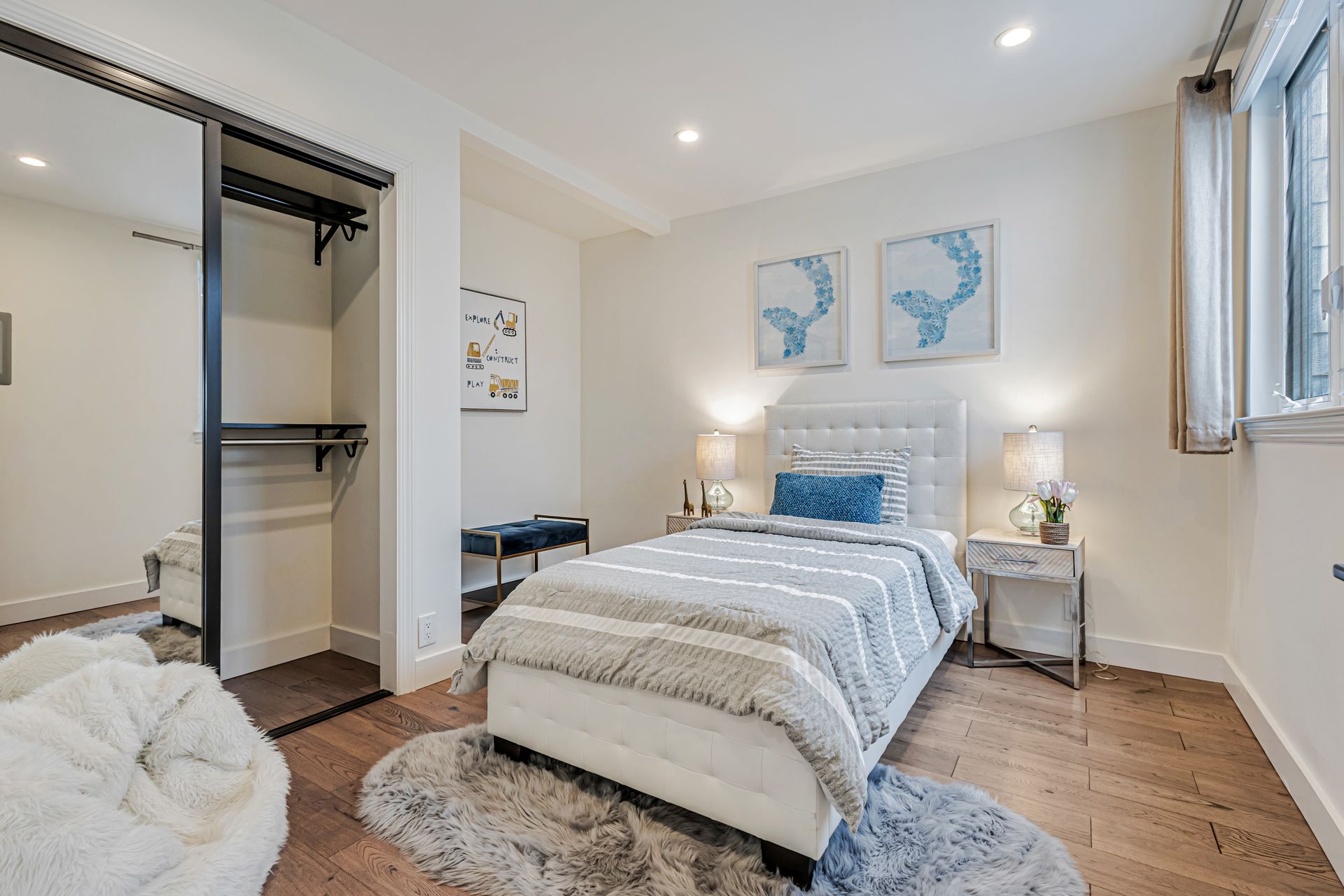 This beautifully reimagined 4-bedroom/4-bathroom single-family home, approximately 1,905 sqft, combines modern aesthetics with functional living. An inviting open floor concept, living and dining area with views of the bay, a chef's kitchen featuring an expansive center island, soft-close cabinetry, premium appliances, custom window coverings and stylish finishes that complement the rich hardwood floors throughout. Upstairs, the serene primary suite offers a spa-inspired en-suite bath, two additional bedrooms, a hall bathroom with washer/dryer hookup. The versatile lower level includes a cozy lounge with sliding barn door, wet bar, washer and dryer, private bedroom with en-suite bath, additional hall bath, and mudroom ideal for multi-generational living, guests, or a home office. Step outside to a custom-landscaped, low-maintenance backyard patio perfect for relaxation. Security system, a two-car side-by-side garage adds convenience and peace of mind. Ideally located near McLaren Park, Palega Recreation Center, top schools including Cornerstone Academy, San Bruno Avenue's vibrant dining & shopping, public transit, Hwy 101/280, SF downtown & SFO, this Portola gem makes city living effortless. Welcome to your dream home!