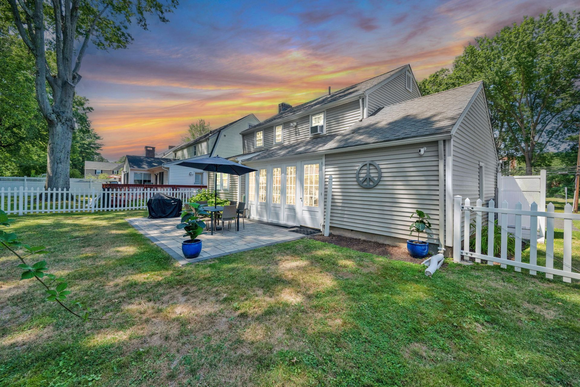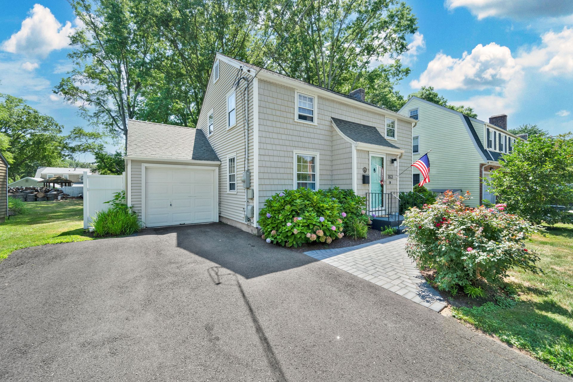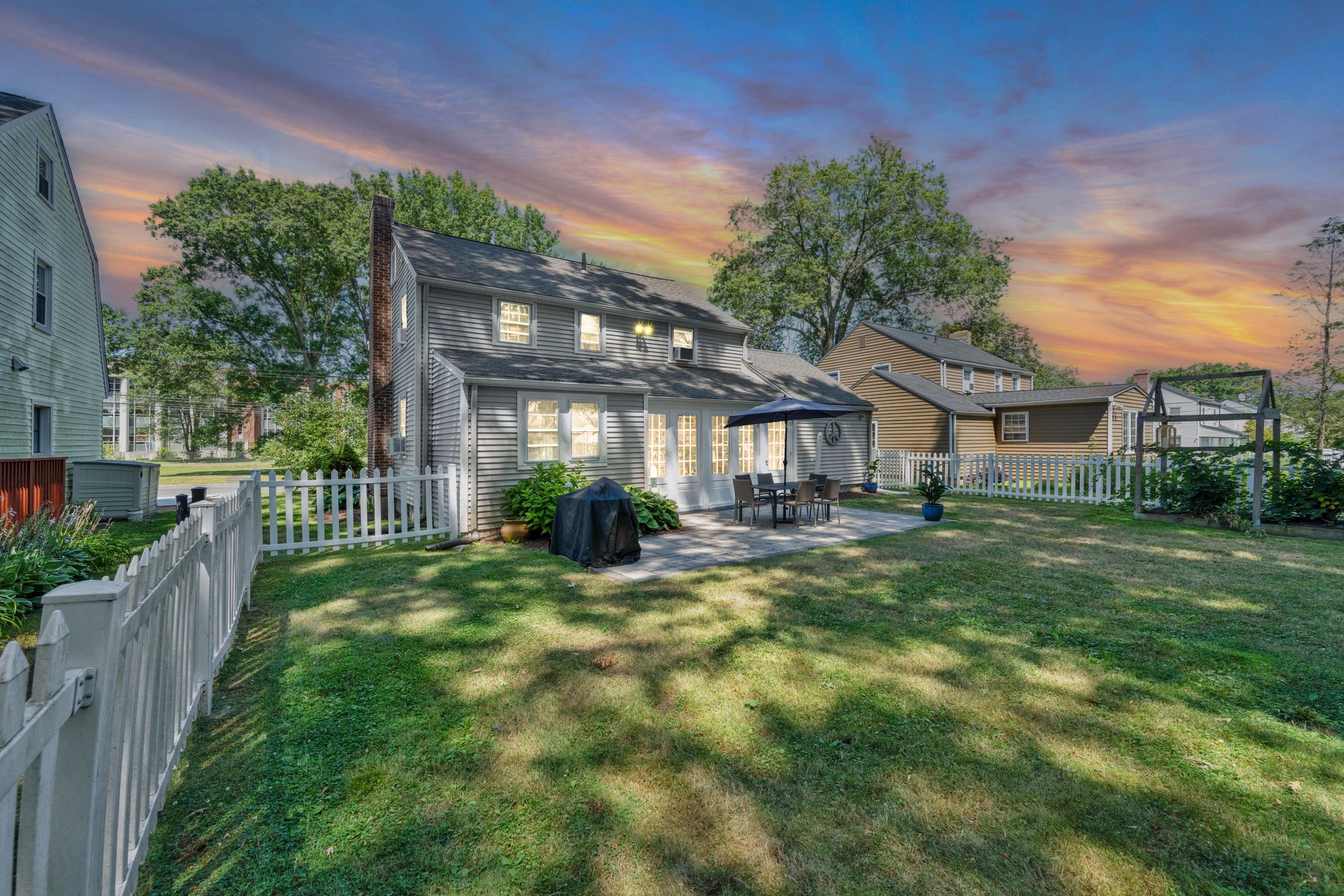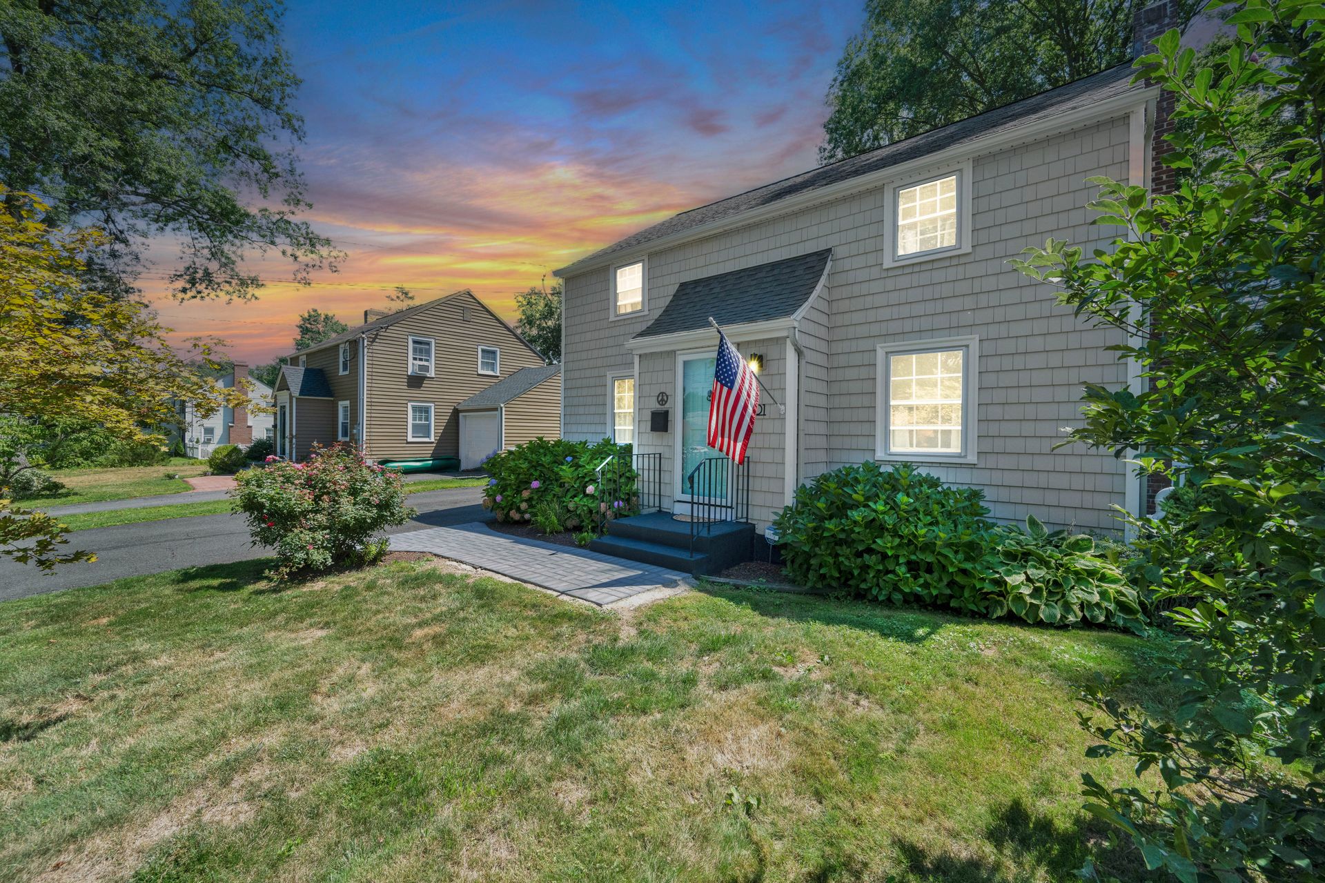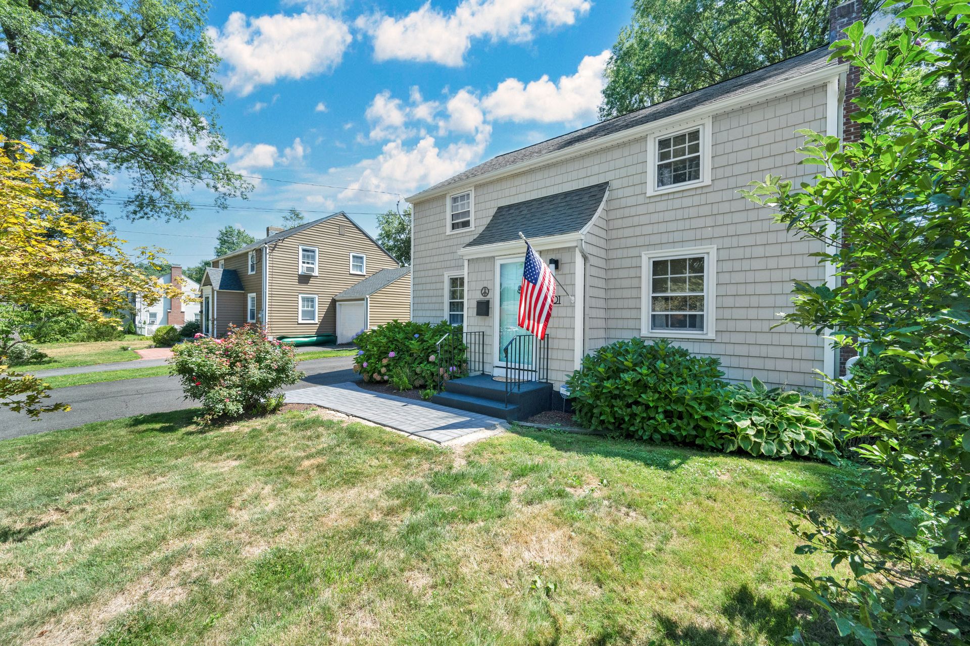 You will fall in love with this incredibly charming and beautifully remodeled Colonial that blends classic character with modern updates. Offering seven rooms, three bedrooms, and one and a half baths, this home showcases gleaming hardwood and tile floors throughout. The front-to-back fireplaced living room is warm and inviting, while the formal dining room with its built-in corner hutch adds a touch of timeless elegance. The updated kitchen is a showstopper, featuring quartz countertops, stainless steel appliances, and gas cooking. An enclosed porch with a pine ceiling and wall of glass is a great spot to relax, opening to a backyard patio ideal for summer gatherings. The spacious, level yard is fully enclosed with a charming vinyl picket fence and includes a storage shed for all your outdoor needs. Additional highlights include a one car attached garage with a Tesla charger, eye-catching cedar impression vinyl siding, and efficient gas heat. Enjoy an unbeatable location just minutes to West Hartford Center, Bishop’s Corner, and the scenic Trout Brook Trail. This home is truly move-in ready and waiting to welcome you!