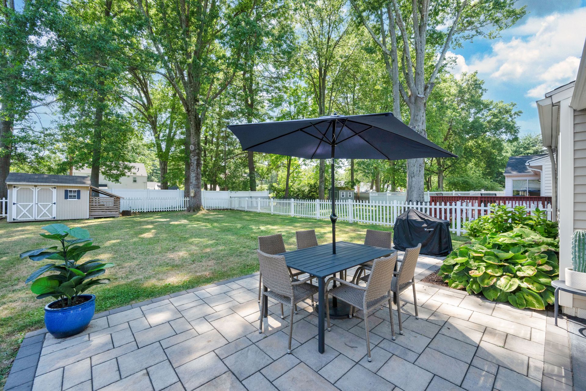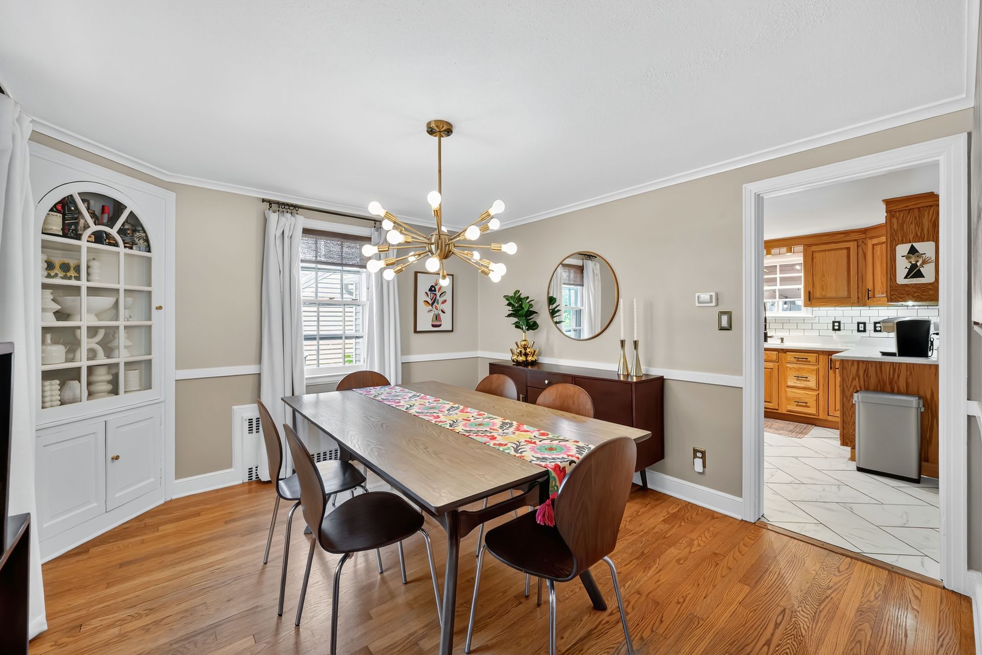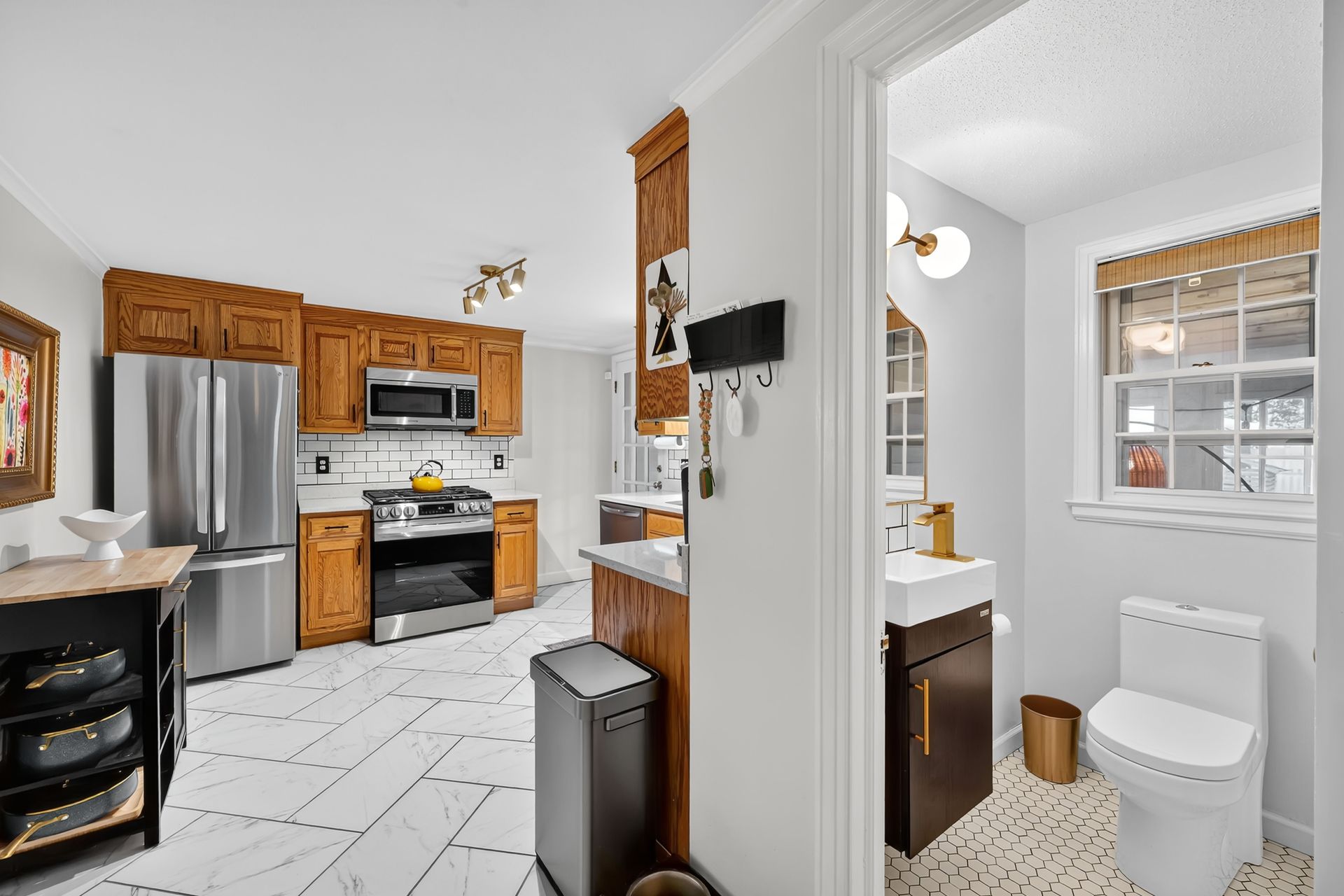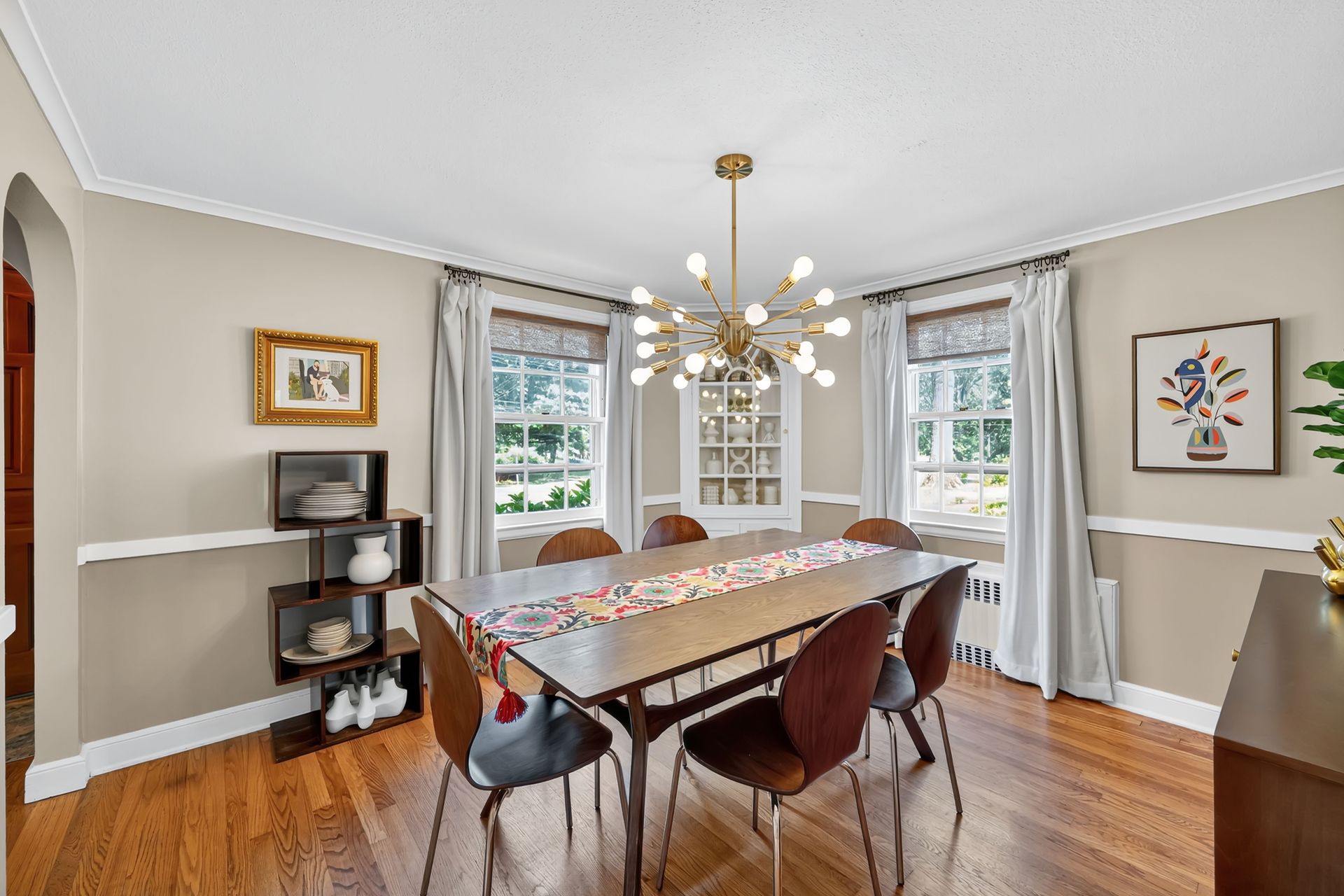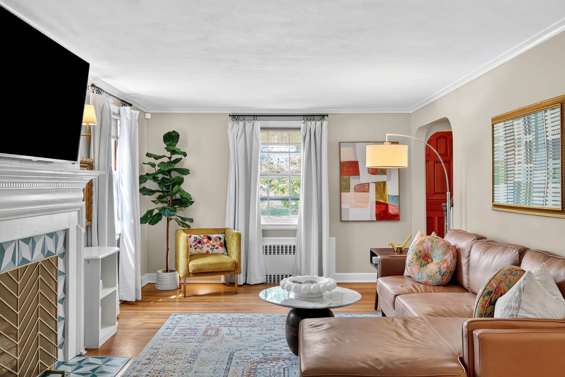 You will fall in love with this incredibly charming and beautifully remodeled Colonial that blends classic character with modern updates. Offering seven rooms, three bedrooms, and one and a half baths, this home showcases gleaming hardwood and tile floors throughout. The front-to-back fireplaced living room is warm and inviting, while the formal dining room with its built-in corner hutch adds a touch of timeless elegance. The updated kitchen is a showstopper, featuring quartz countertops, stainless steel appliances, and gas cooking. An enclosed porch with a pine ceiling and wall of glass is a great spot to relax, opening to a backyard patio ideal for summer gatherings. The spacious, level yard is fully enclosed with a charming vinyl picket fence and includes a storage shed for all your outdoor needs. Additional highlights include a one car attached garage with a Tesla charger, eye-catching cedar impression vinyl siding, and efficient gas heat. Enjoy an unbeatable location just minutes to West Hartford Center, Bishop’s Corner, and the scenic Trout Brook Trail. This home is truly move-in ready and waiting to welcome you!