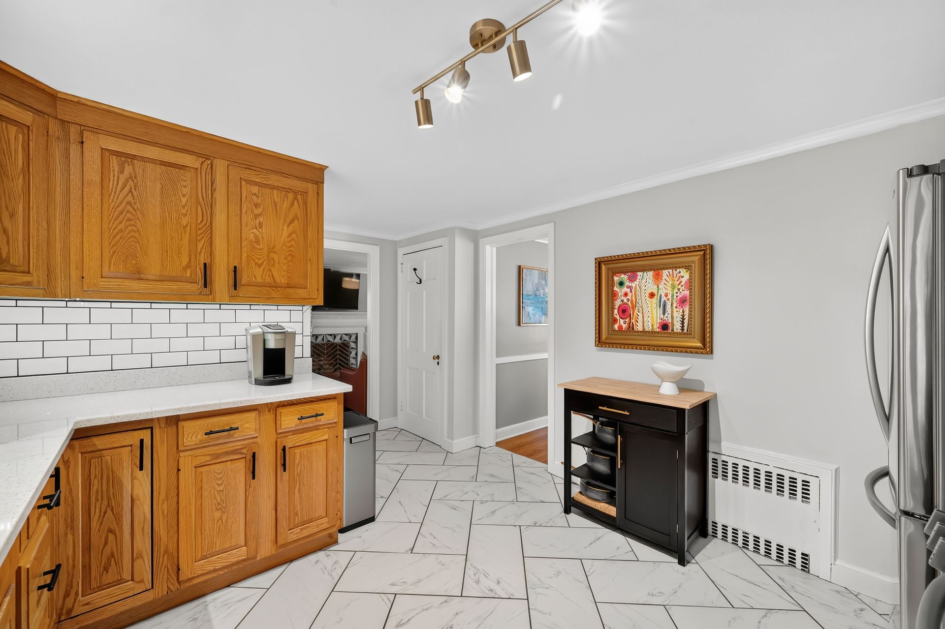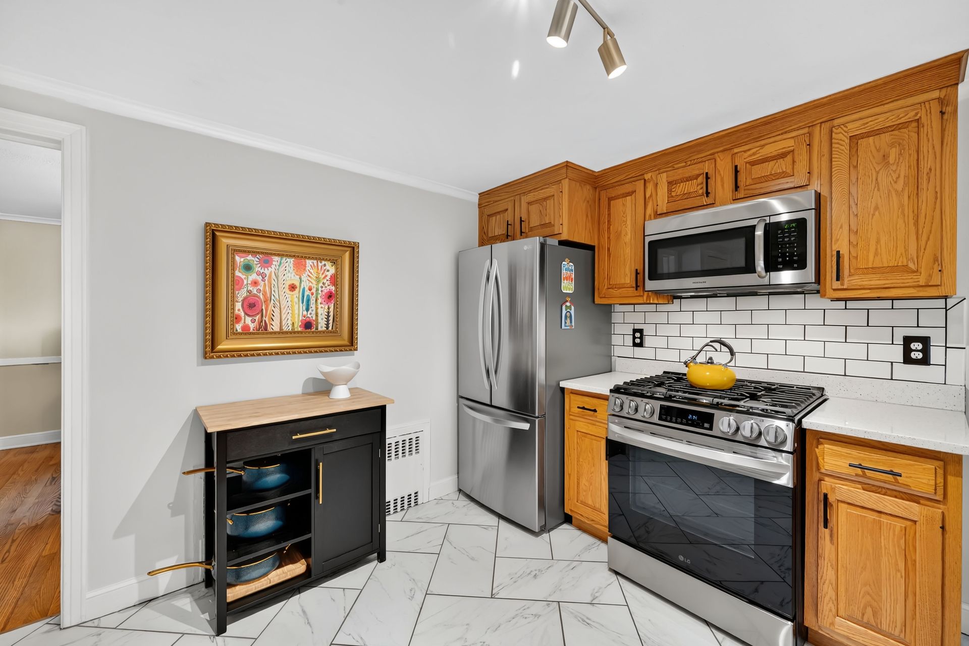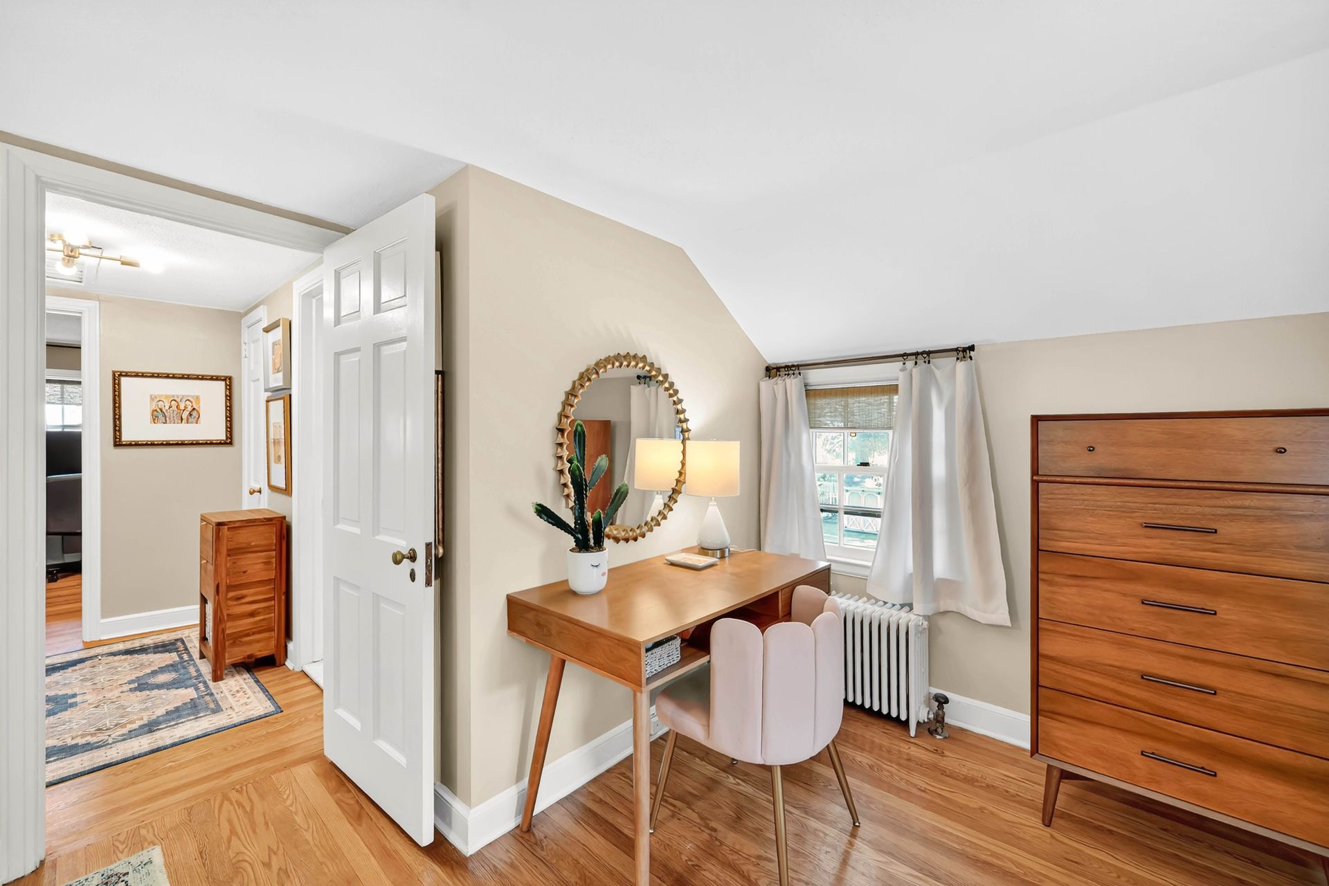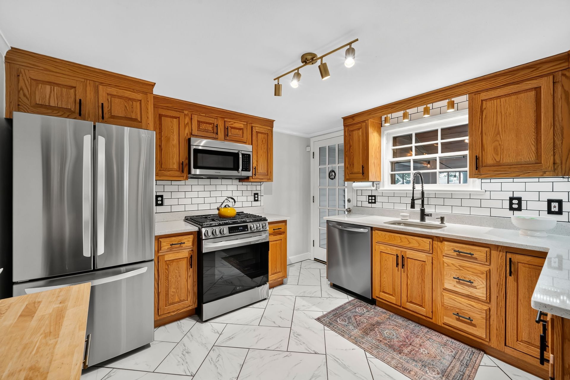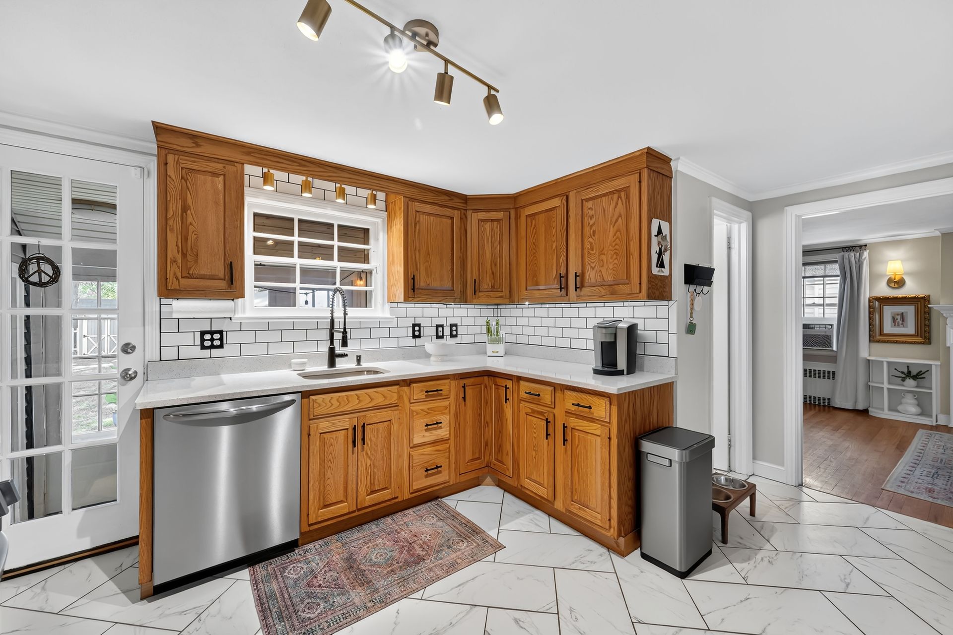 You will fall in love with this incredibly charming and beautifully remodeled Colonial that blends classic character with modern updates. Offering seven rooms, three bedrooms, and one and a half baths, this home showcases gleaming hardwood and tile floors throughout. The front-to-back fireplaced living room is warm and inviting, while the formal dining room with its built-in corner hutch adds a touch of timeless elegance. The updated kitchen is a showstopper, featuring quartz countertops, stainless steel appliances, and gas cooking. An enclosed porch with a pine ceiling and wall of glass is a great spot to relax, opening to a backyard patio ideal for summer gatherings. The spacious, level yard is fully enclosed with a charming vinyl picket fence and includes a storage shed for all your outdoor needs. Additional highlights include a one car attached garage with a Tesla charger, eye-catching cedar impression vinyl siding, and efficient gas heat. Enjoy an unbeatable location just minutes to West Hartford Center, Bishop’s Corner, and the scenic Trout Brook Trail. This home is truly move-in ready and waiting to welcome you!