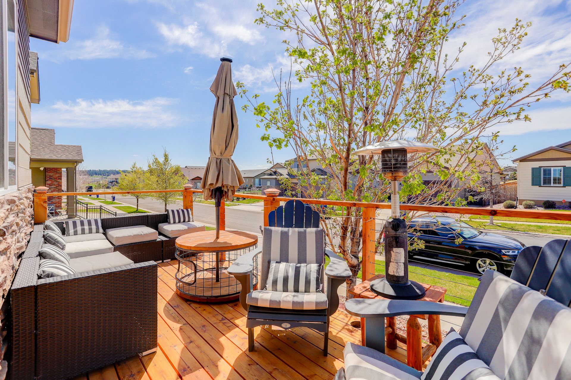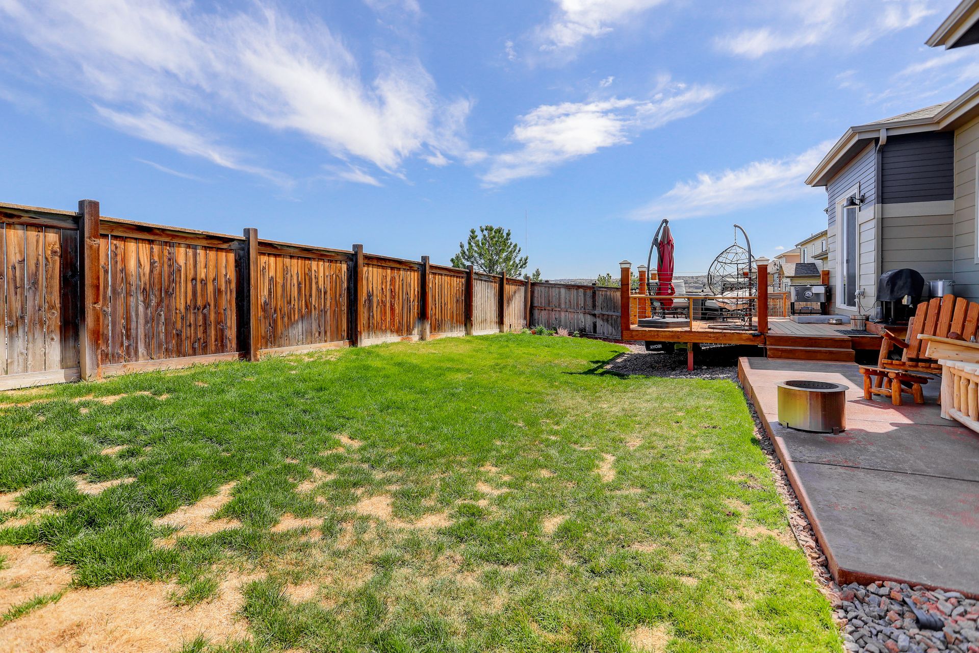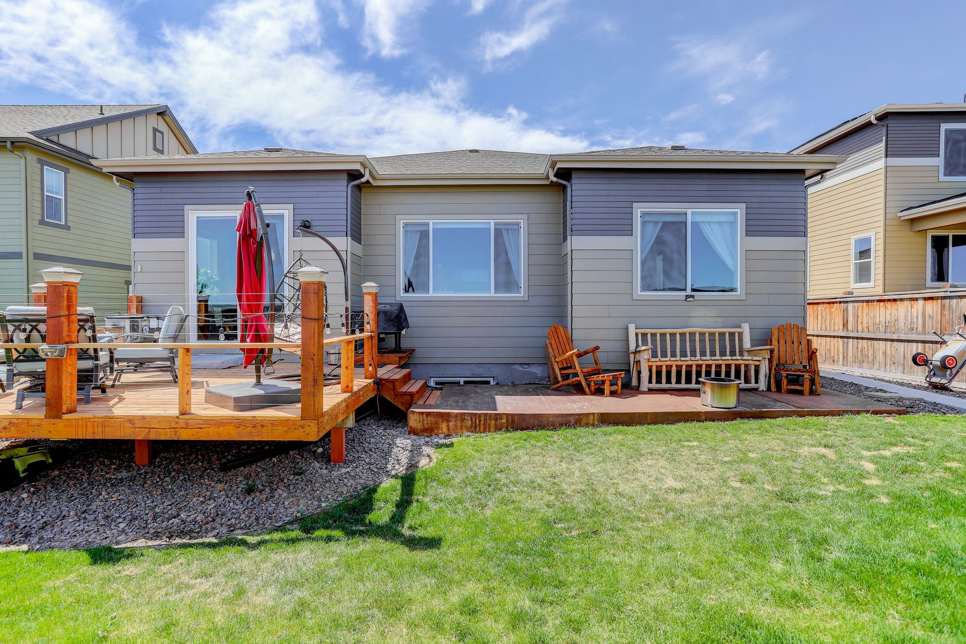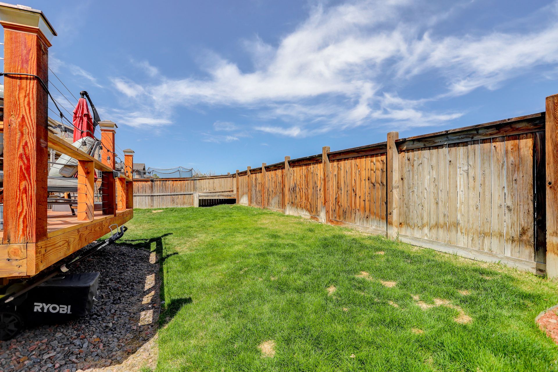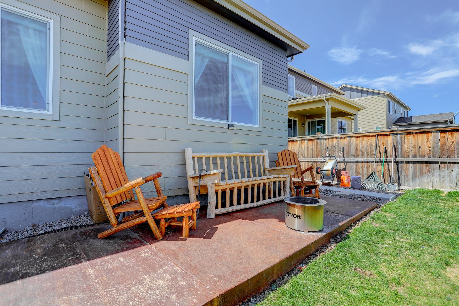 Exit outside to a private backyard sanctuary, featuring a deck and patio space ideal for grilling, relaxing, or hosting under Colorado’s big blue skies.