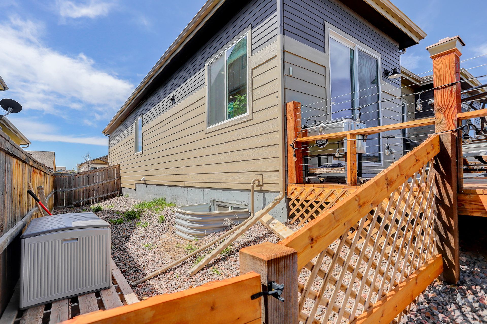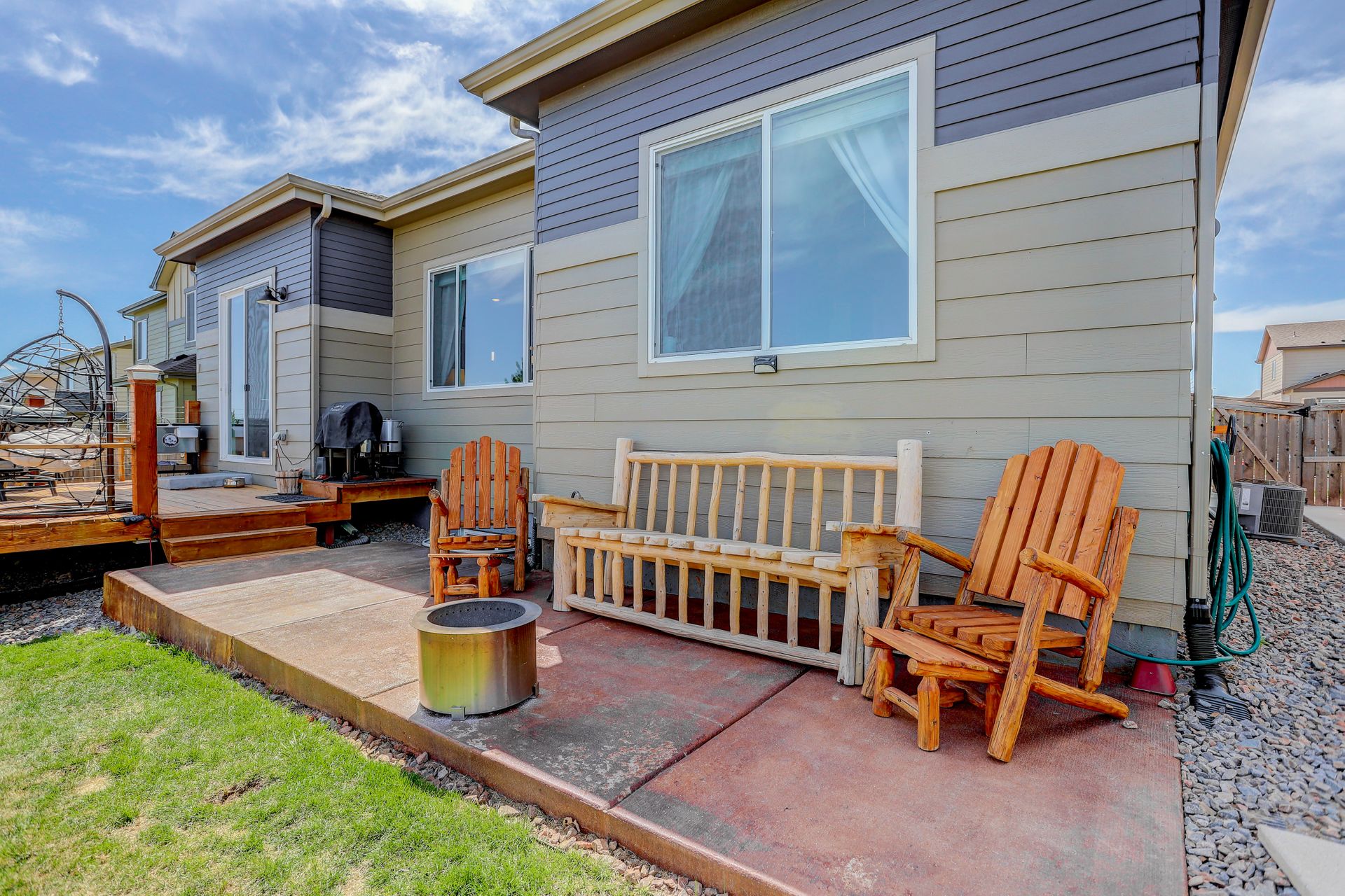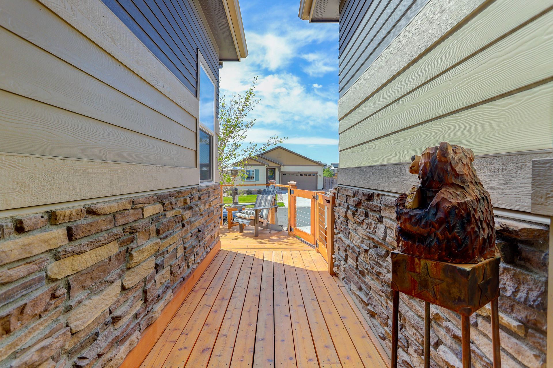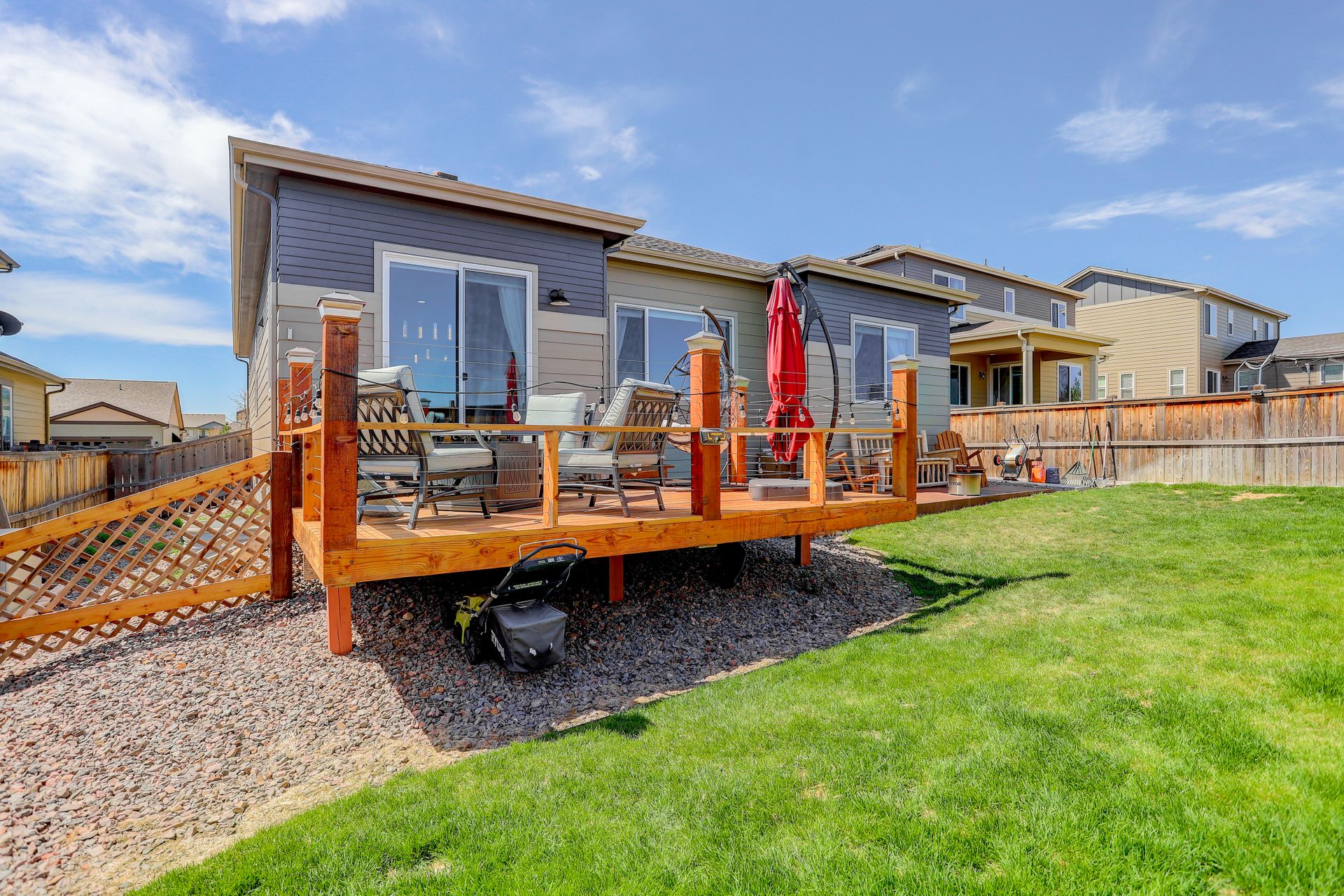Exit outside to a private backyard sanctuary, featuring a deck and patio space ideal for grilling, relaxing, or hosting under Colorado’s big blue skies.