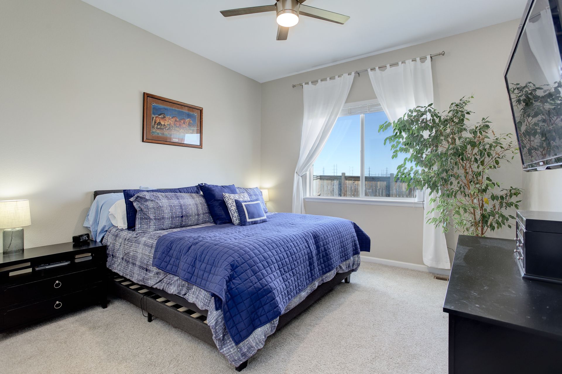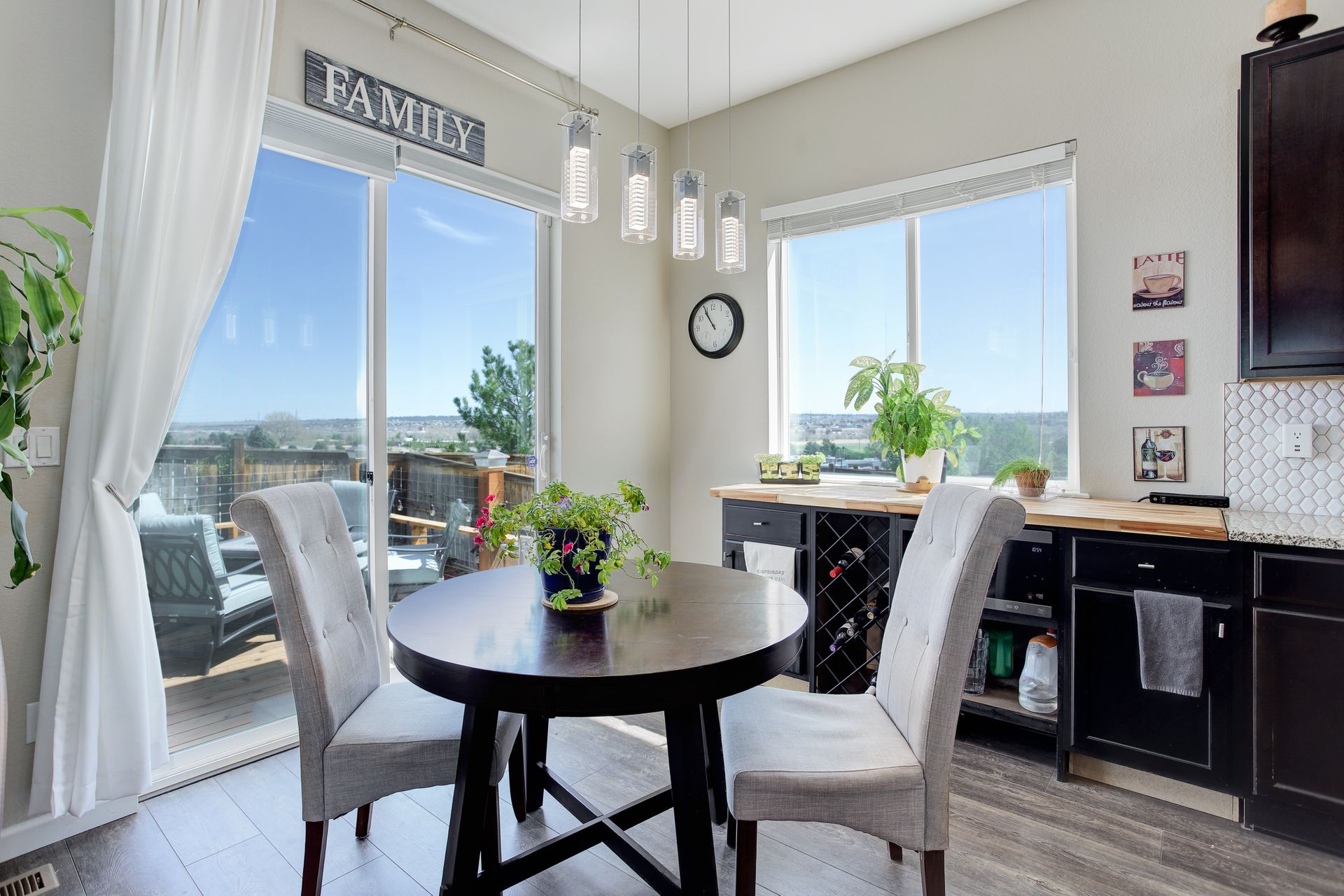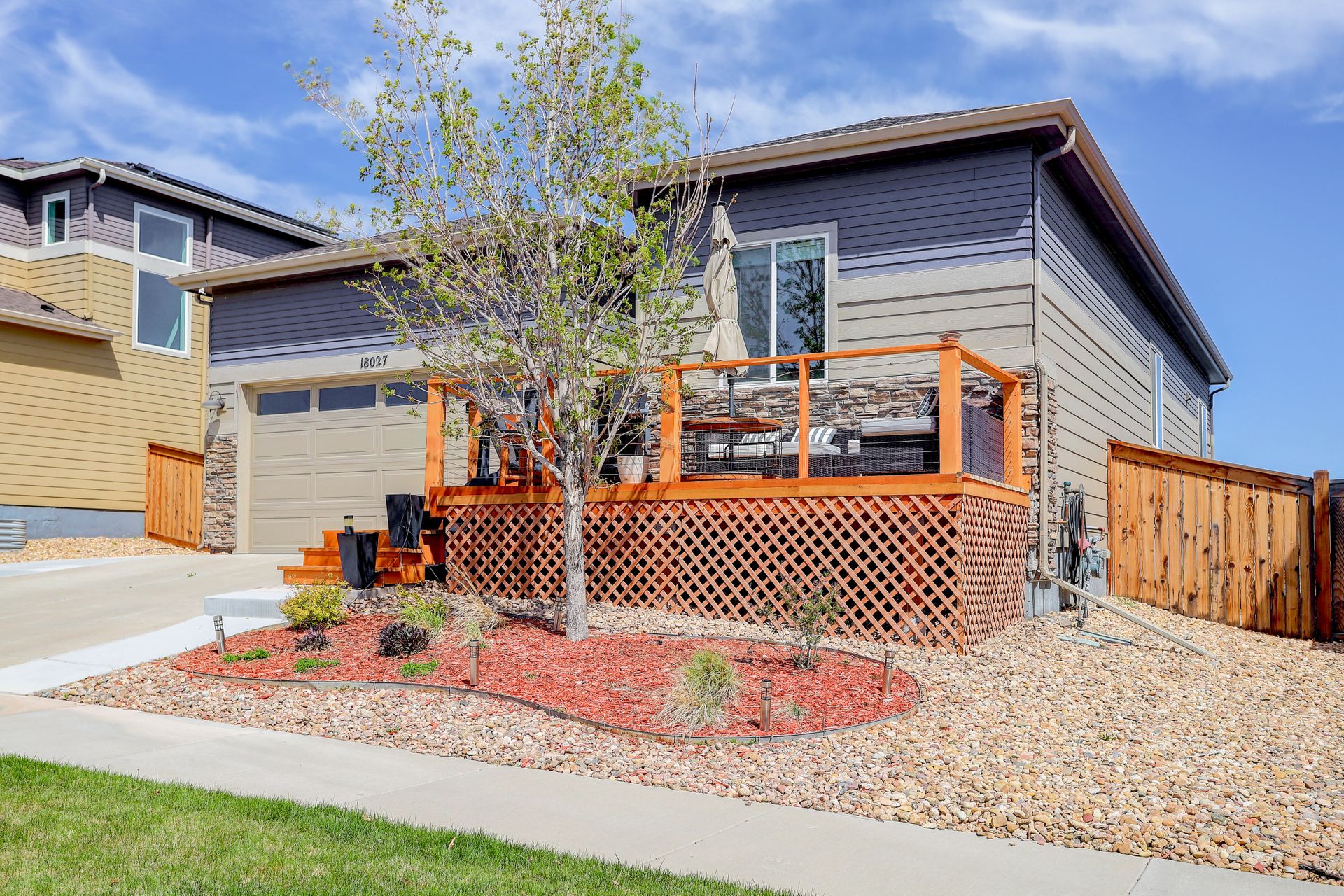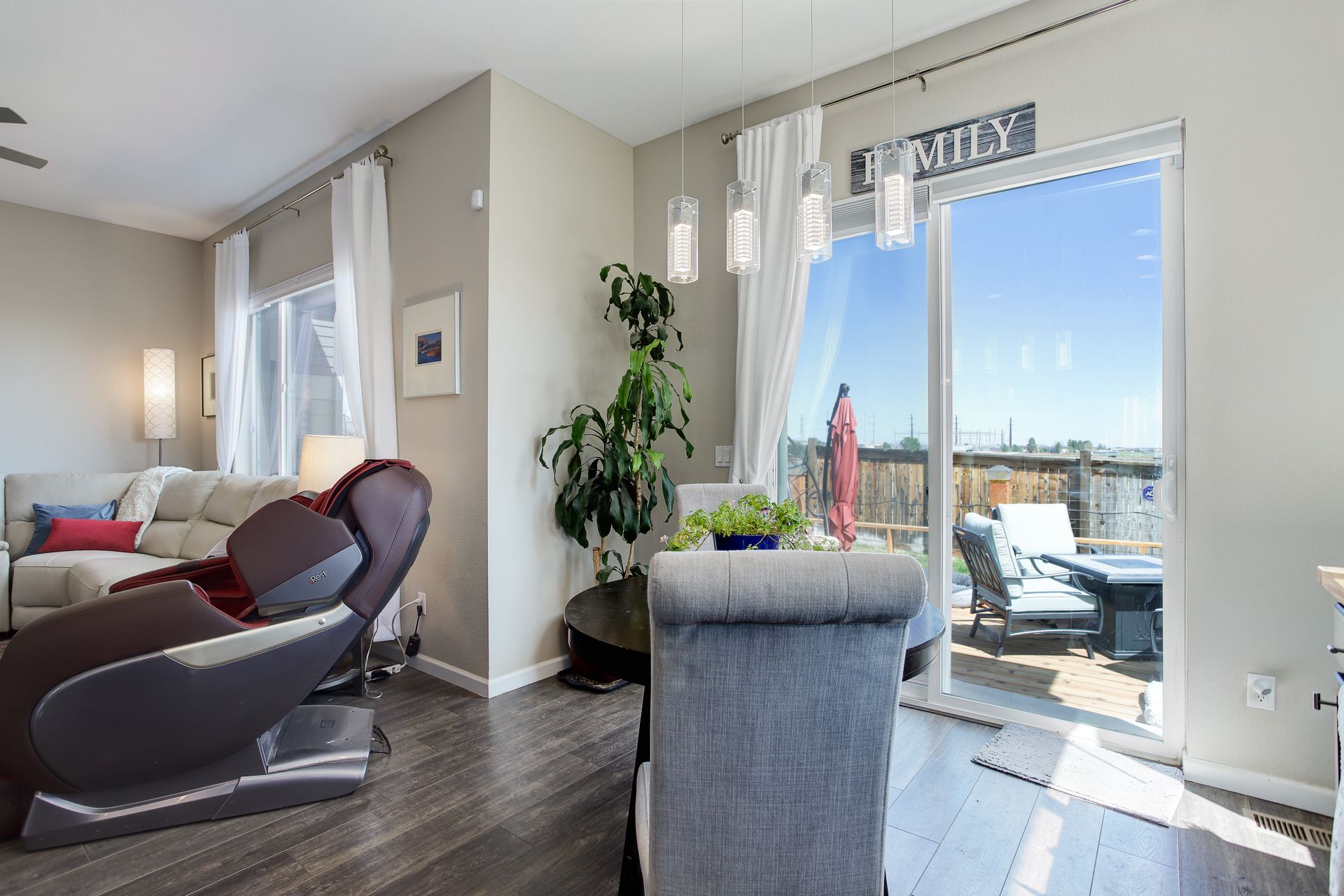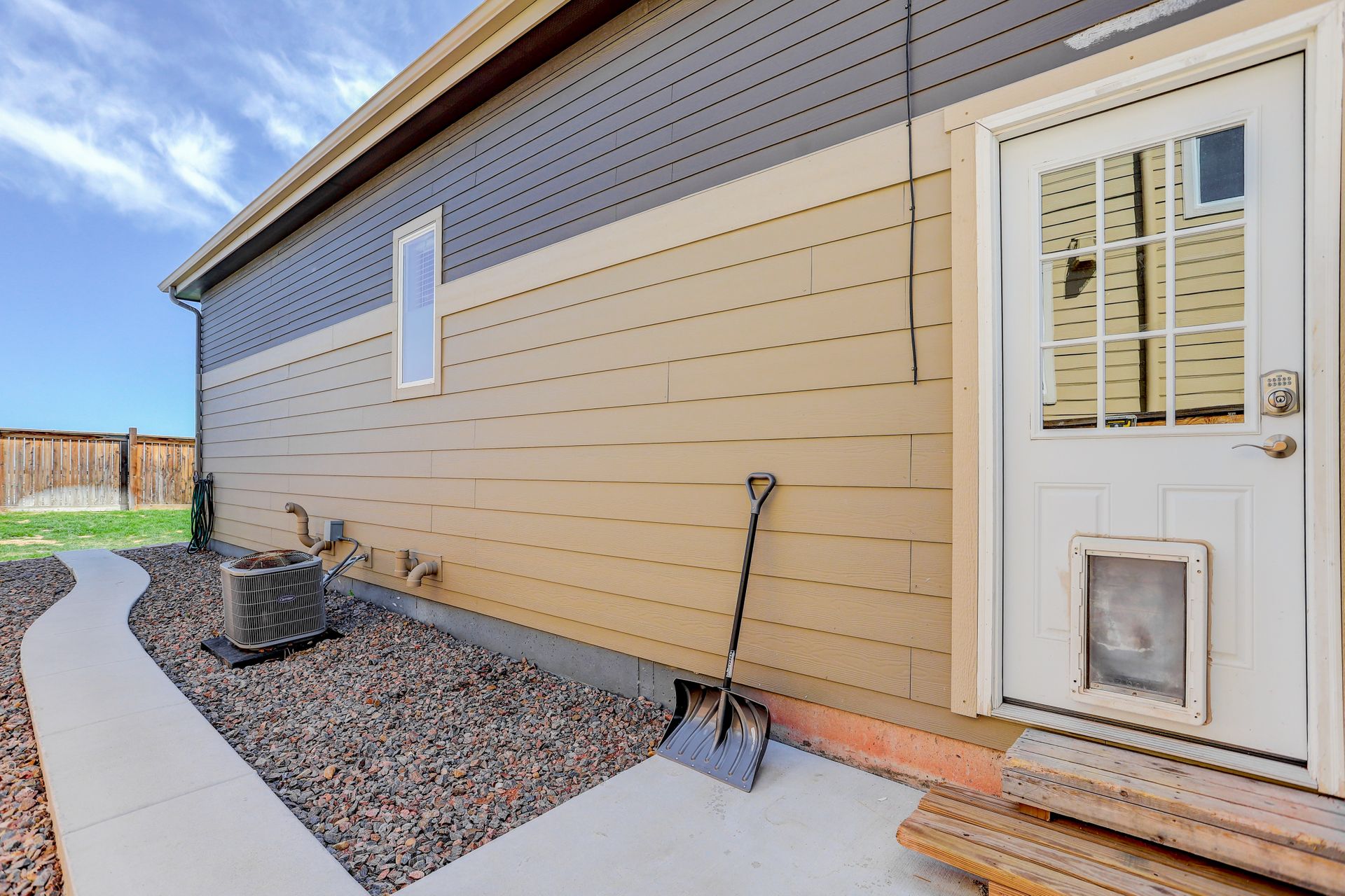 Exit outside to a private backyard sanctuary, featuring a deck and patio space ideal for grilling, relaxing, or hosting under Colorado’s big blue skies.